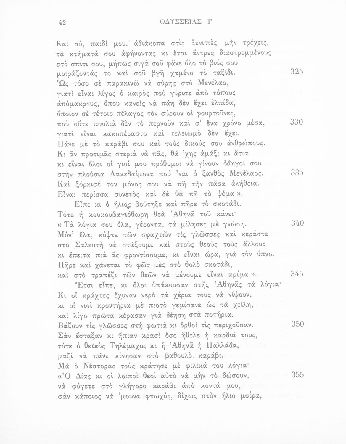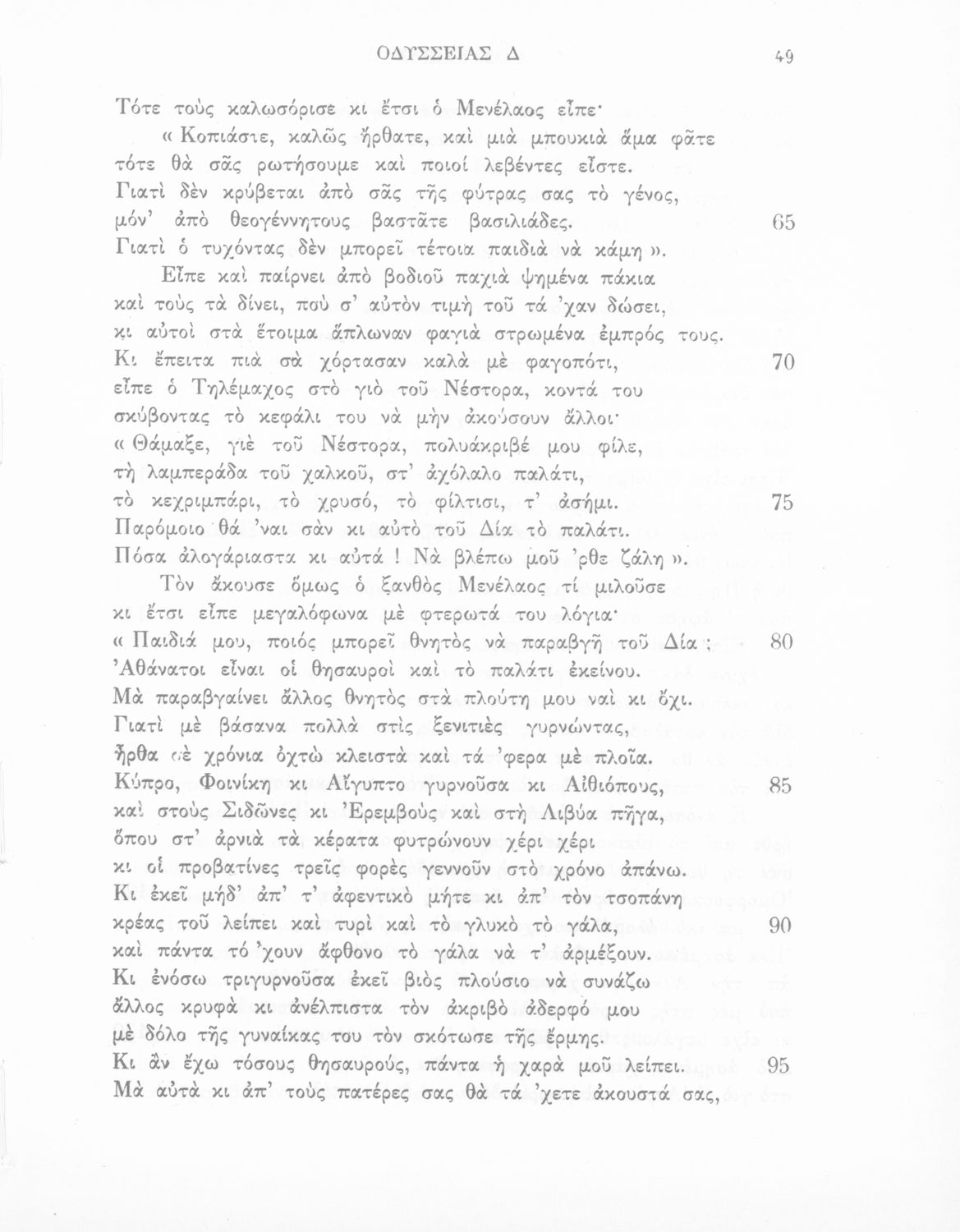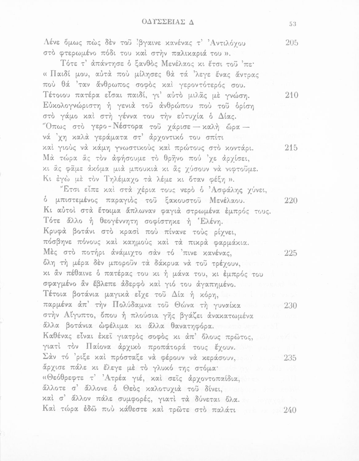 Σχολικό εγχειρίδιο της Δευτεροβάθμιας Εκπαίδευσης για το μάθημα των Αρχαίων Ελληνικών. Πρόκειται για το κείμενο της Οδύσσειας μεταφρασμένο, με πραγματολογικές παρατηρήσεις στο τέλος περιλαμβάνει λεξιλόγιο.