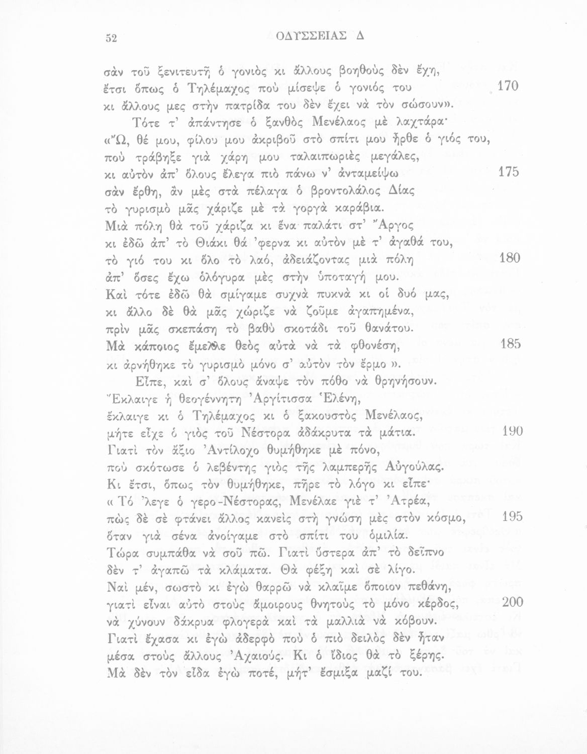 Παιδαγωγικό βοήθημα Αρχαίων Ελληνικών που περιλαμβάνει μετάφραση των ραψωδιών Ν-Ω της Οδύσσειας.