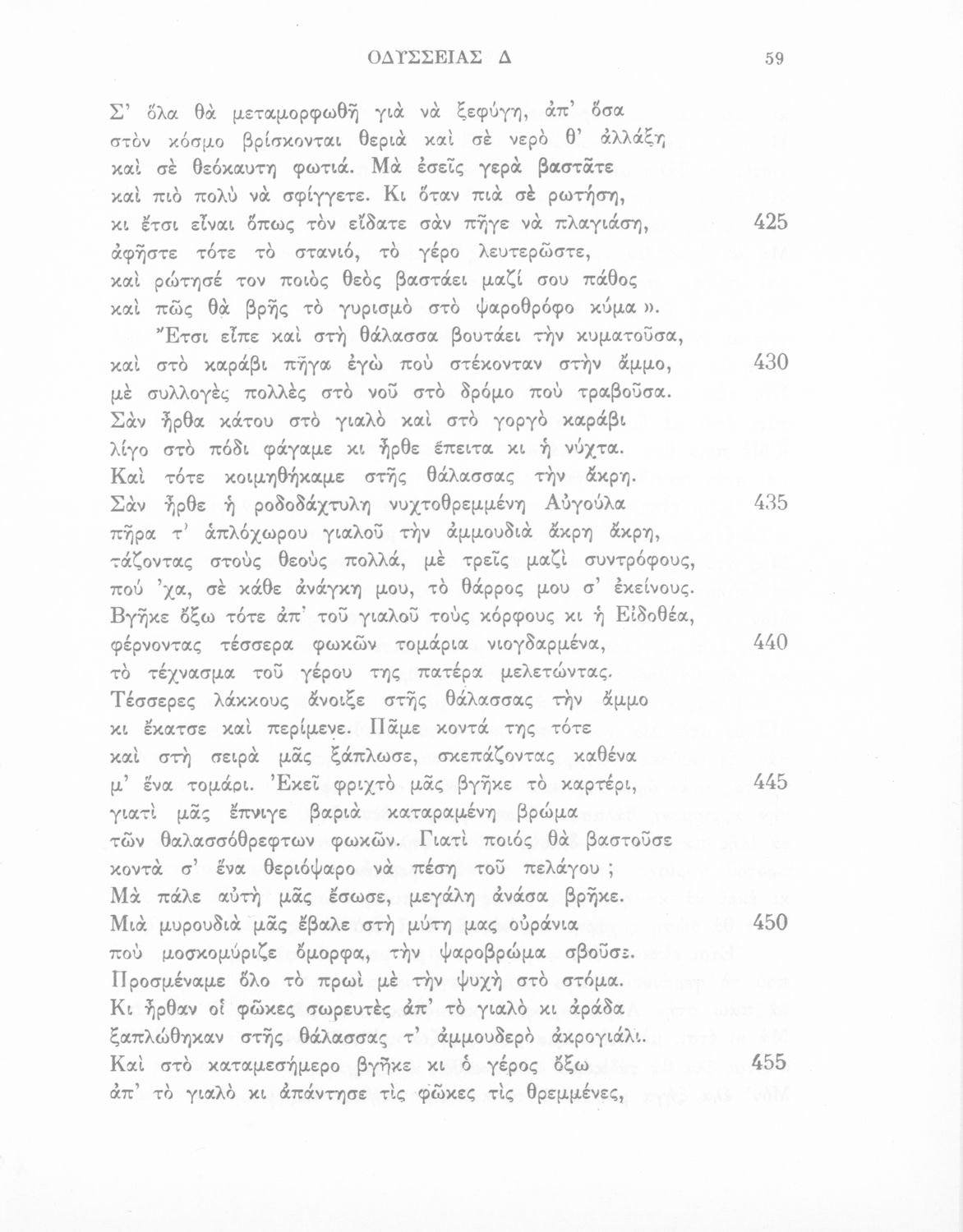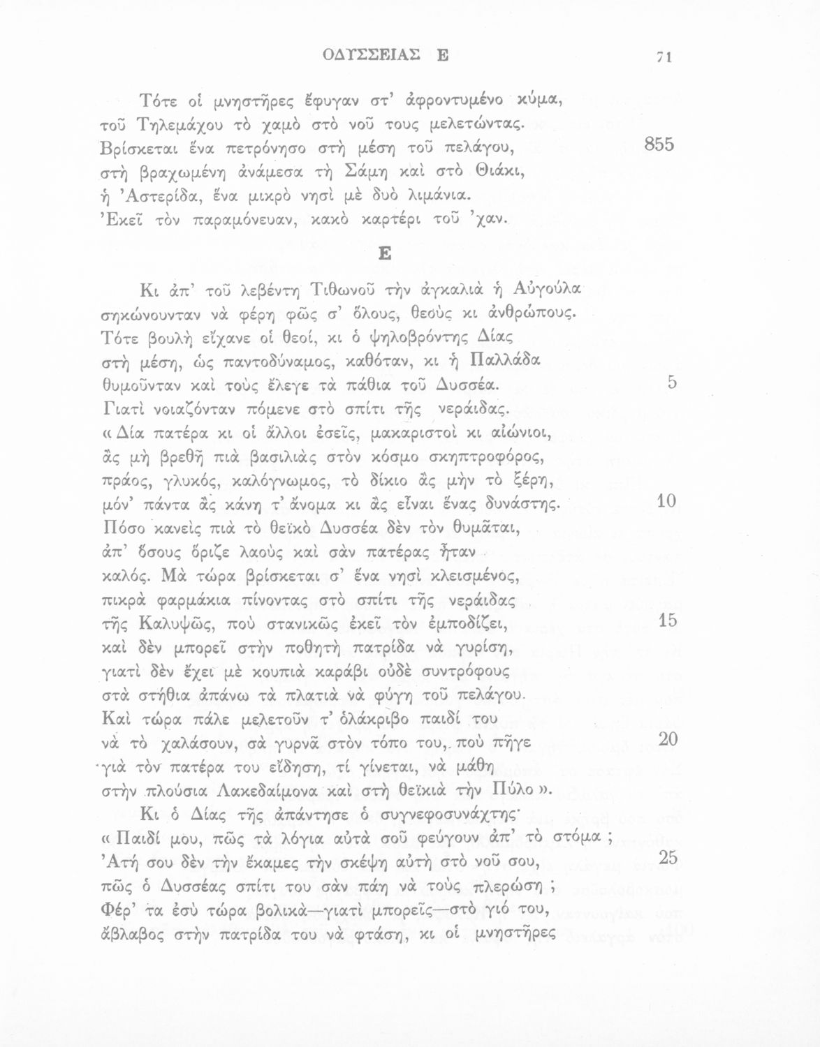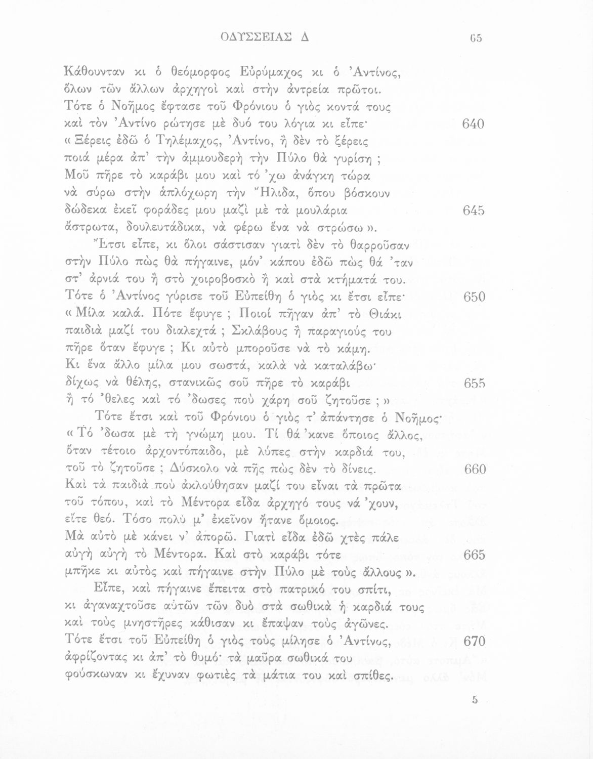 Παιδαγωγικό βοήθημα Αρχαίων Ελληνικών που περιλαμβάνει μετάφραση της Ομήρου Οδύσσειας στη νέα ελληνική, εισαγωγή στην επική ποίηση και στην Οδύσσεια, περιλήψεις και σημειώσεις.