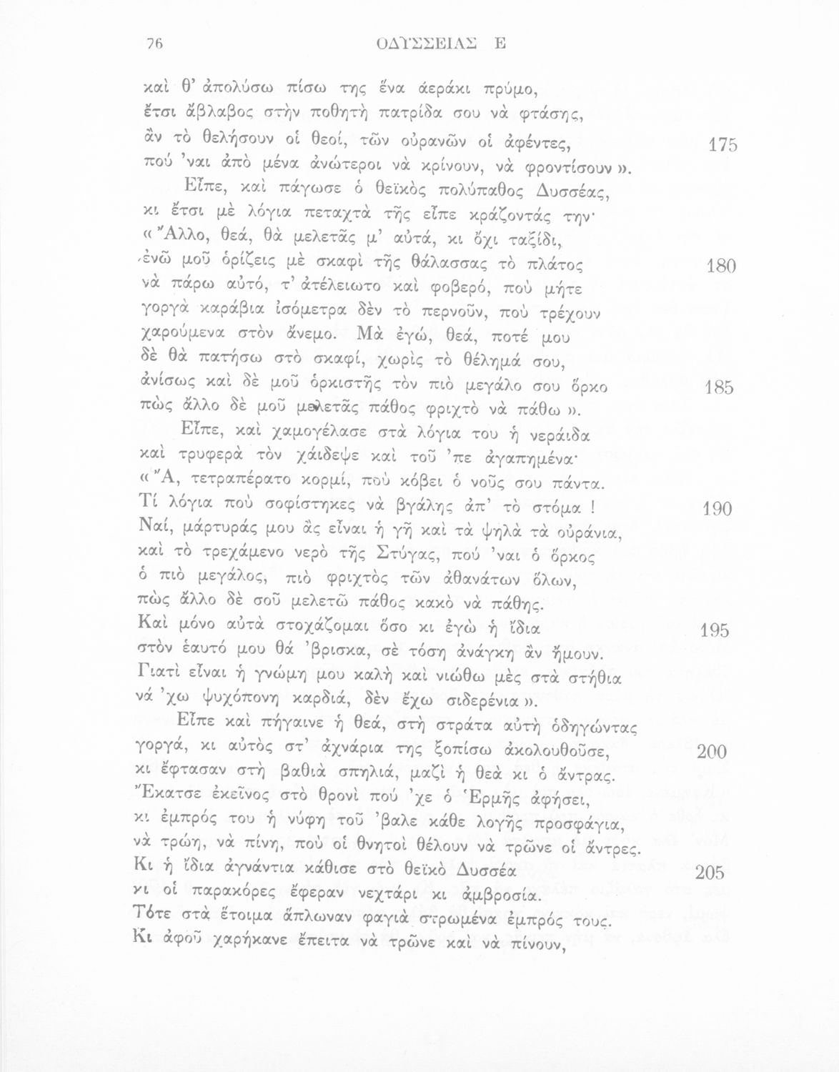 Σχολικό εγχειρίδιο της Δευτεροβάθμιας Εκπαίδευσης για το μάθημα των Αρχαίων Ελληνικών. Πρόκειται για το κείμενο της Οδύσσειας μεταφρασμένο, με πραγματολογικές παρατηρήσεις στο τέλος περιλαμβάνει λεξιλόγιο.