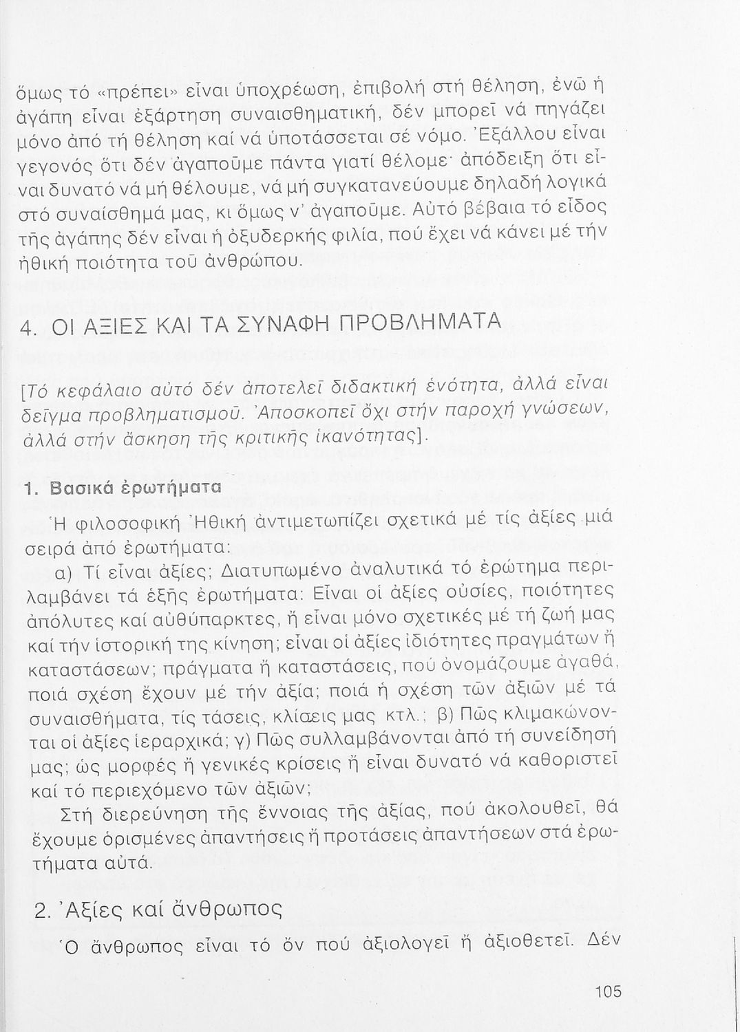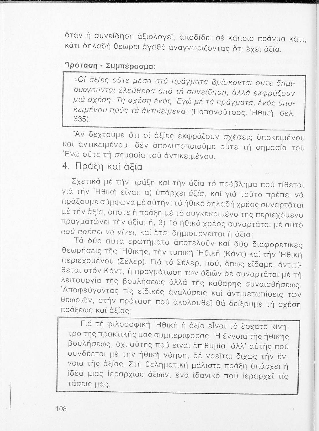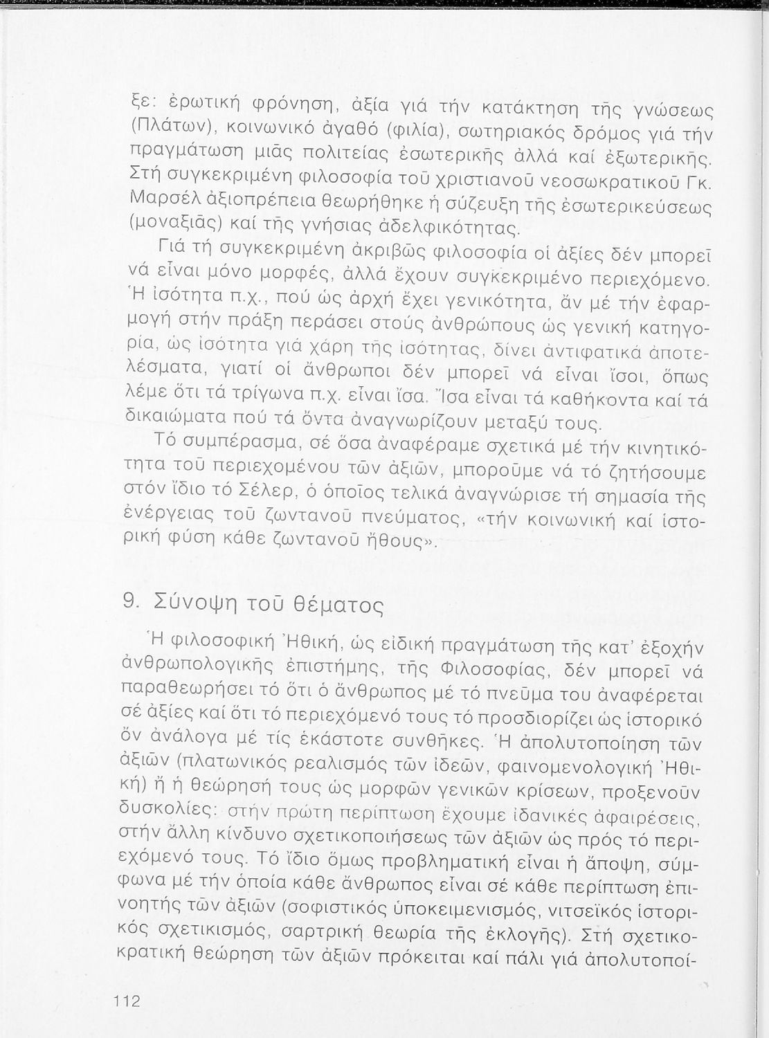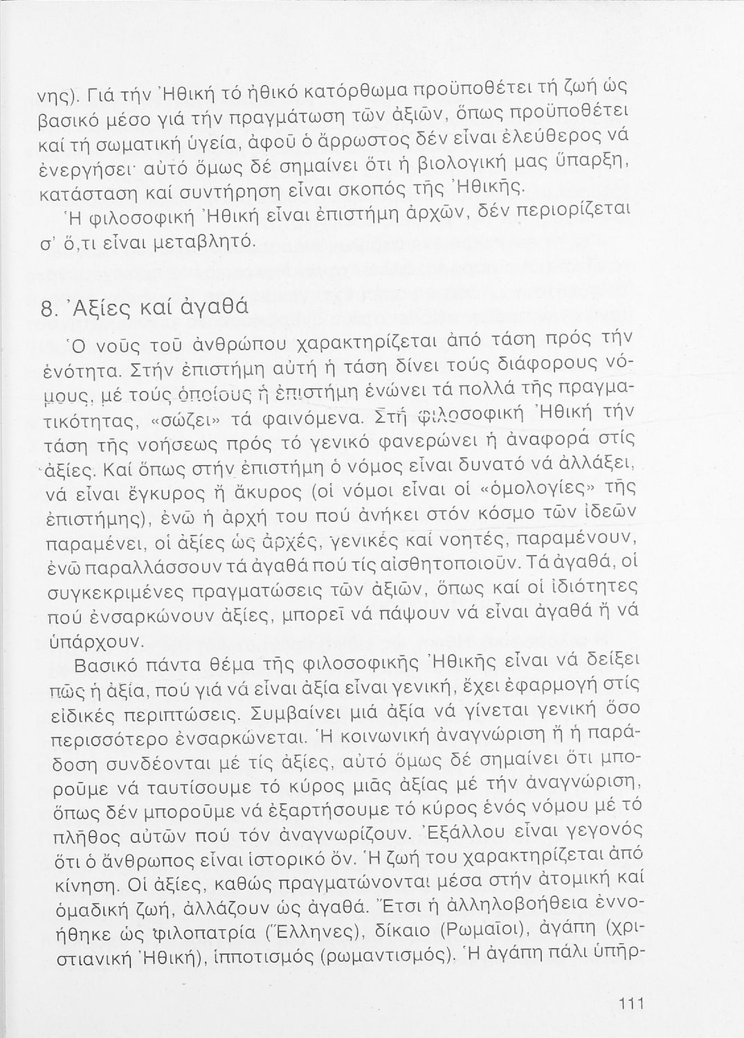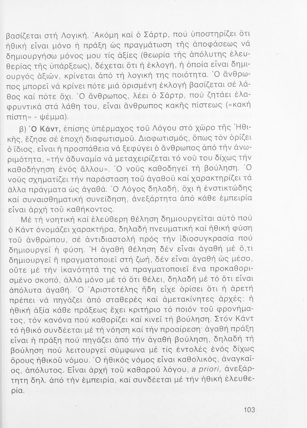 520 ## _aΣχολικό εγχειρίδιο Φιλοσοφίας Γ΄ Λυκείου που ακολουθεί μια ιστορική πραγμάτευση επιστημολογικών, ηθικών και αισθητικών ζητημάτων και καλύπτει δύο περιόδους: α) την ελληνική αρχαιότητα και β) την σύγχρονη ευρωπαϊκή σκέψη από τον Descartes και τον Kant στον λογικό θετικισμό και τον νεοκαντιανισμό. Περιέχει εκτενές κεφάλαιο για τους προσωκρατικούς.