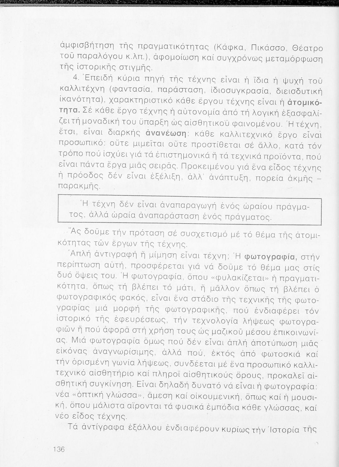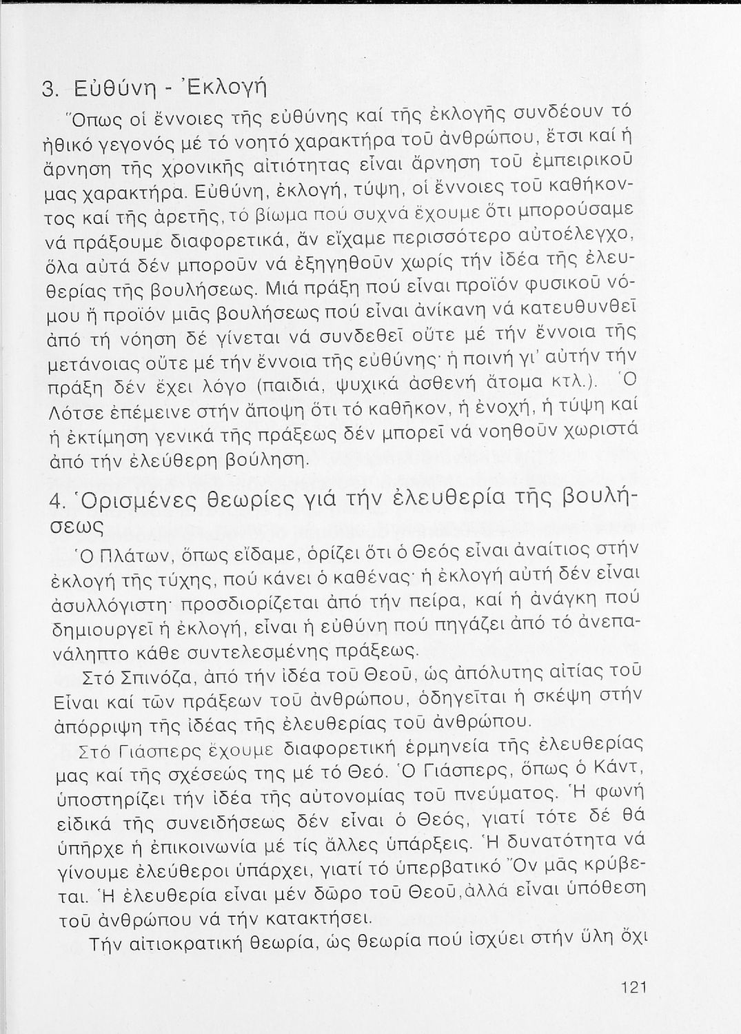 Βαθμίδα εκπαίδευσης: Δευτεροβάθμια Τάξη: Γ' Λυκείου Μάθημα: Φιλοσοφία Γλώσσα: Δημοτική Παρουσίαση περιεχομένου: Σχολικό εγχειρίδιο Φιλοσοφίας Γ΄ Λυκείου που ακολουθεί μια ιστορική πραγμάτευση επιστημολογικών, ηθικών και αισθητικών ζητημάτων και καλύπτει δύο περιόδους: α) την ελληνική αρχαιότητα και β) την σύγχρονη ευρωπαϊκή σκέψη από τον Descartes και τον Kant στον λογικό θετικισμό και τον νεοκαντιανισμό. Περιέχει εκτενές κεφάλαιο για τους προσωκρατικούς. |