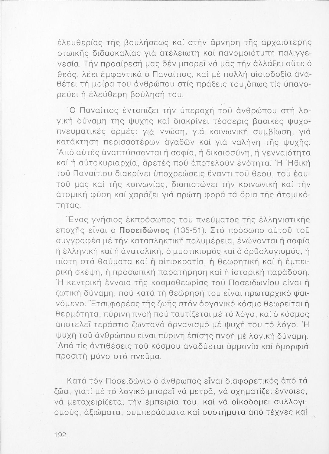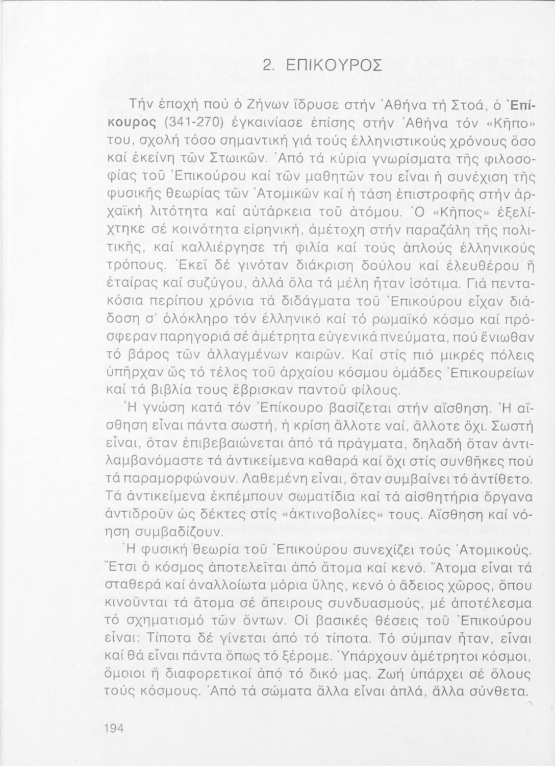 Βαθμίδα εκπαίδευσης: Δευτεροβάθμια Τάξη: Γ' Λυκείου Μάθημα: Φιλοσοφία Γλώσσα: Δημοτική Παρουσίαση περιεχομένου: Σχολικό εγχειρίδιο Φιλοσοφίας Γ΄ Λυκείου που ακολουθεί μια ιστορική πραγμάτευση επιστημολογικών, ηθικών και αισθητικών ζητημάτων και καλύπτει δύο περιόδους: α) την ελληνική αρχαιότητα και β) την σύγχρονη ευρωπαϊκή σκέψη από τον Descartes και τον Kant στον λογικό θετικισμό και τον νεοκαντιανισμό. Περιέχει εκτενές κεφάλαιο για τους προσωκρατικούς. |