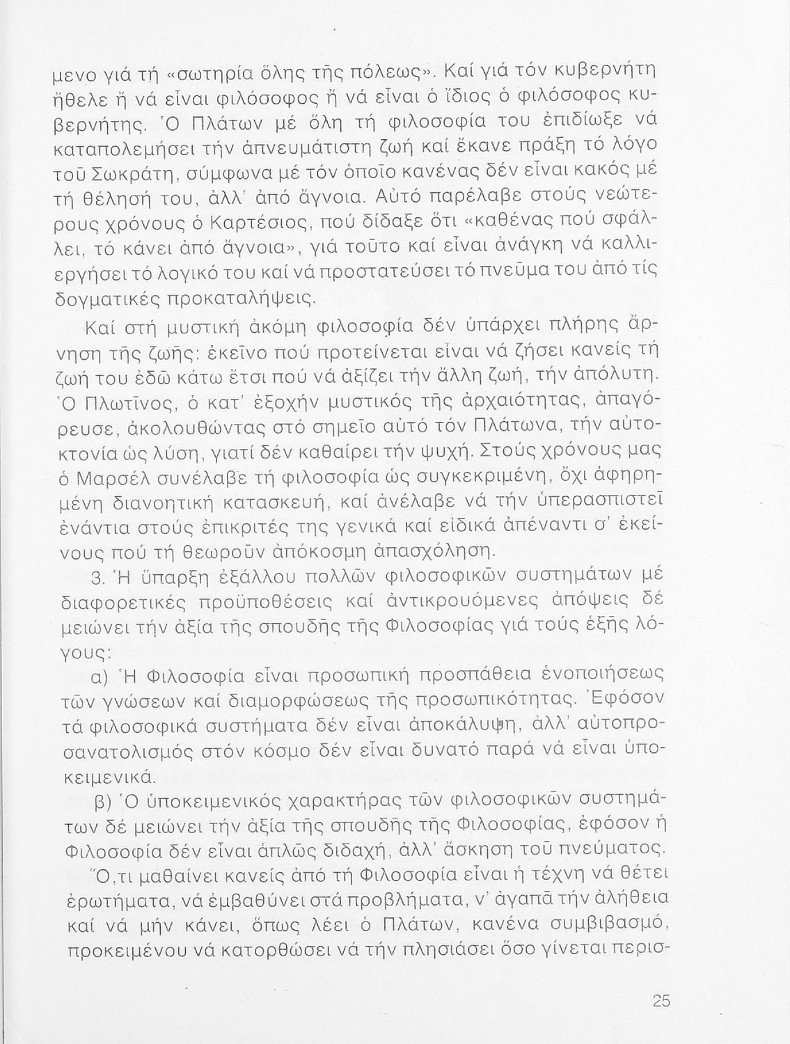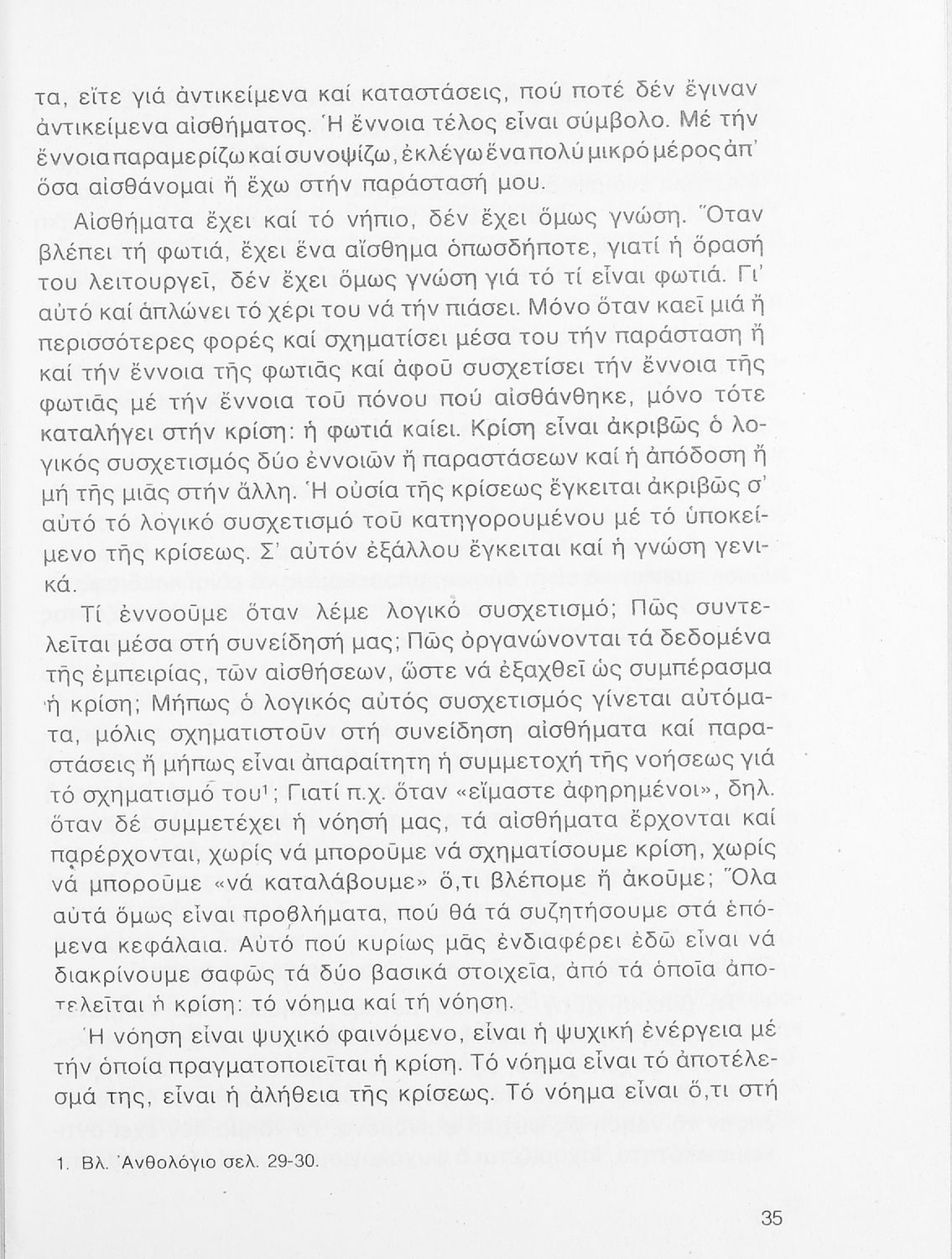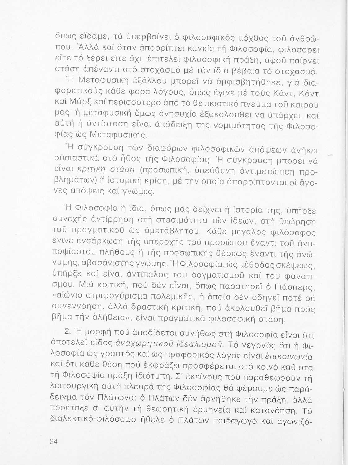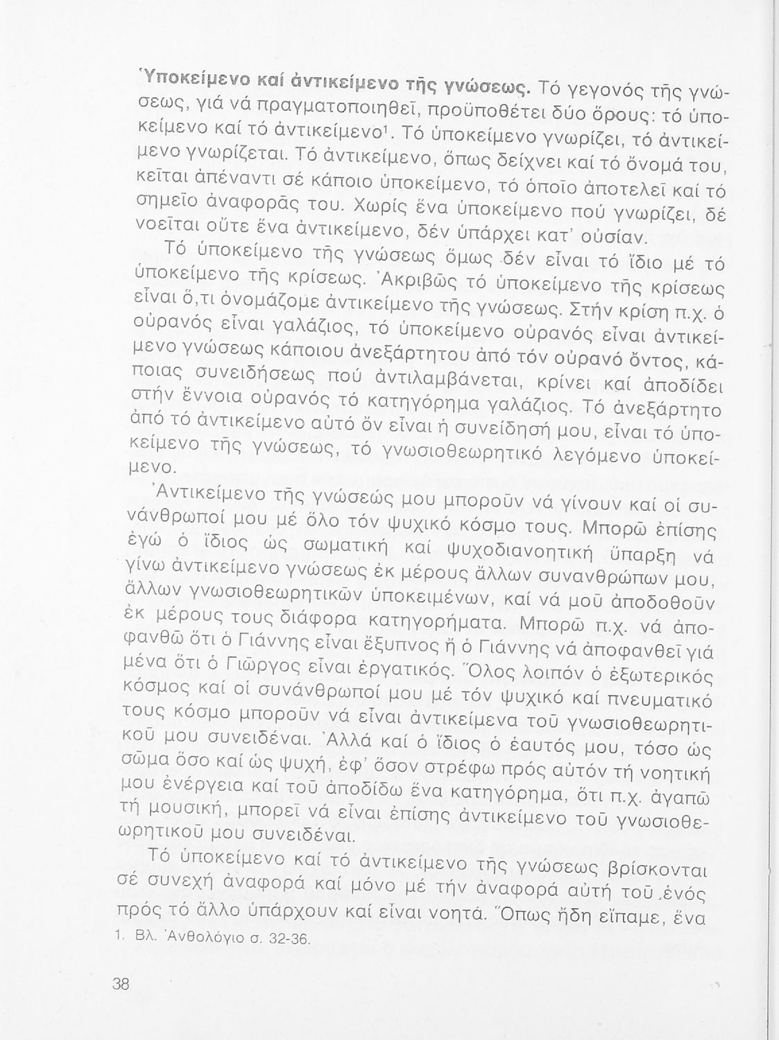 Σχολικό εγχειρίδιο Φιλοσοφίας Γ΄ Λυκείου που ακολουθεί μια ιστορική πραγμάτευση επιστημολογικών, ηθικών και αισθητικών ζητημάτων και καλύπτει δύο περιόδους: α) την ελληνική αρχαιότητα και β) την σύγχρονη ευρωπαϊκή σκέψη από τον Descartes και τον Kant στον λογικό θετικισμό και τον νεοκαντιανισμό. Περιέχει εκτενές κεφάλαιο για τους προσωκρατικούς.