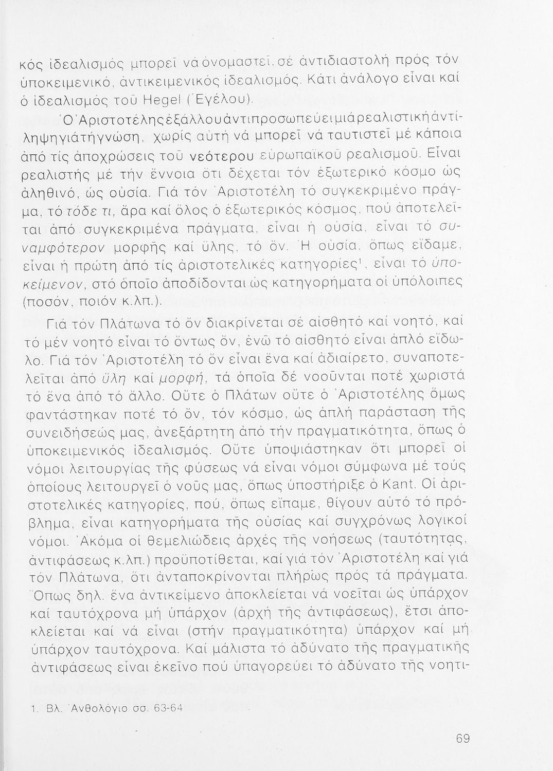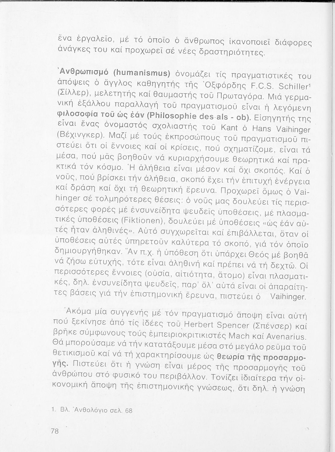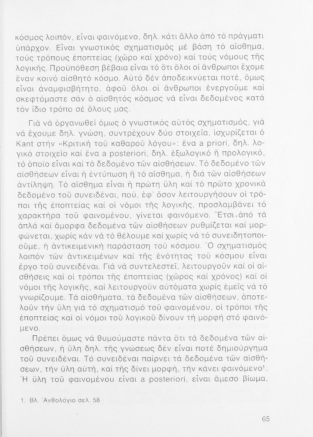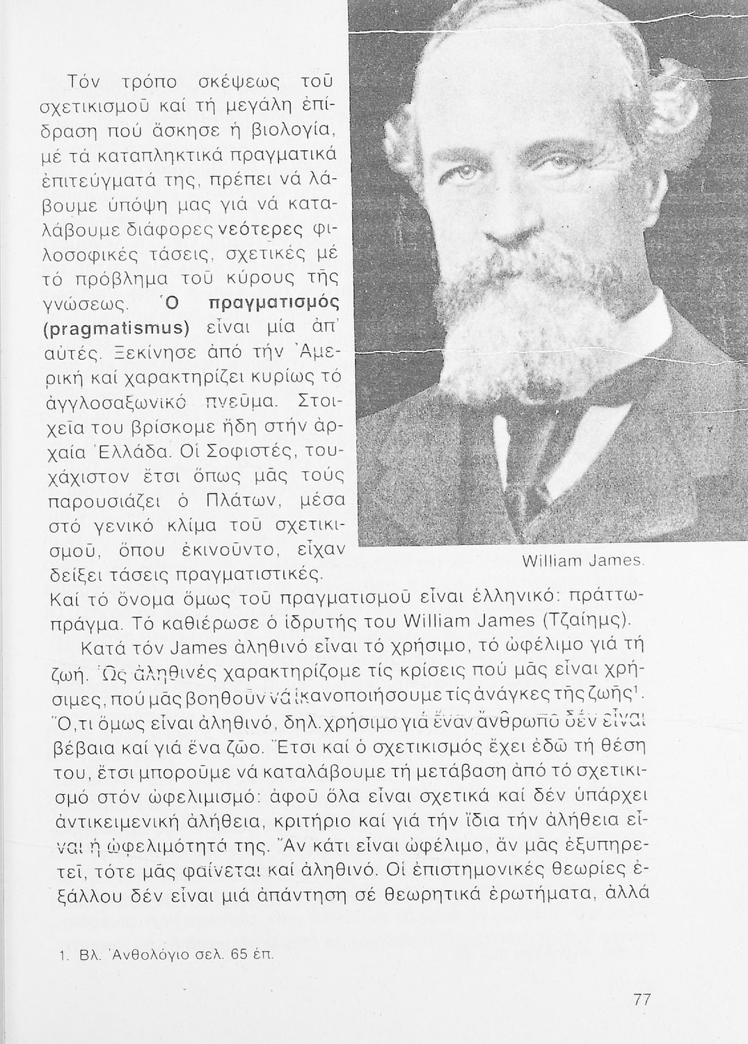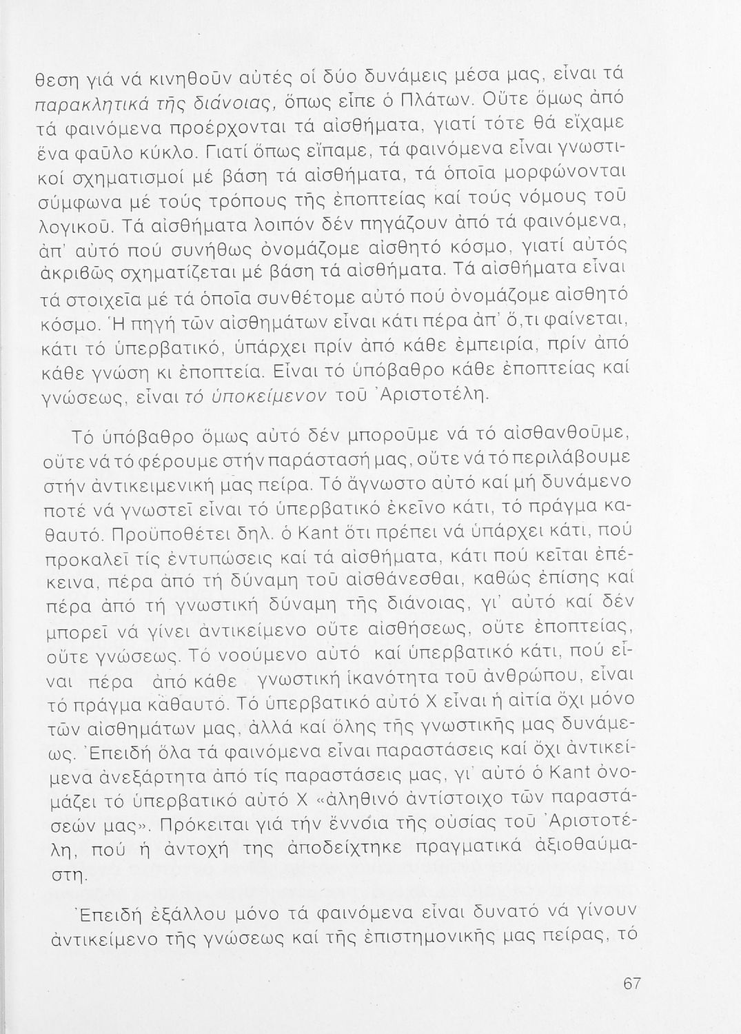 Σχολικό εγχειρίδιο Φιλοσοφίας Γ΄ Λυκείου που ακολουθεί μια ιστορική πραγμάτευση επιστημολογικών, ηθικών και αισθητικών ζητημάτων και καλύπτει δύο περιόδους: α) την ελληνική αρχαιότητα και β) την σύγχρονη ευρωπαϊκή σκέψη από τον Descartes και τον Kant στον λογικό θετικισμό και τον νεοκαντιανισμό. Περιέχει εκτενές κεφάλαιο για τους προσωκρατικούς.
