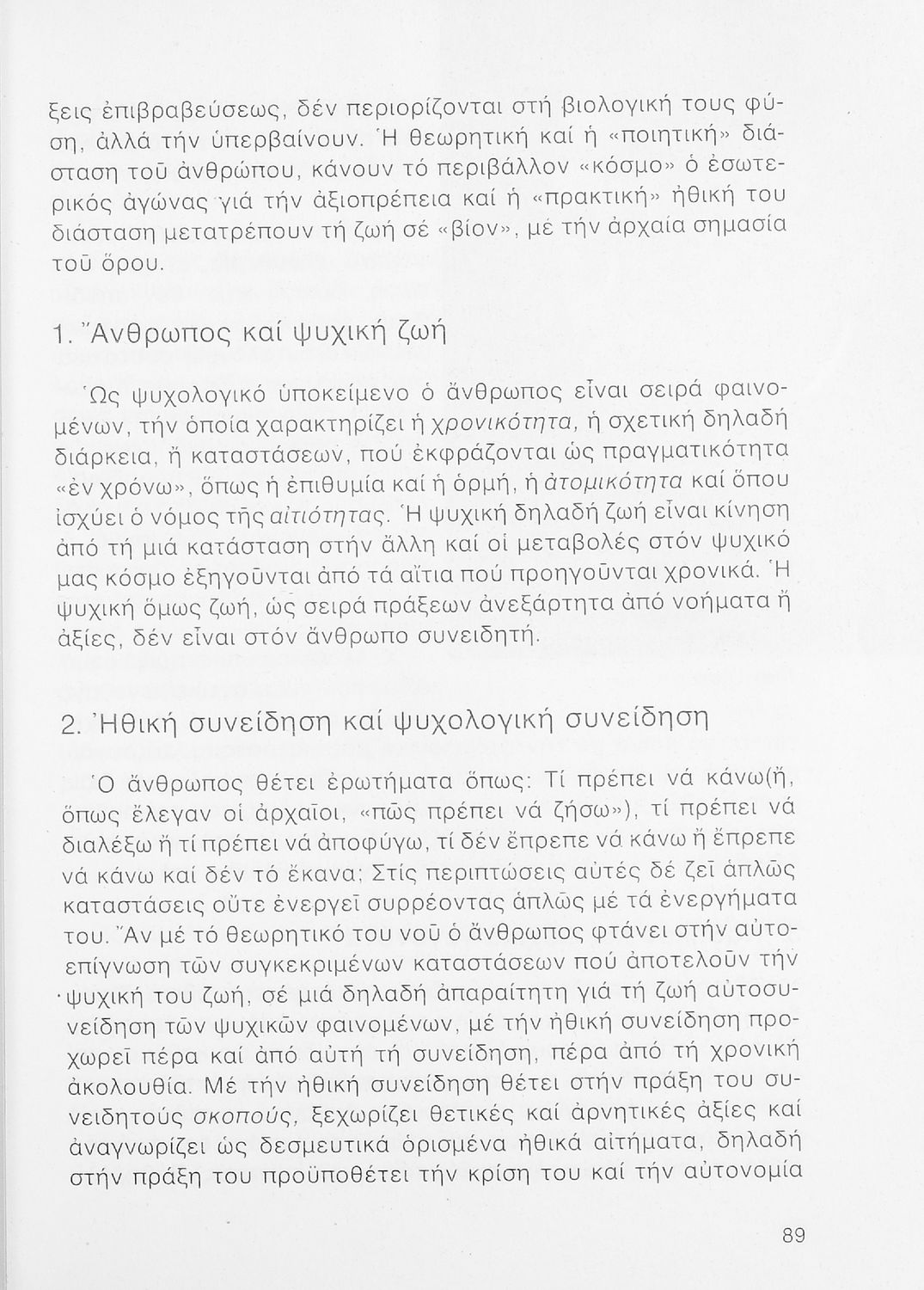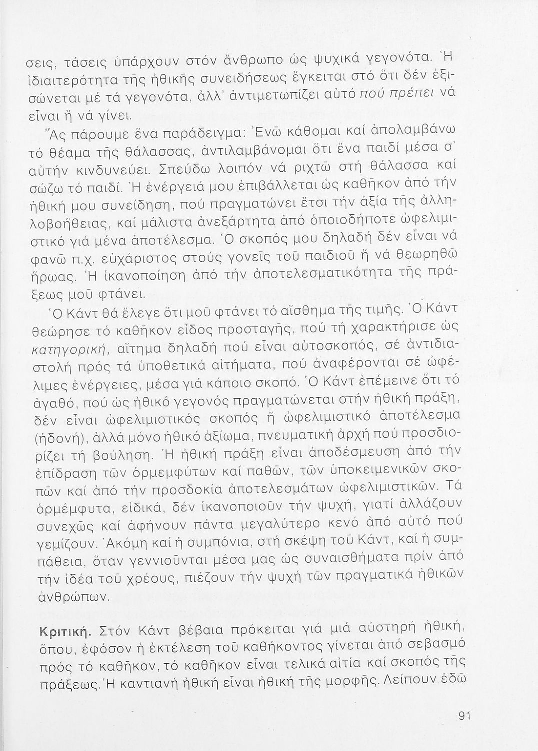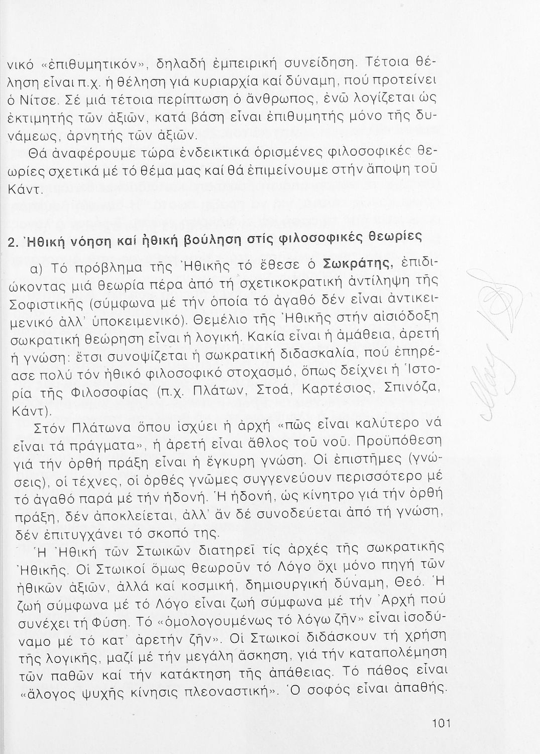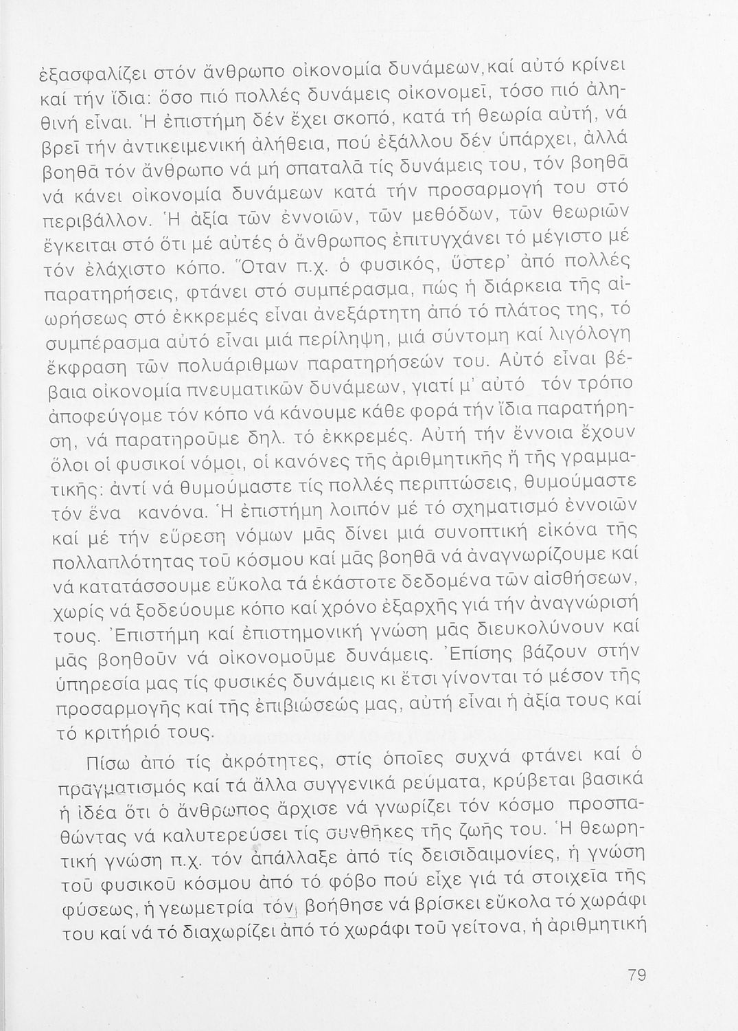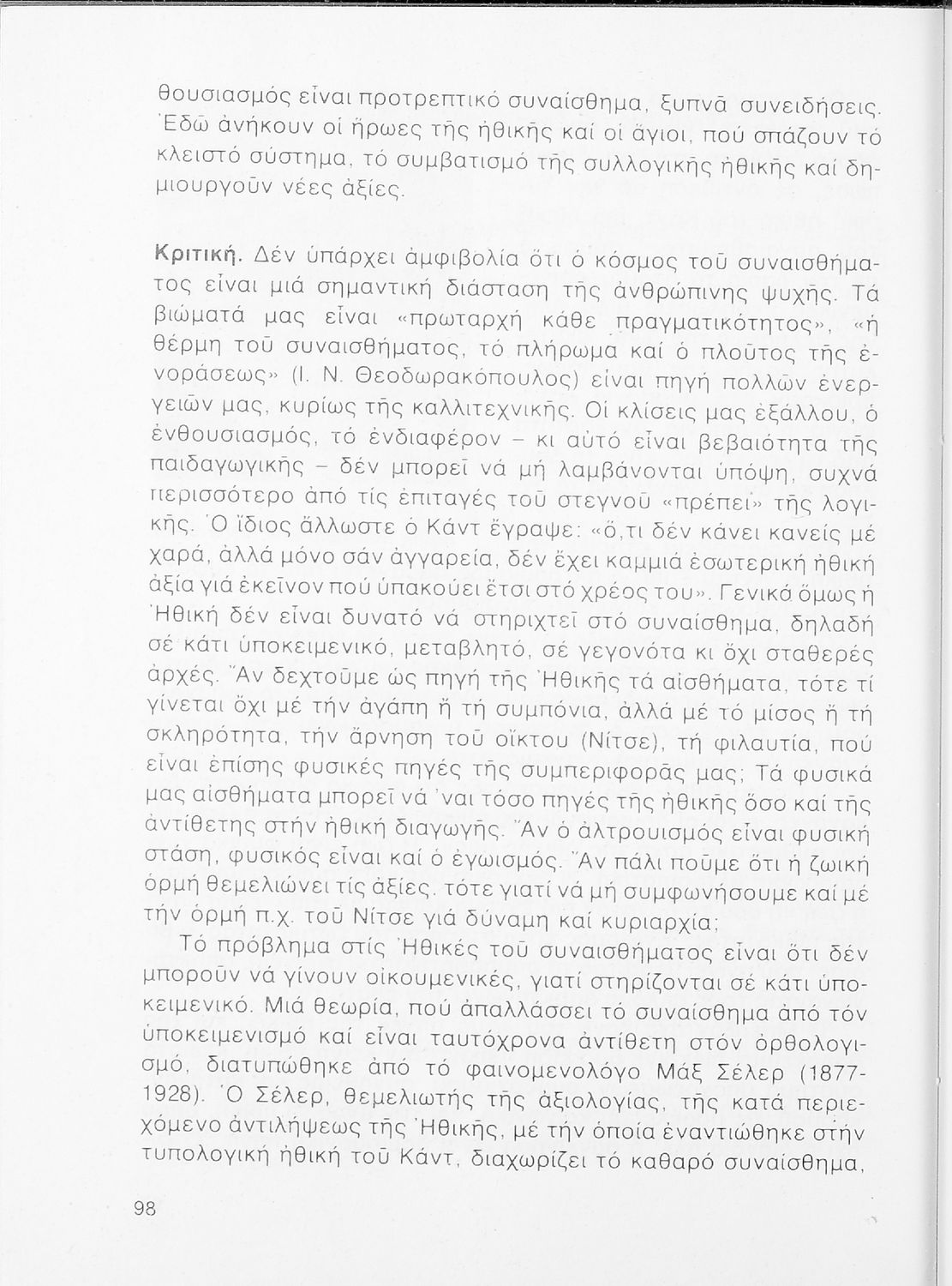 Σχολικό εγχειρίδιο Φιλοσοφίας Γ΄ Λυκείου που ακολουθεί μια ιστορική πραγμάτευση επιστημολογικών, ηθικών και αισθητικών ζητημάτων και καλύπτει δύο περιόδους: α) την ελληνική αρχαιότητα και β) την σύγχρονη ευρωπαϊκή σκέψη από τον Descartes και τον Kant στον λογικό θετικισμό και τον νεοκαντιανισμό. Περιέχει εκτενές κεφάλαιο για τους προσωκρατικούς.