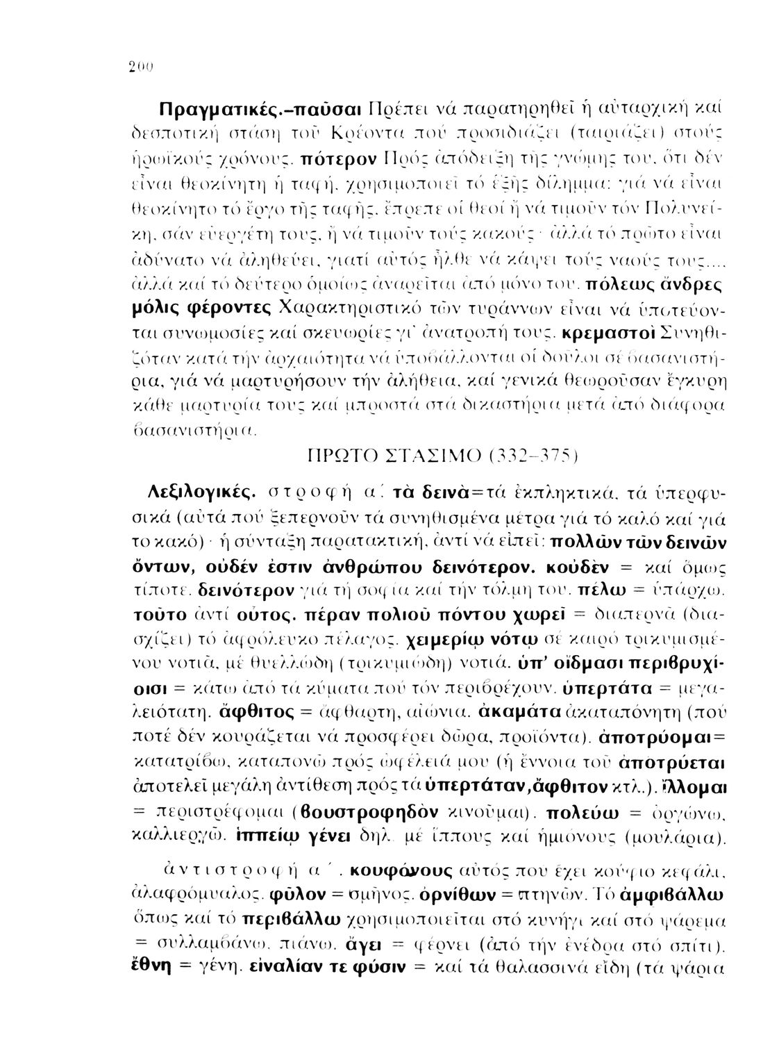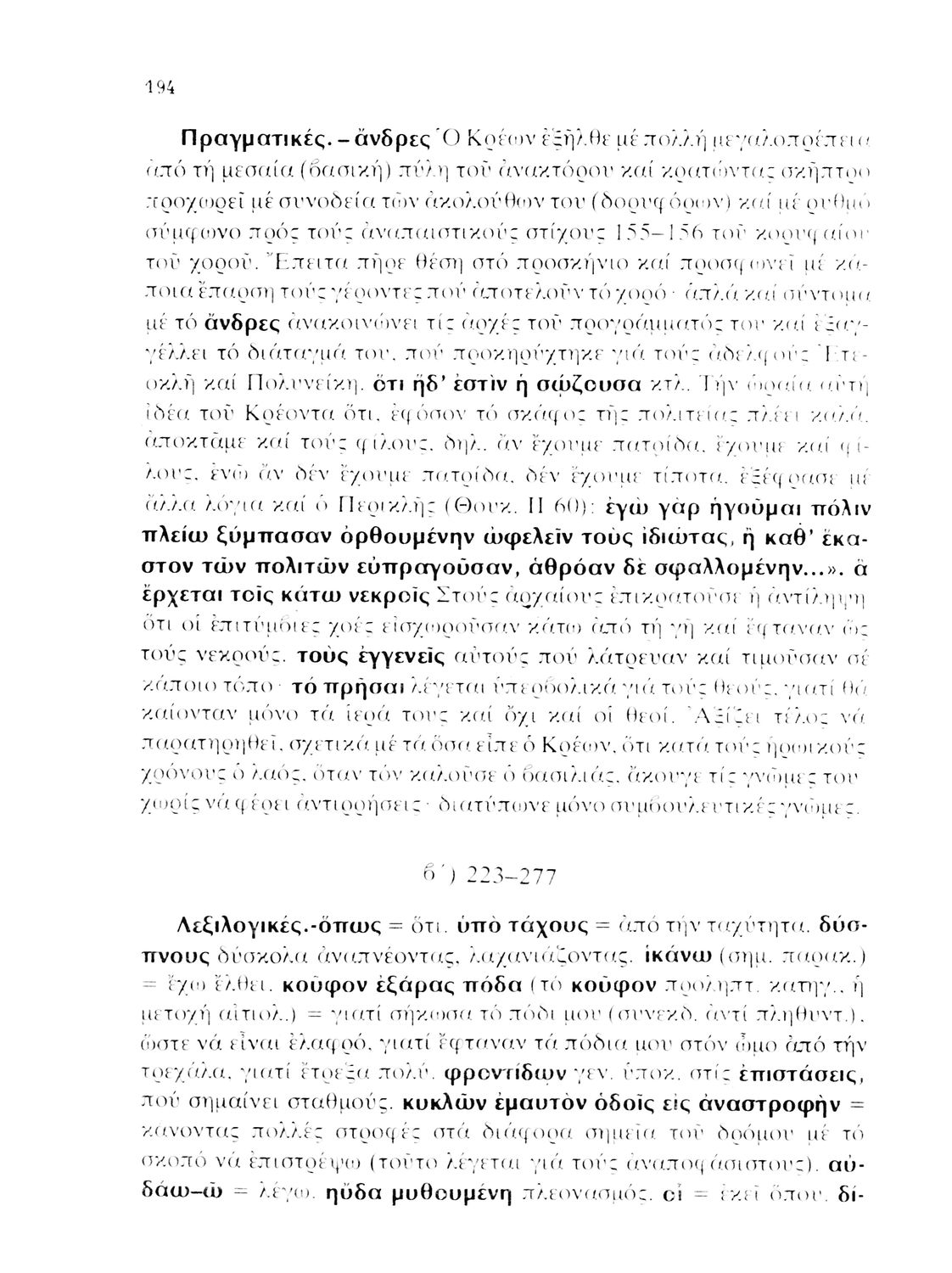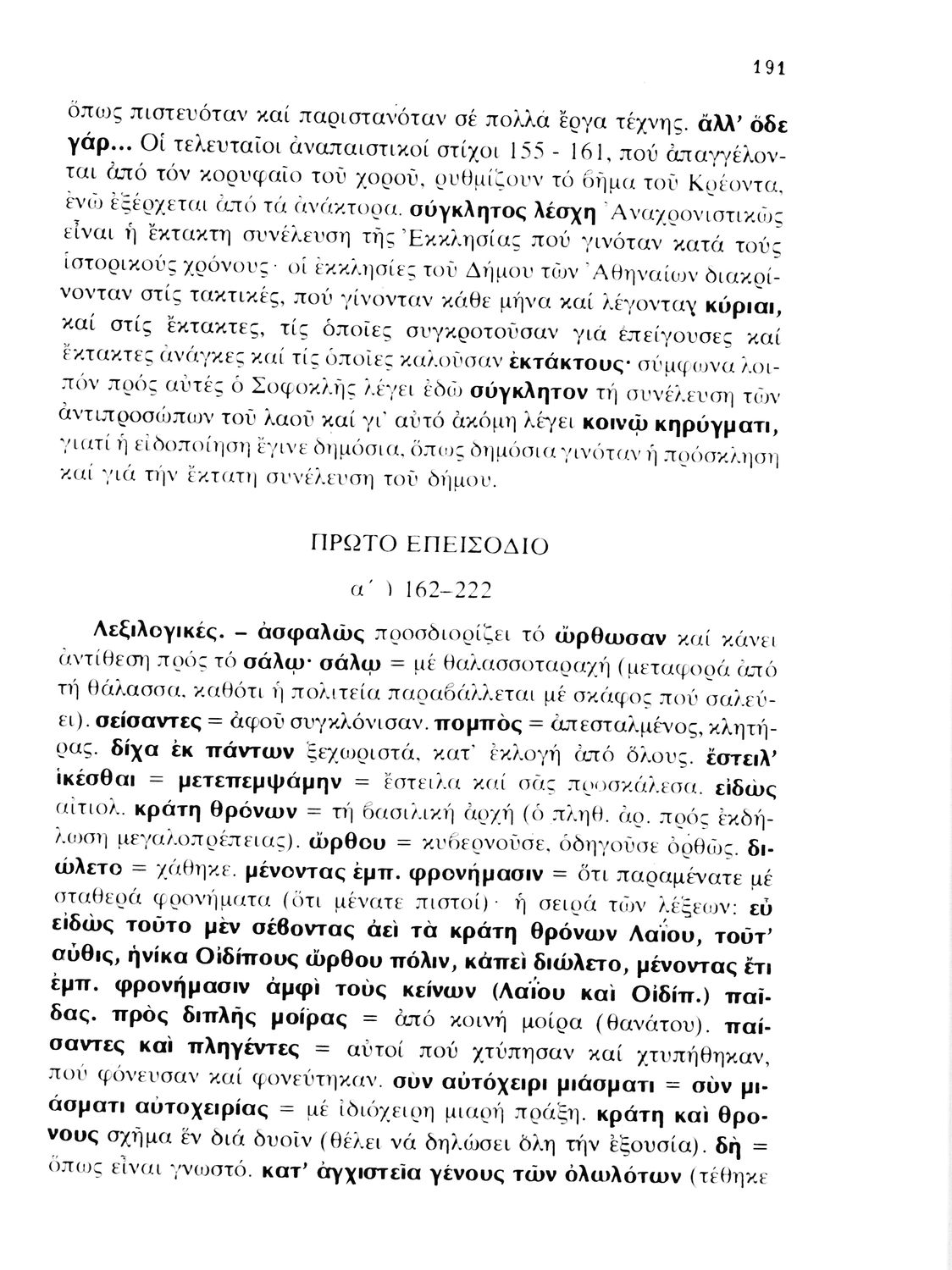 Σχολικό εγχειρίδιο της Γ΄ Λυκείου για το μάθημα των Αρχαίων Ελληνικών στο Λύκειο. Περιέχει τις τραγωδίες του Σοφοκλή Οιδίπους Τύραννος και Αντιγόνη. Τα κείμενα συνοδεύονται από ερμηνευτικές και λεξιλογικές παρατηρήσεις του συγγραφέα.