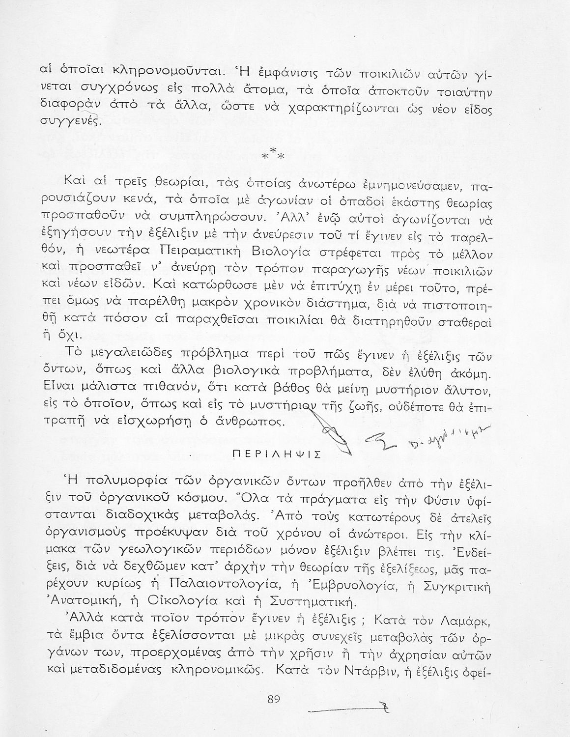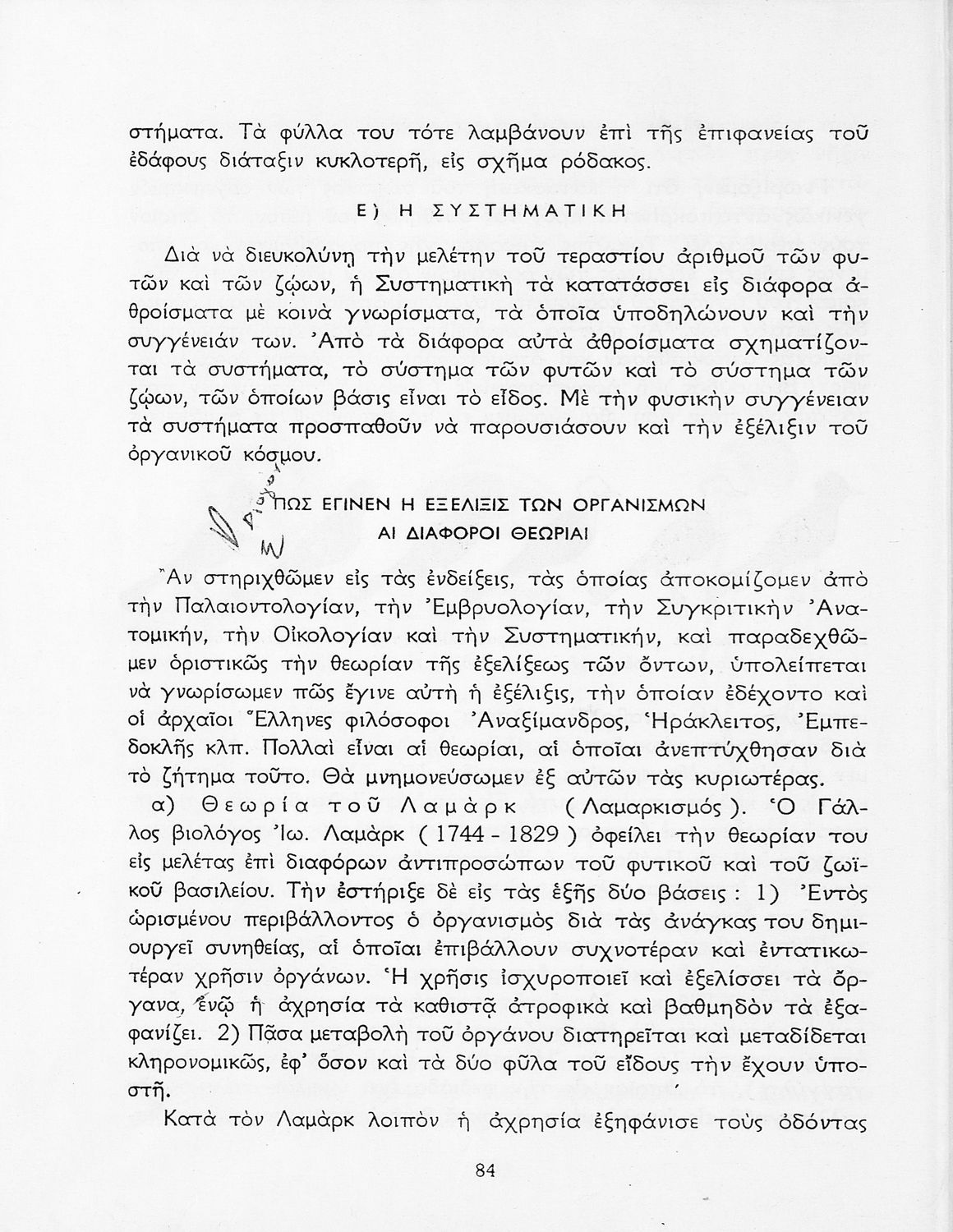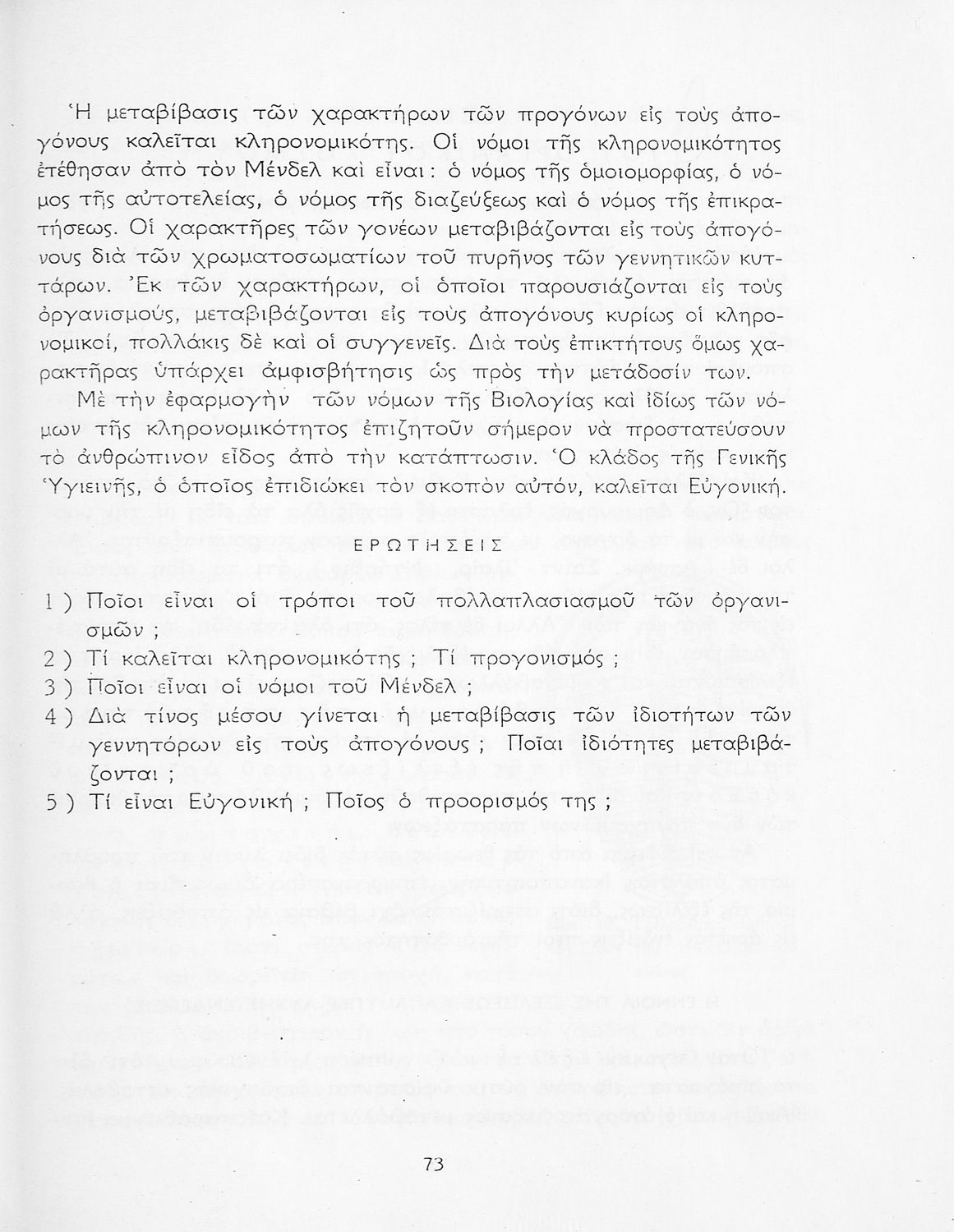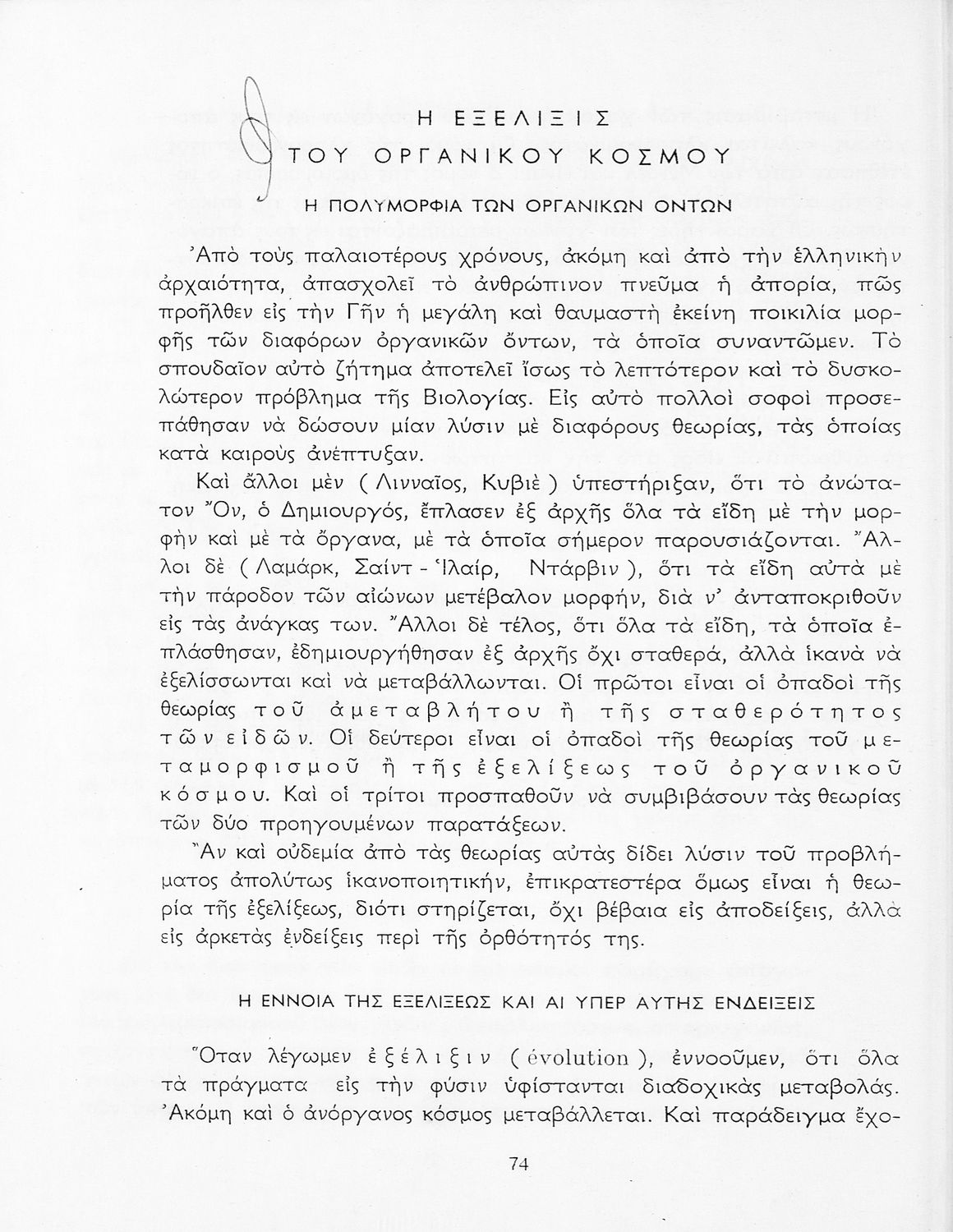 Σχολικό εγχειρίδιο Βιολογίας Δ΄ Γυμνασίου που εστιάζει στις συνθήκες γέννησης, μεταβολής και θανάτου των έμβιων οργανισμών. Ο συγγραφέας ήταν καθηγητής της γενικής Βιολογίας στο Πανεπιστήμιο Αθηνών.