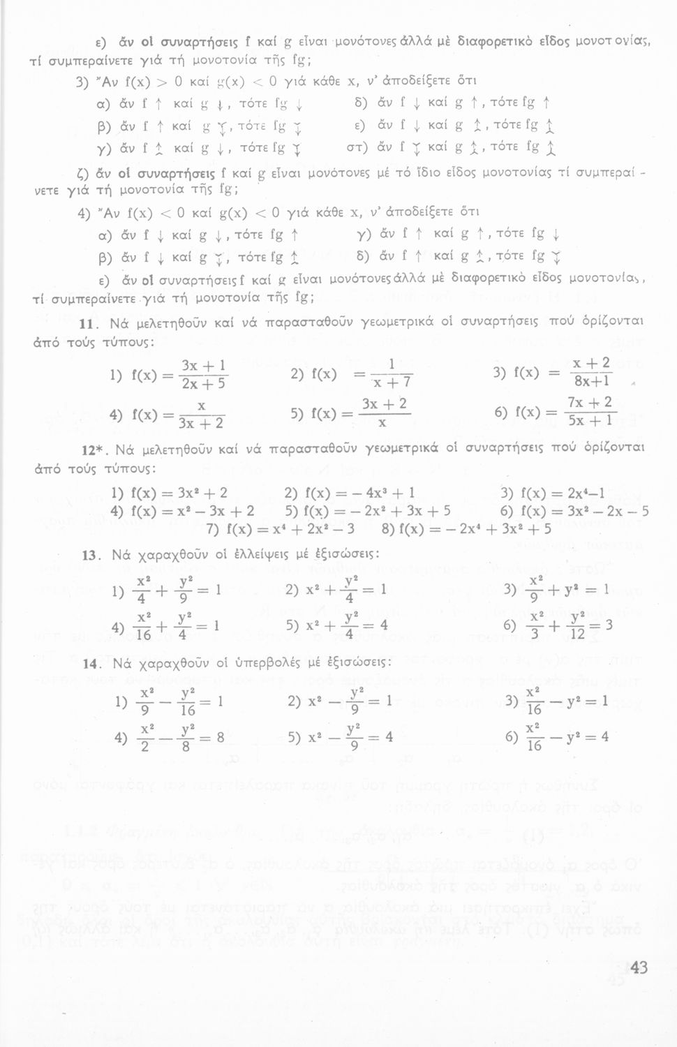 Σχολικό εγχειρίδιο Μαθηματικών Γ΄ Λυκείου που είναι χωρισμένο σε θεωρήματα, παραδείγματα και ασκήσεις και περιλαμβάνει στοιχεία Ανώτερης Άλγεβρας και Μαθηματικής Ανάλυσης.