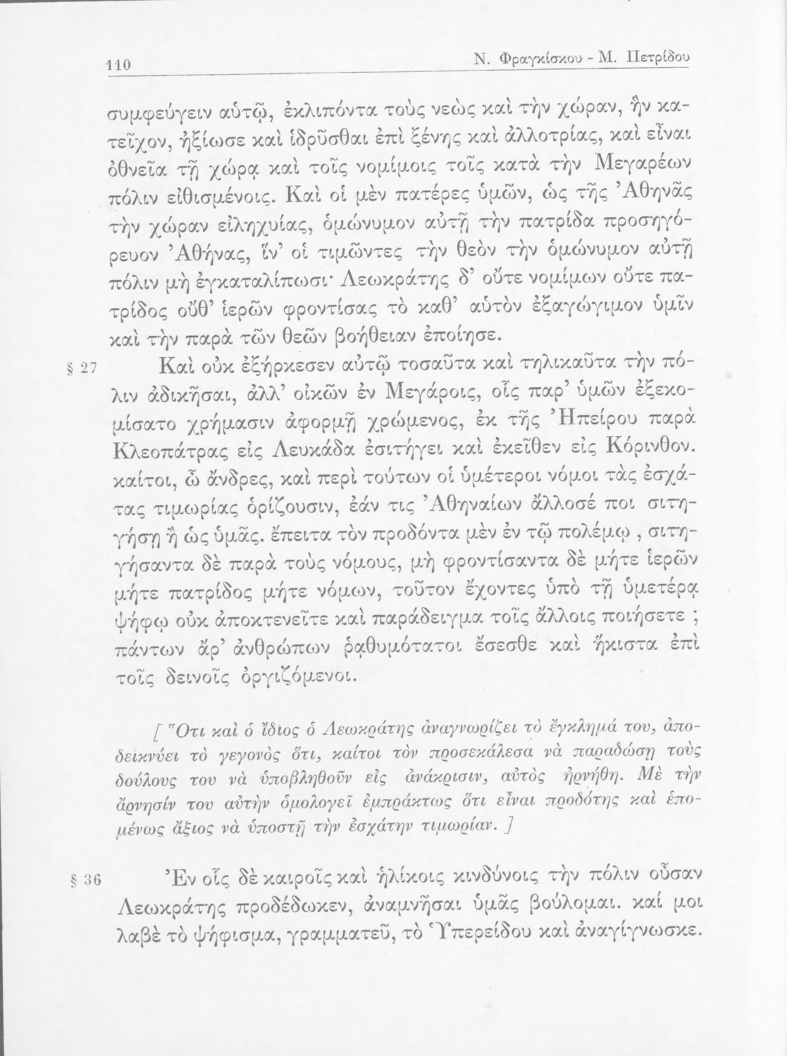 520 ## _aΣχολικό εγχειρίδιο Αρχαίων Ελληνικών Γυμνασίου που περιέχει τους Ολυνθιακούς Α΄ και Β΄ και τους Φιλιππικούς Α΄ και Β΄ του Δημοσθένη, το Λόγο κατά Λεωκράτους του Λυκούργου και τις Επιστολές προς Φίλιππο του Ισοκράτη, και ερμηνευτικά και ετυμολογικά σχόλια.
