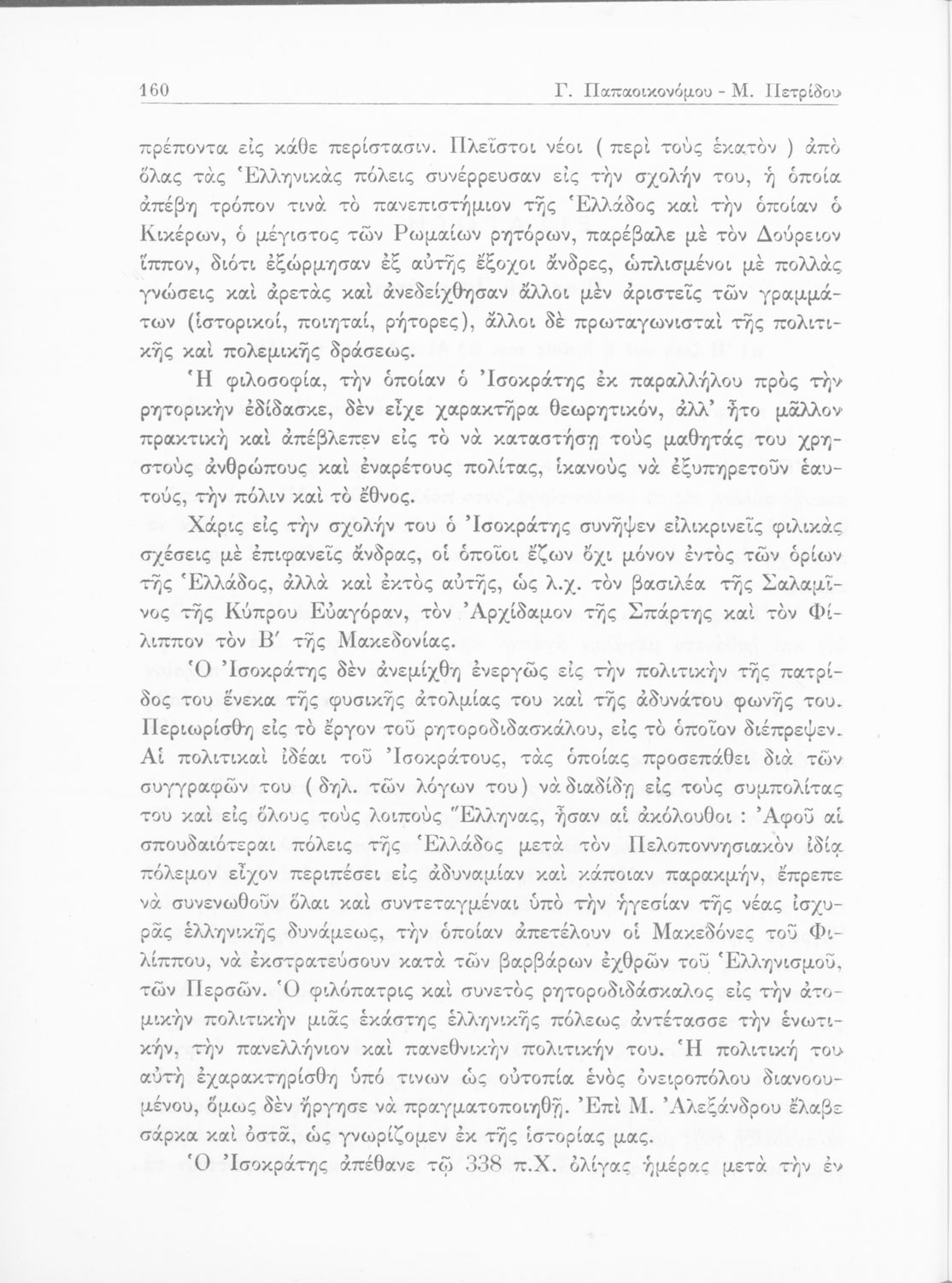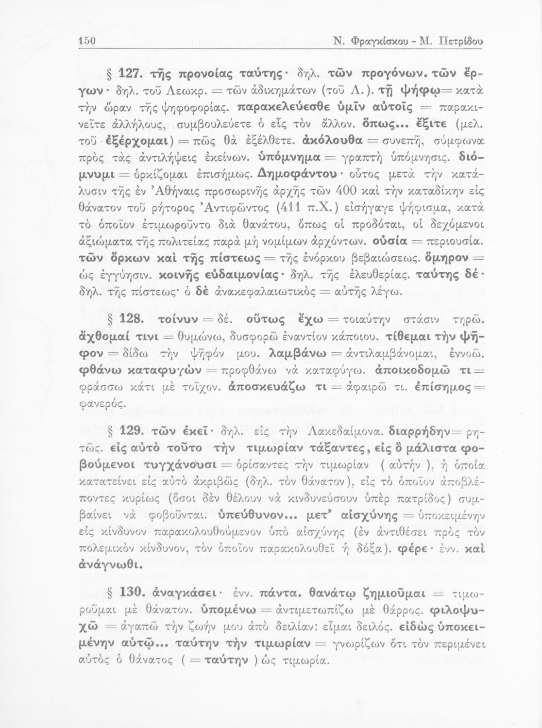 Σχολικό εγχειρίδιο Αρχαίων Ελληνικών Γυμνασίου που περιέχει τους Ολυνθιακούς Α΄ και Β΄ και τους Φιλιππικούς Α΄ και Β΄ του Δημοσθένη, το Λόγο κατά Λεωκράτους του Λυκούργου και τις Επιστολές προς Φίλιππο του Ισοκράτη, και ερμηνευτικά και ετυμολογικά σχόλια.