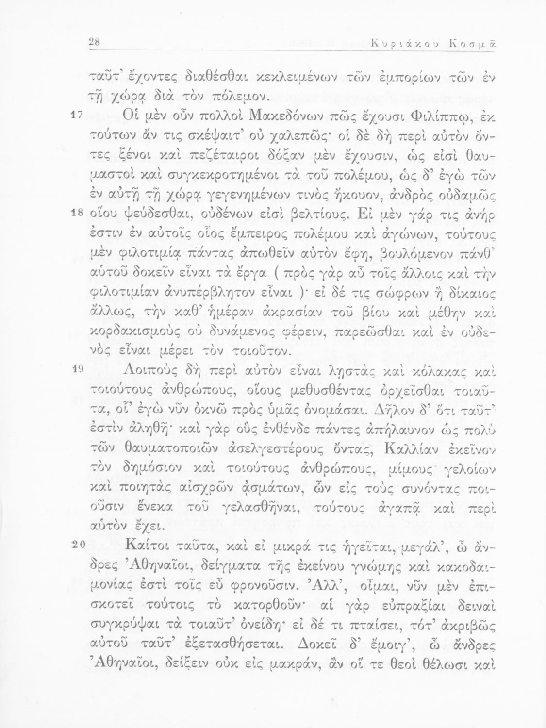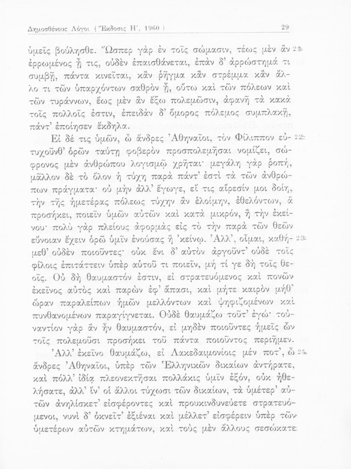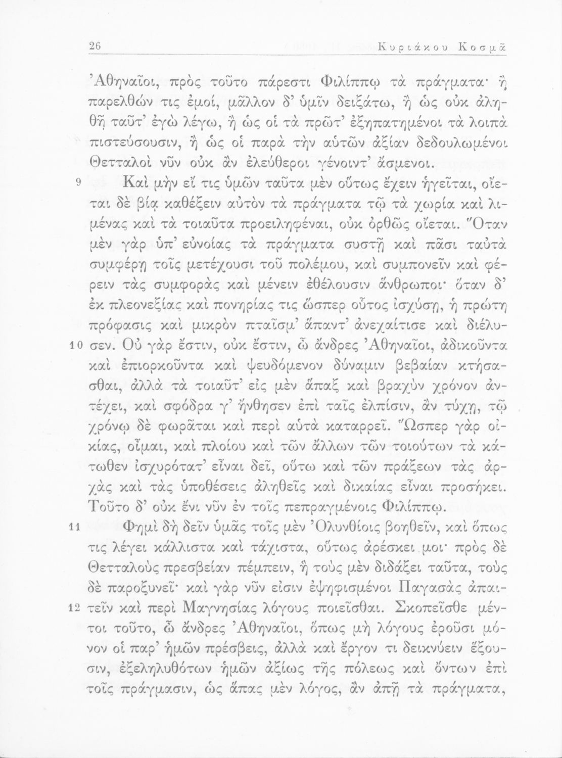 520 ## _aΣχολικό εγχειρίδιο Αρχαίων Ελληνικών Γυμνασίου που περιέχει τους Ολυνθιακούς Α΄ και Β΄ και τους Φιλιππικούς Α΄ και Β΄ του Δημοσθένη, το Λόγο κατά Λεωκράτους του Λυκούργου και τις Επιστολές προς Φίλιππο του Ισοκράτη, και ερμηνευτικά και ετυμολογικά σχόλια.