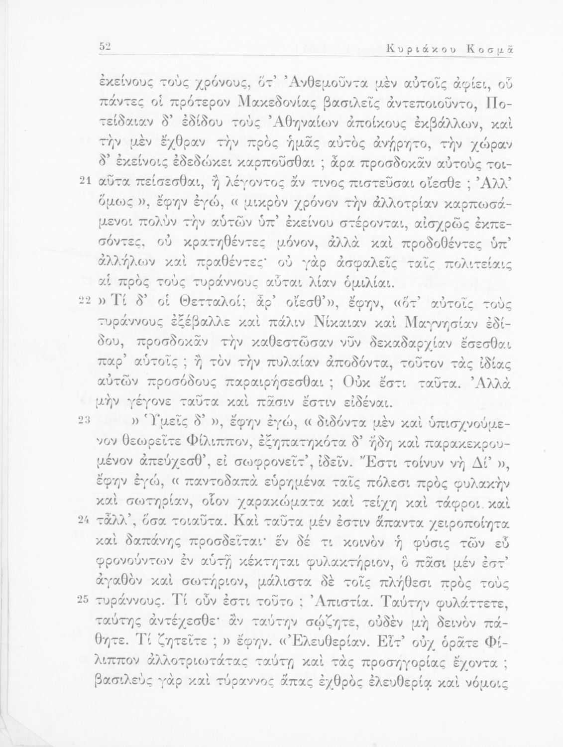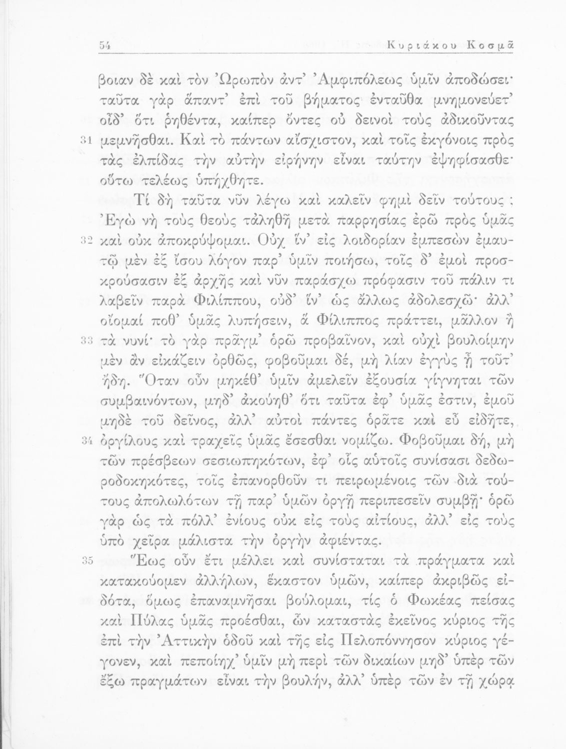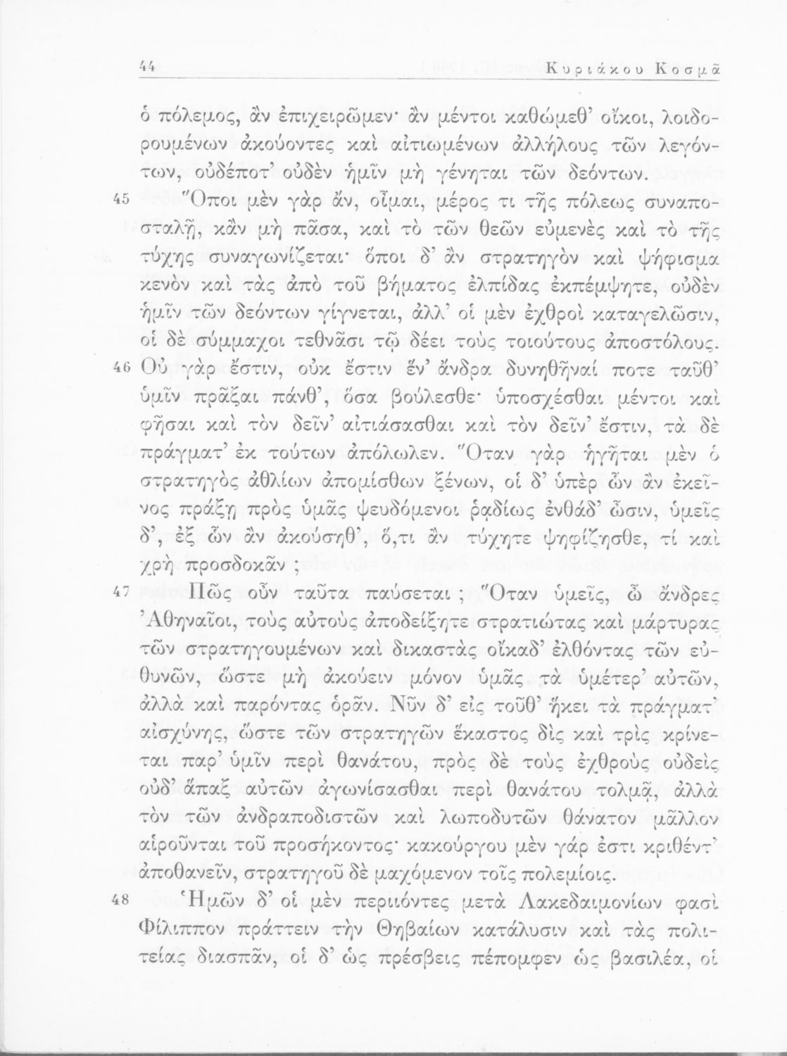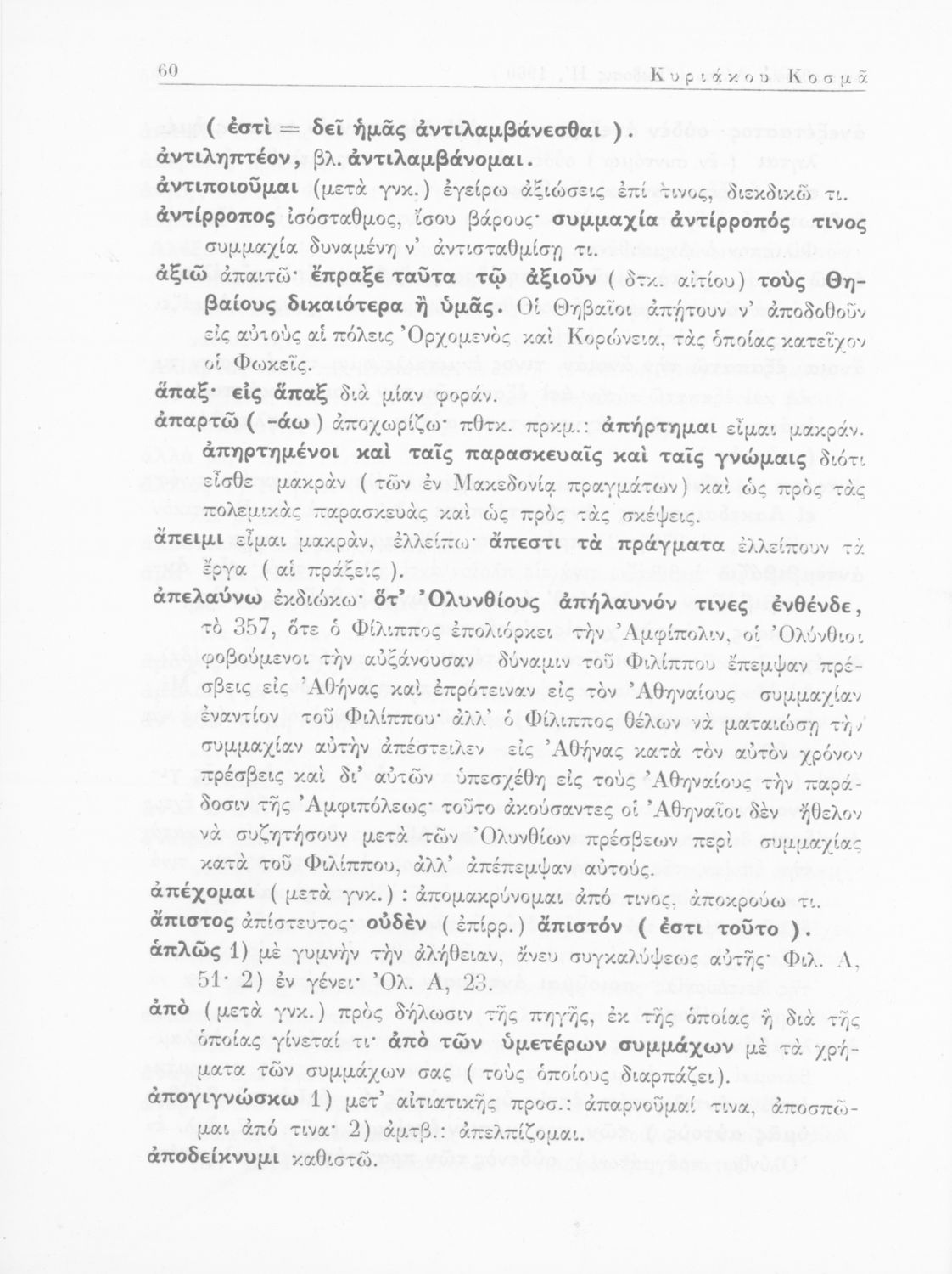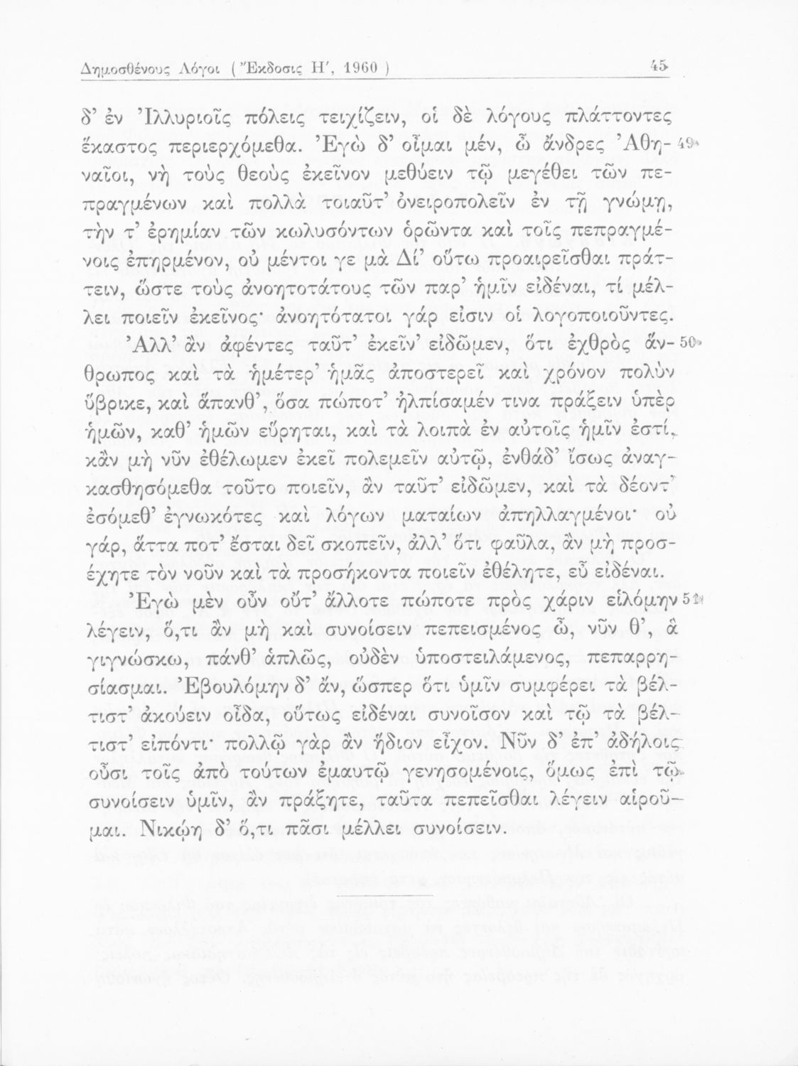 Σχολικό εγχειρίδιο Αρχαίων Ελληνικών Γυμνασίου που περιέχει τους Ολυνθιακούς Α΄ και Β΄ και τους Φιλιππικούς Α΄ και Β΄ του Δημοσθένη, το Λόγο κατά Λεωκράτους του Λυκούργου και τις Επιστολές προς Φίλιππο του Ισοκράτη, και ερμηνευτικά και ετυμολογικά σχόλια.