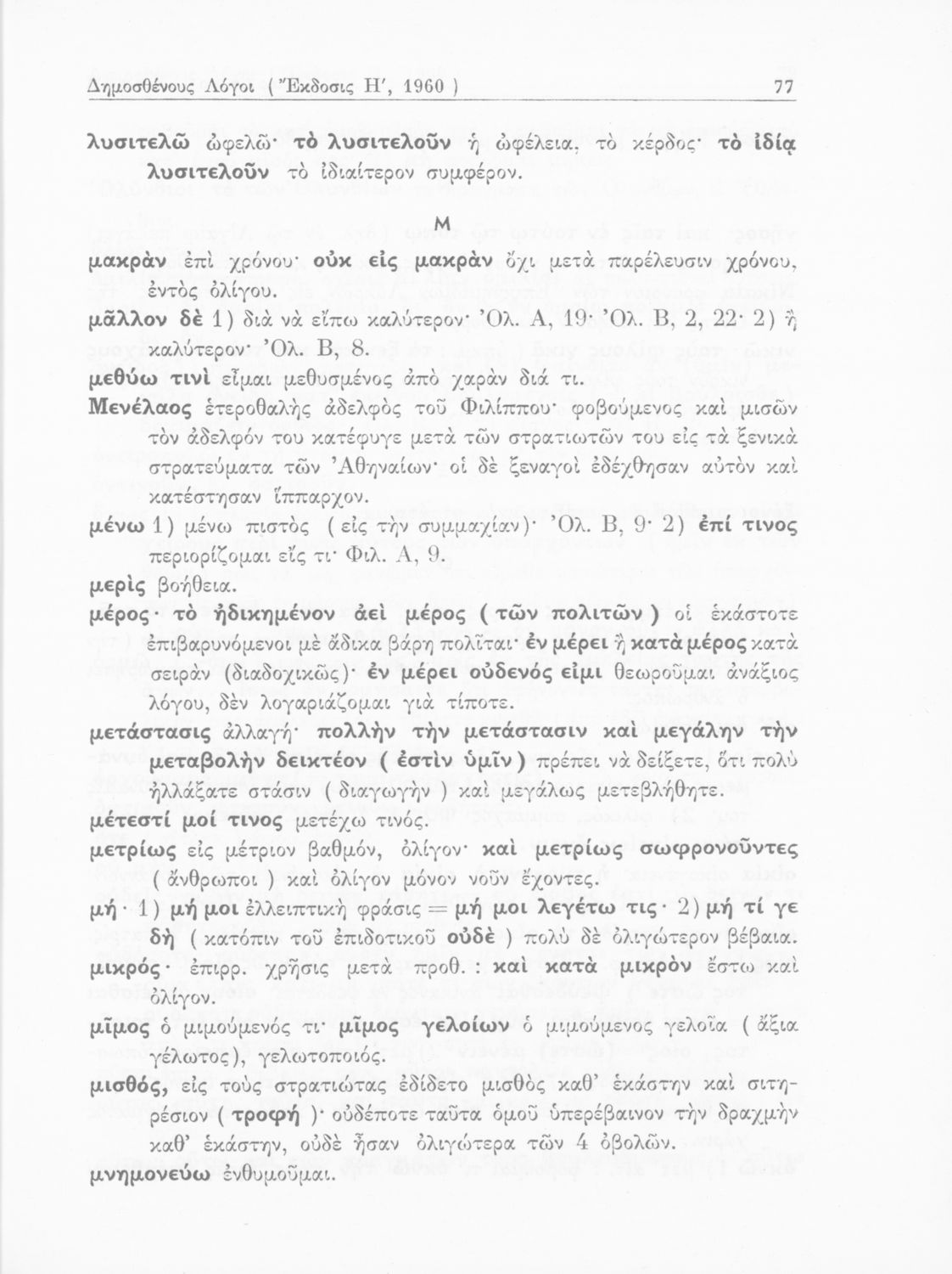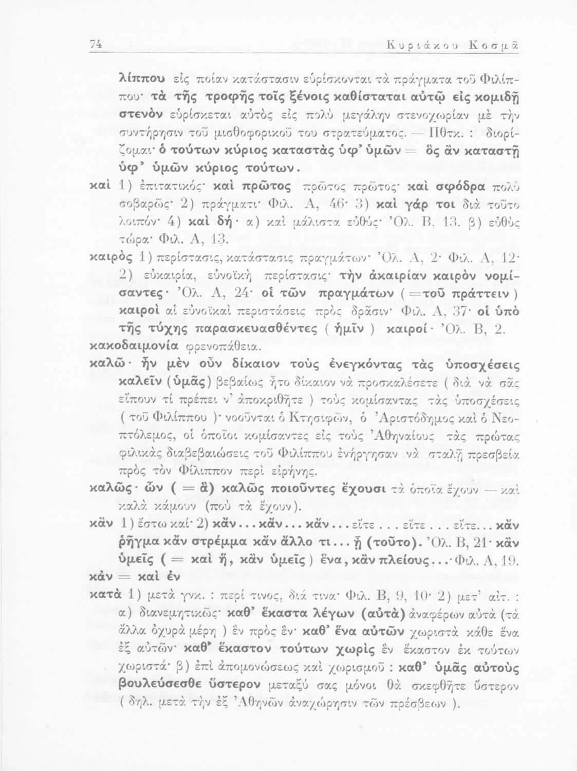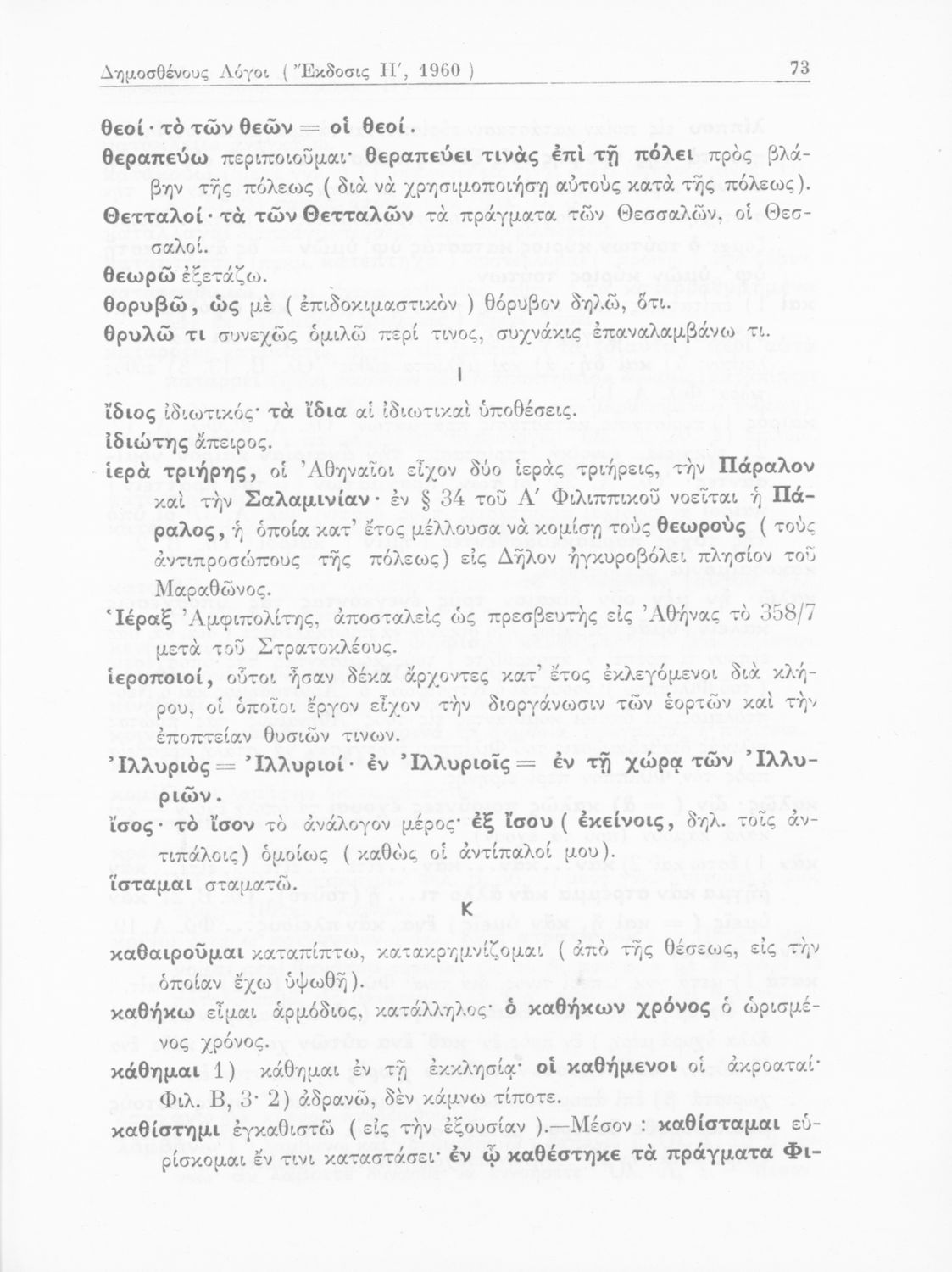 Δημοσθένης, Λυκούργος, Ισοκράτης, Κυριάκος Κοσμάς, Νικ. Φραγκίσκος, Μιχ. Περίδης, Γ. Παπαοικονόμου (σχόλια)