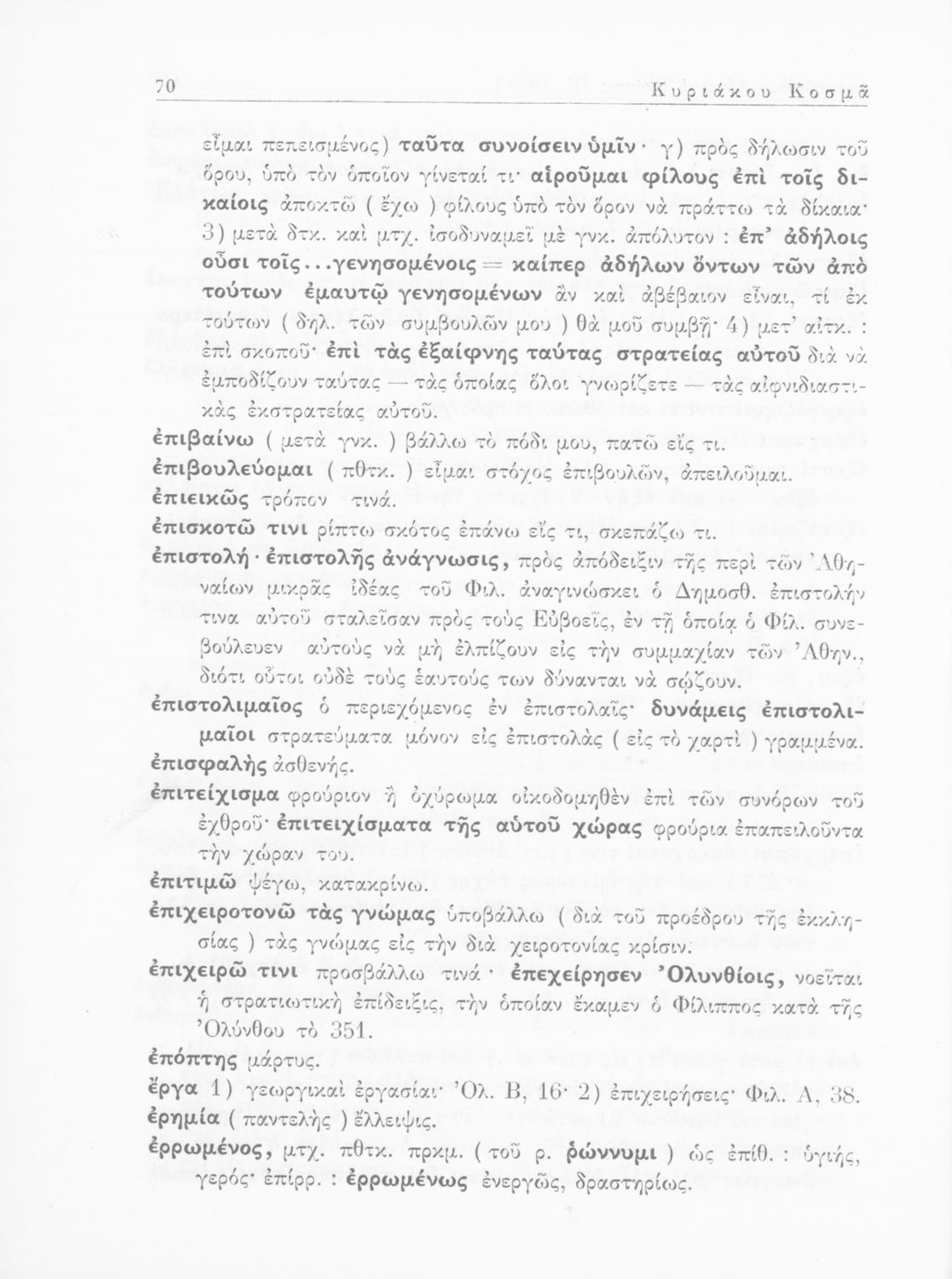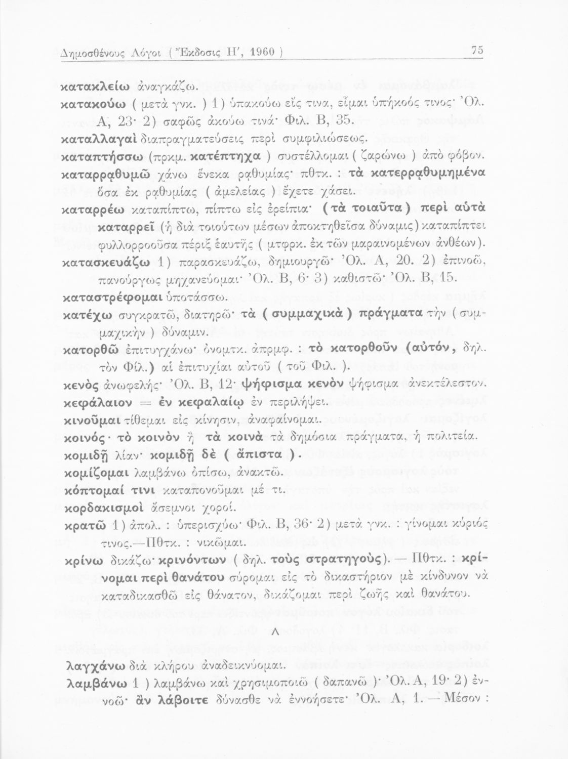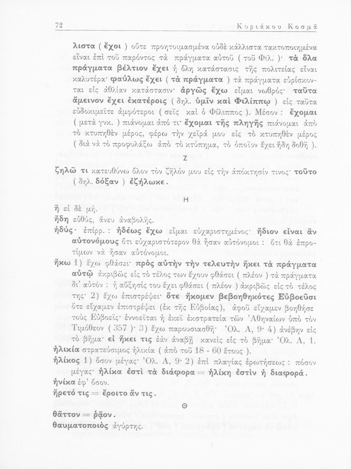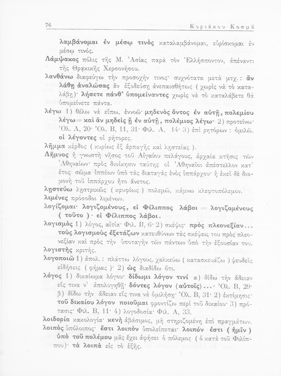 Δημοσθένης, Λυκούργος, Ισοκράτης, Κυριάκος Κοσμάς, Νικ. Φραγκίσκος, Μιχ. Περίδης, Γ. Παπαοικονόμου (σχόλια)
