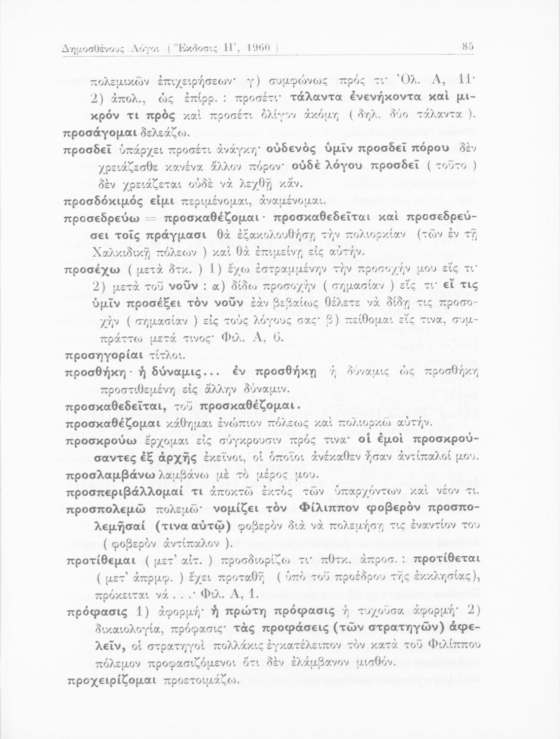 Σχολικό εγχειρίδιο Αρχαίων Ελληνικών Γυμνασίου που περιέχει τους Ολυνθιακούς Α΄ και Β΄ και τους Φιλιππικούς Α΄ και Β΄ του Δημοσθένη, το Λόγο κατά Λεωκράτους του Λυκούργου και τις Επιστολές προς Φίλιππο του Ισοκράτη, και ερμηνευτικά και ετυμολογικά σχόλια.