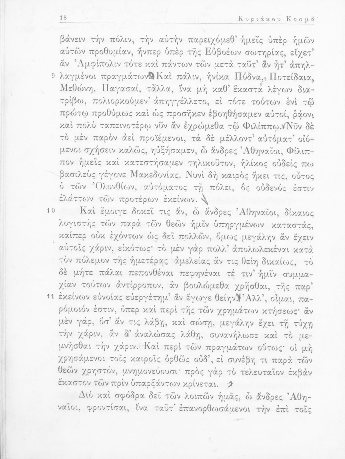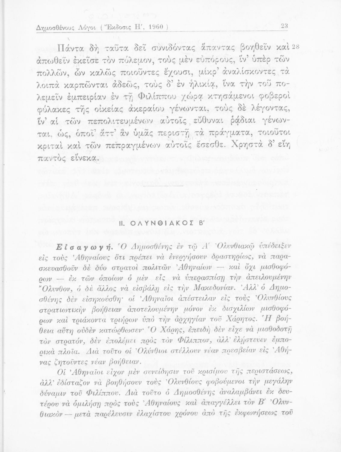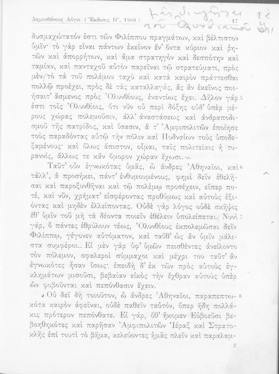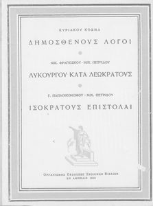 Σχολικό εγχειρίδιο Αρχαίων Ελληνικών Γυμνασίου που περιέχει τους Ολυνθιακούς Α΄ και Β΄ και τους Φιλιππικούς Α΄ και Β΄ του Δημοσθένη, το Λόγο κατά Λεωκράτους του Λυκούργου και τις Επιστολές προς Φίλιππο του Ισοκράτη, και ερμηνευτικά και ετυμολογικά σχόλια.
