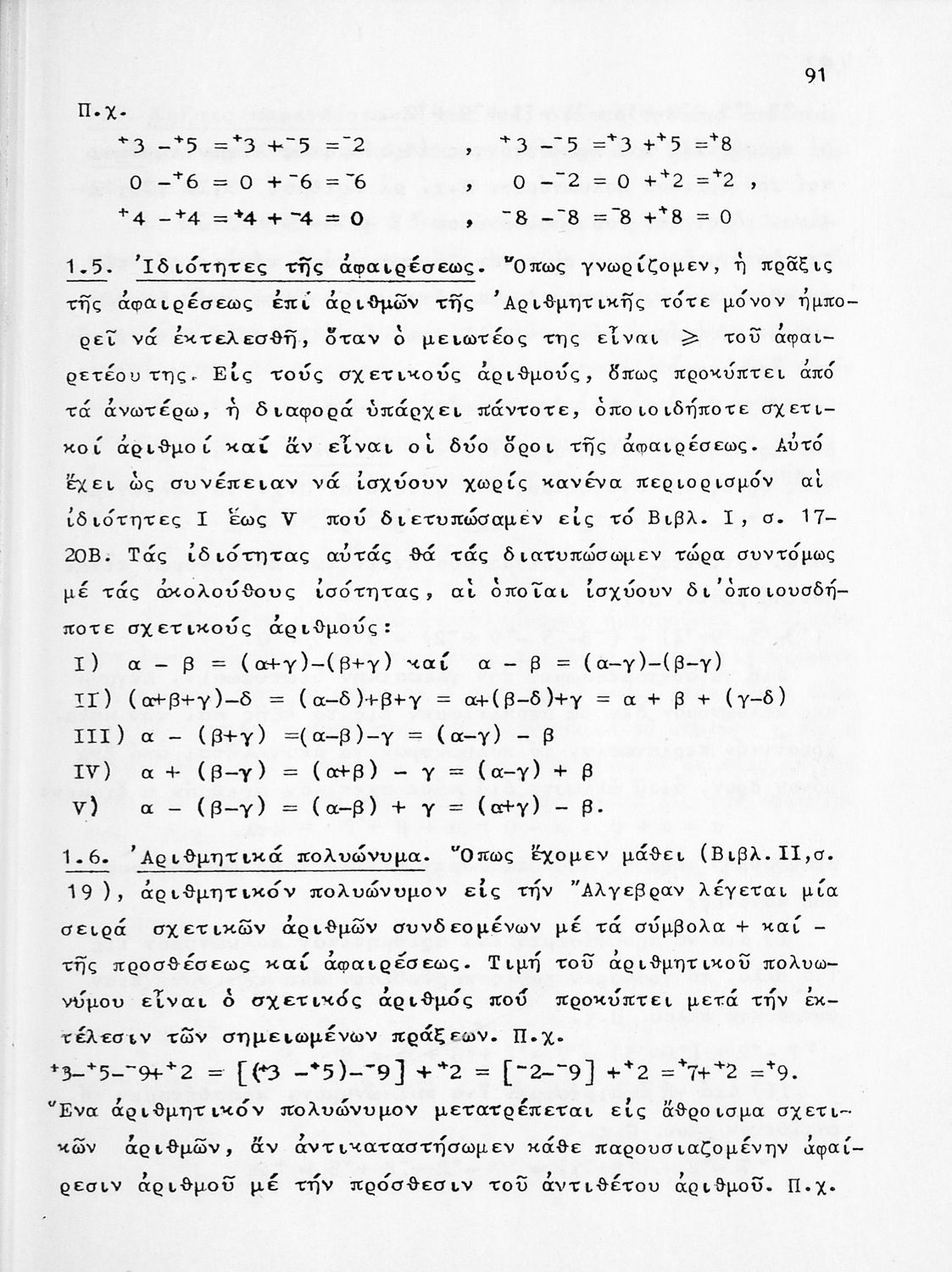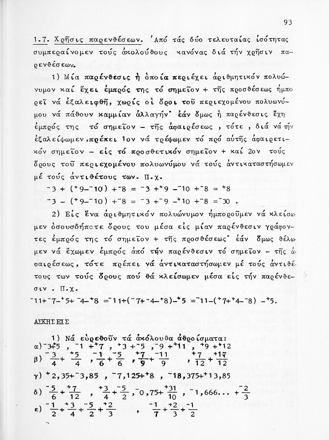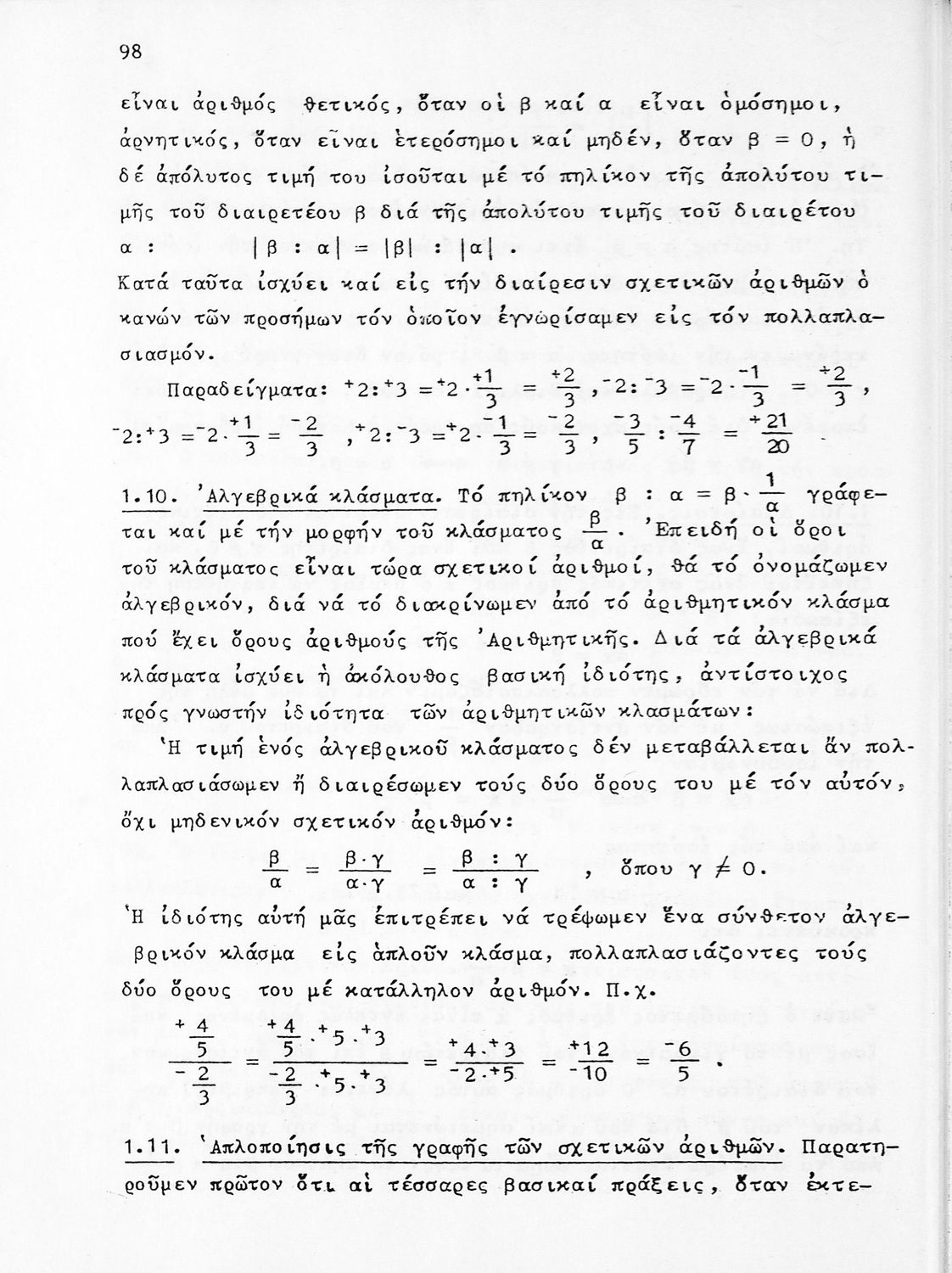 Σχολικό εγχειρίδιο Αριθμητικής για τις Α΄, Β΄, Γ΄ Γυμνασίου και τα Ανώτερα Παρθεναγωγεία που είναι χωρισμένο σε θεωρία και ασκήσεις και εστιάζει στις αριθμητικές πράξεις με κλάσματα και ακέραιους και συμμιγείς