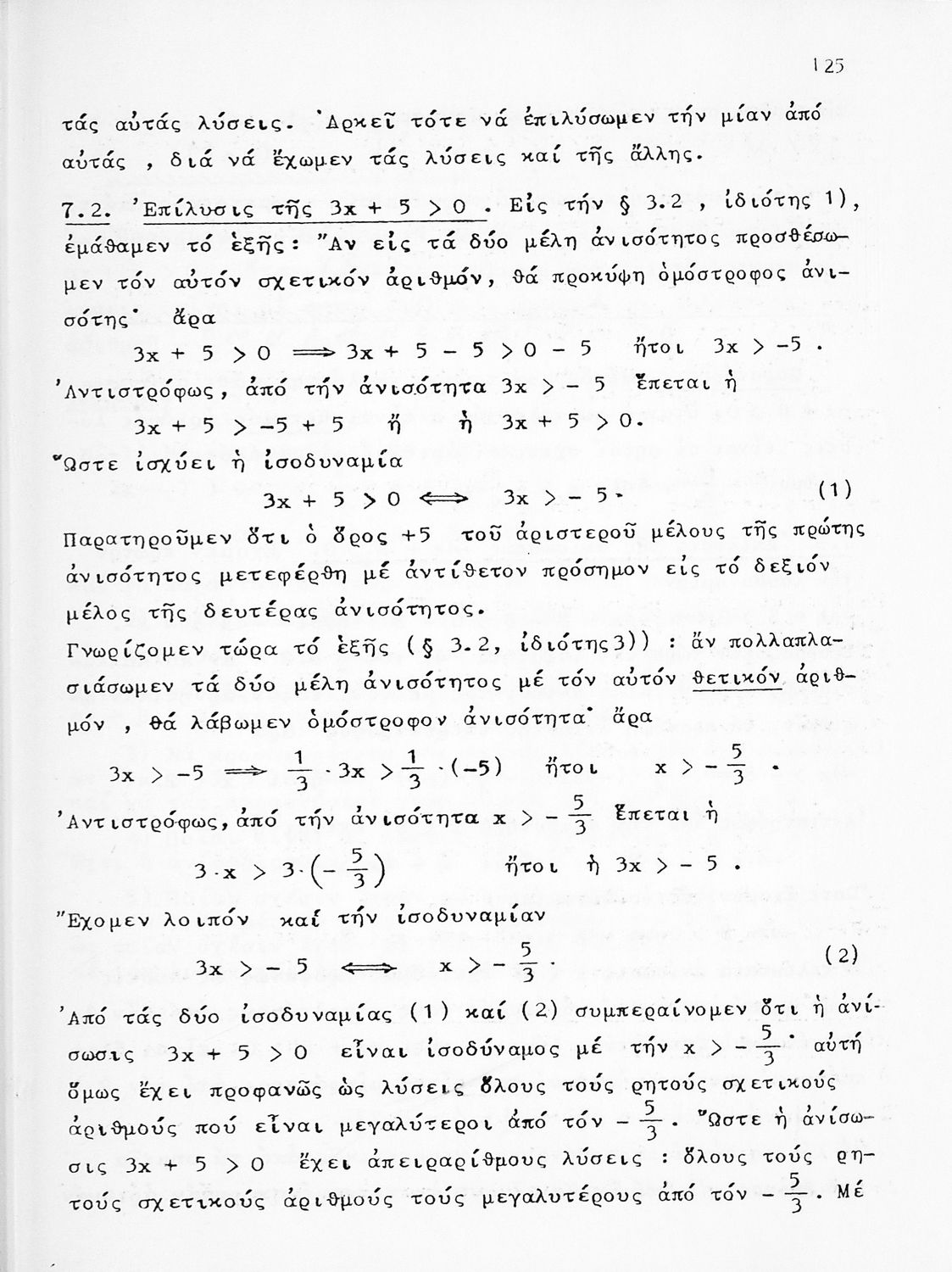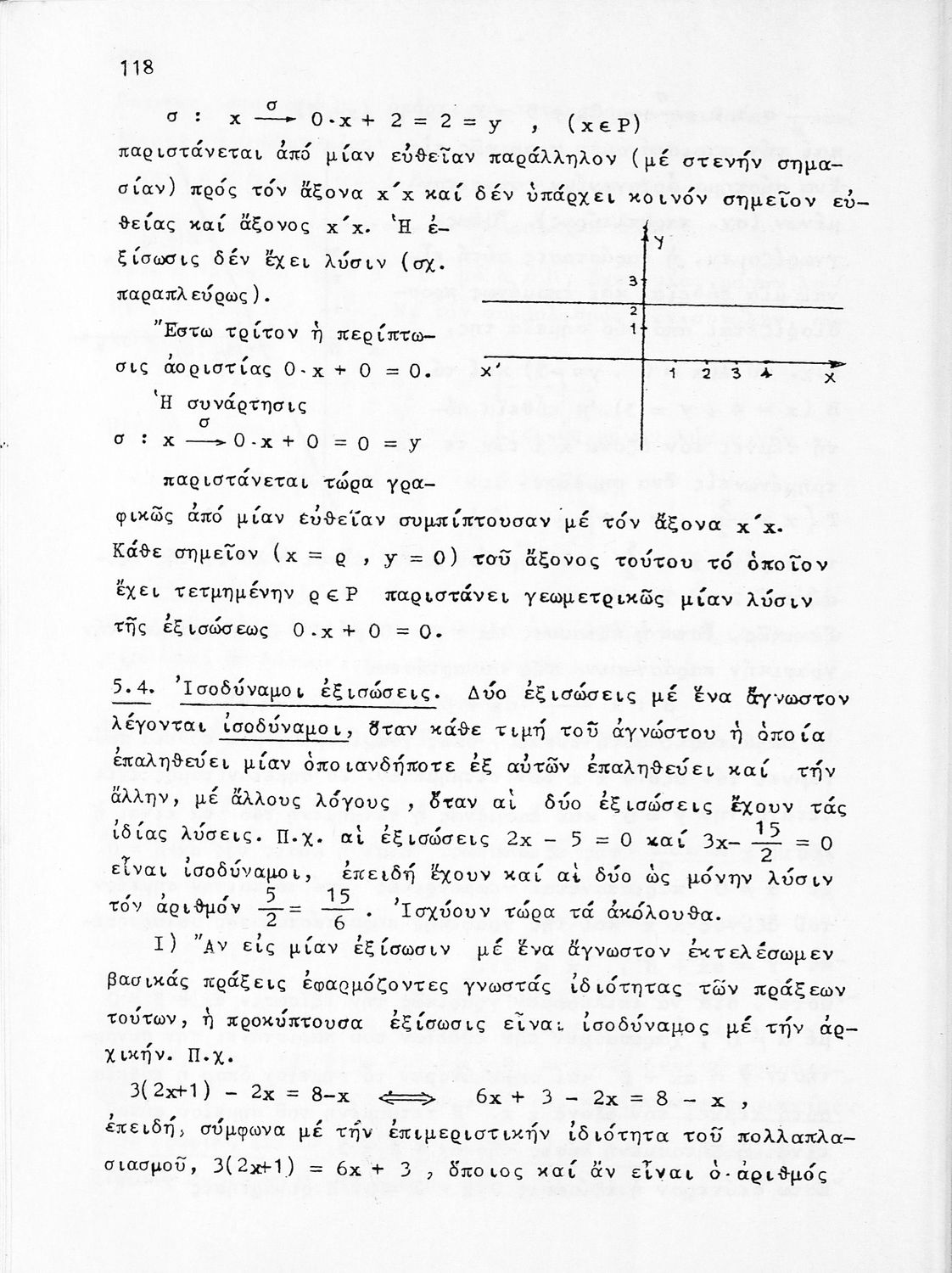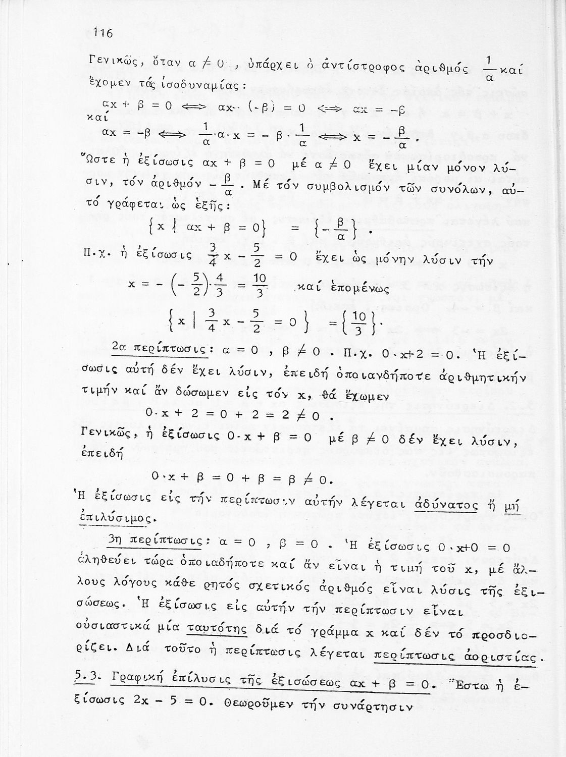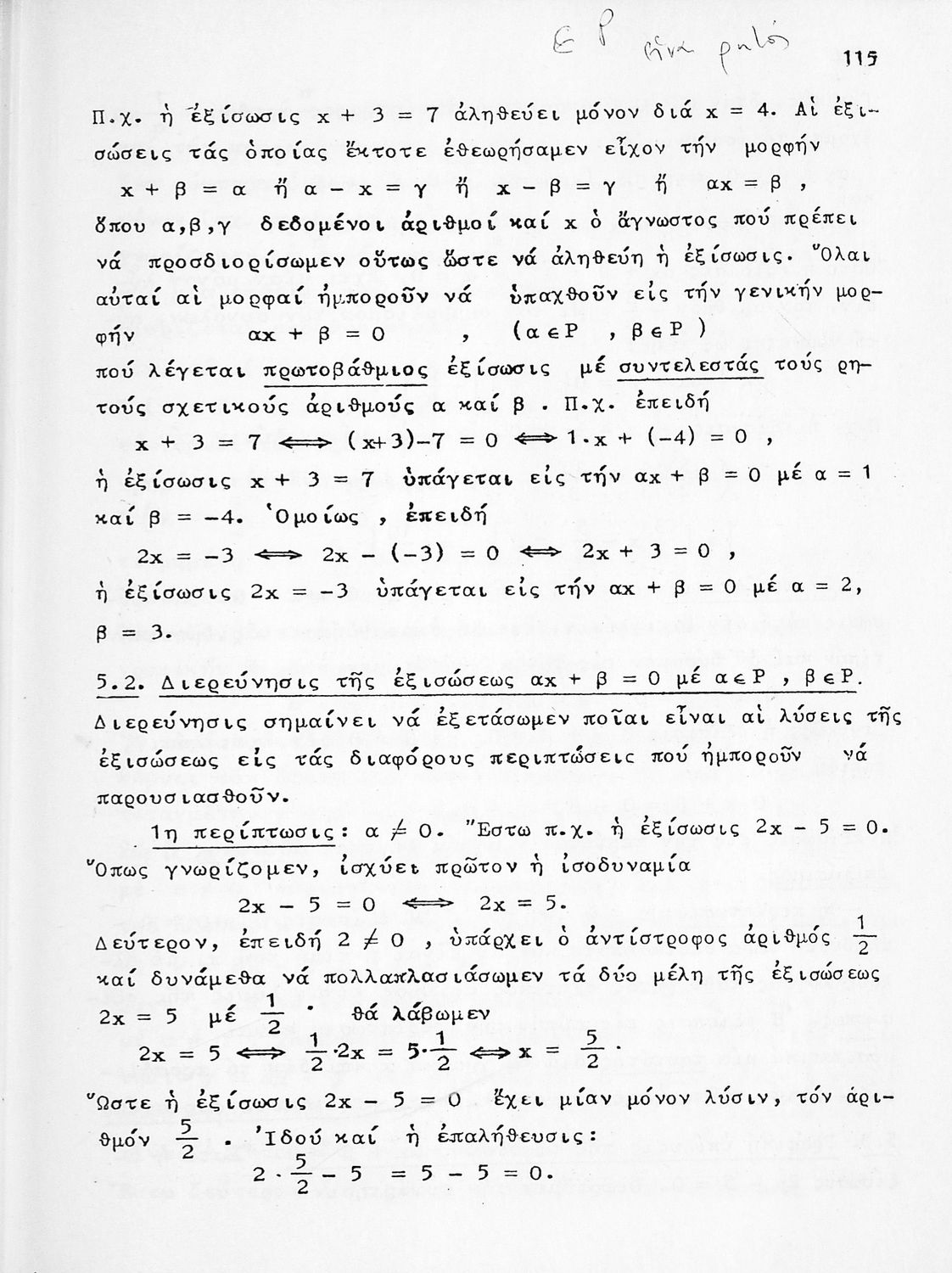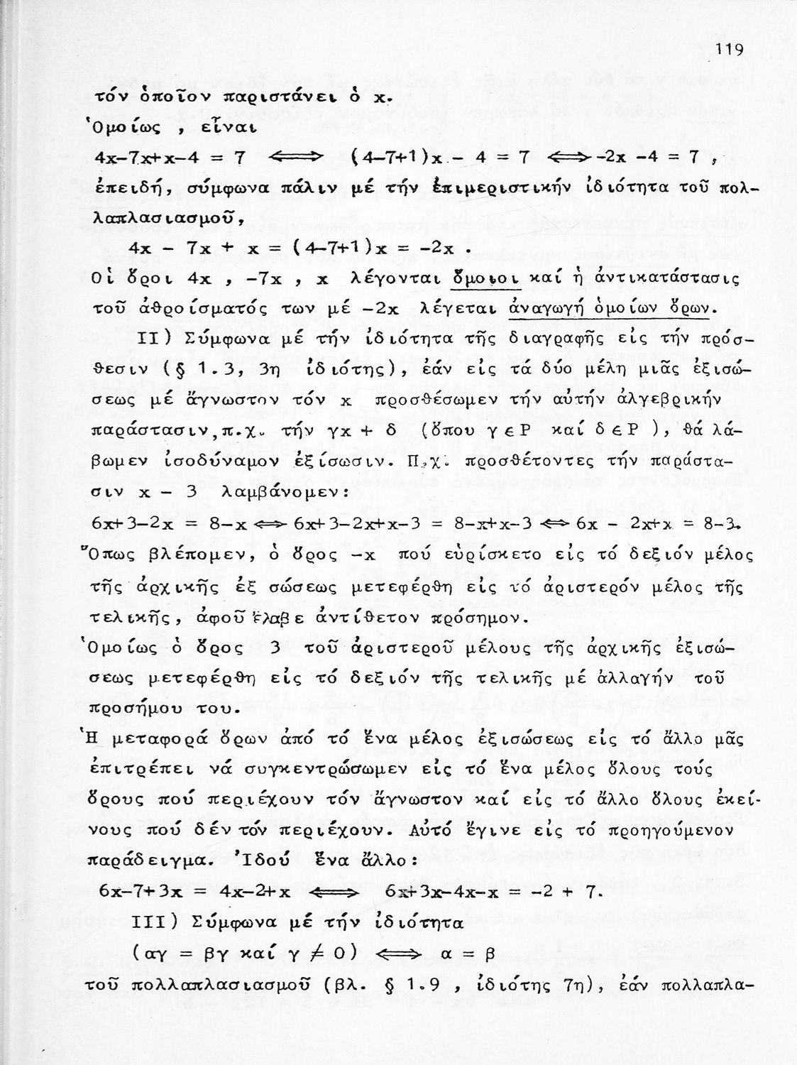Σχολικό εγχειρίδιο Μαθηματικών Β΄ Γυμνασίου χωρισμένο σε θεωρία και ασκήσεις. Φέρει το σύμβολο της δικτατορίας.