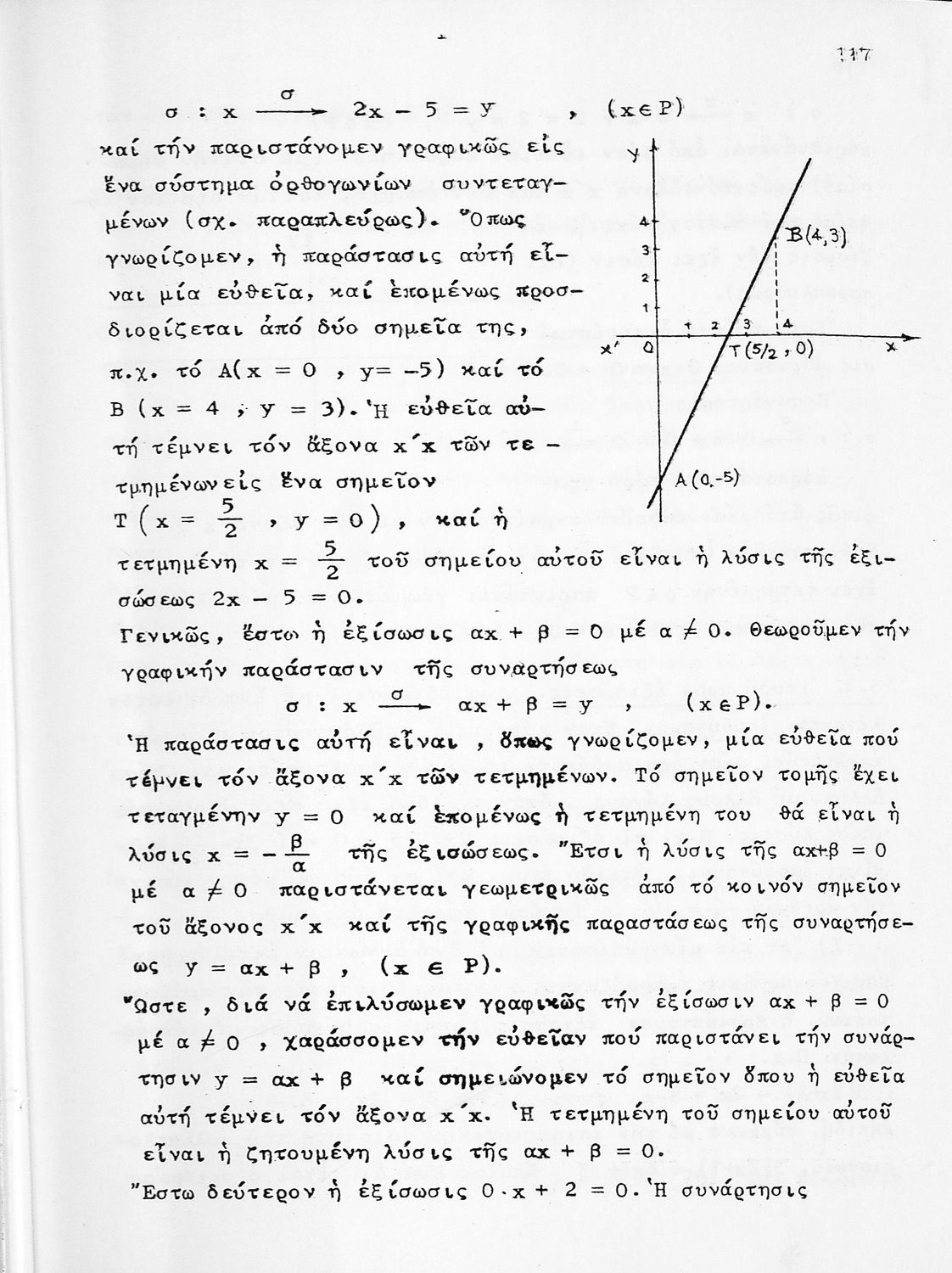 Παρουσίαση περιεχομένου: Σχολικό εγχειρίδιο Μαθηματικών Β΄ Γυμνασίου χωρισμένο σε θεωρία και ασκήσεις. Φέρει το σύμβολο της δικτατορίας.