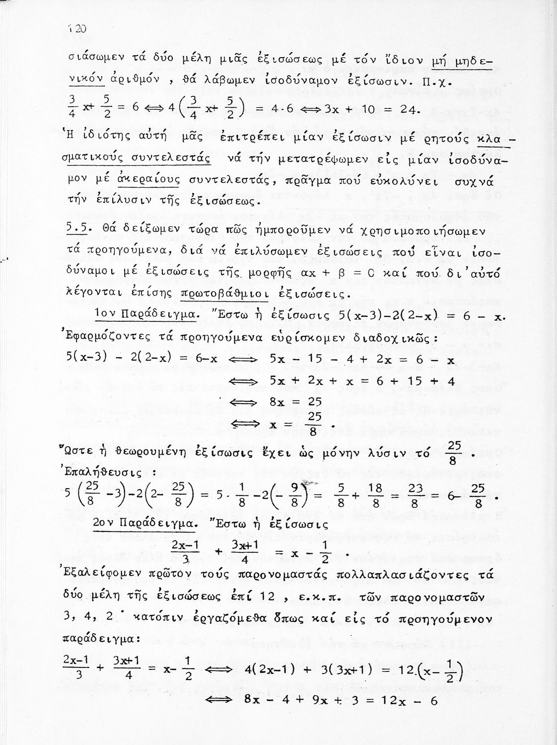 Σχολικό εγχειρίδιο Άλγεβρας για τις Δ΄ και Ε΄ Εξαταξίου Γυμνασίου χωρισμένο σε θεωρία και ασκήσεις που εστιάζει στις αλγεβρικές πράξεις και παραστάσεις, στις εξισώσεις και στις ρίζες.