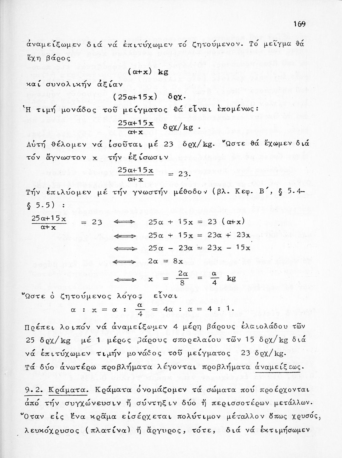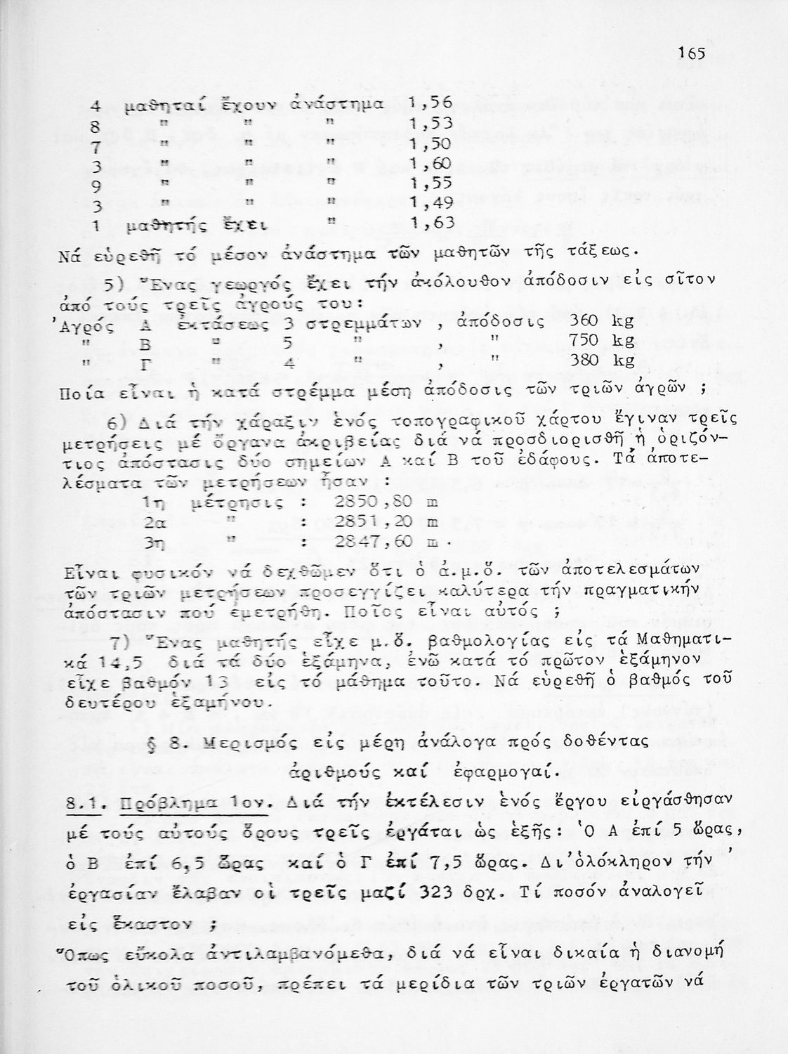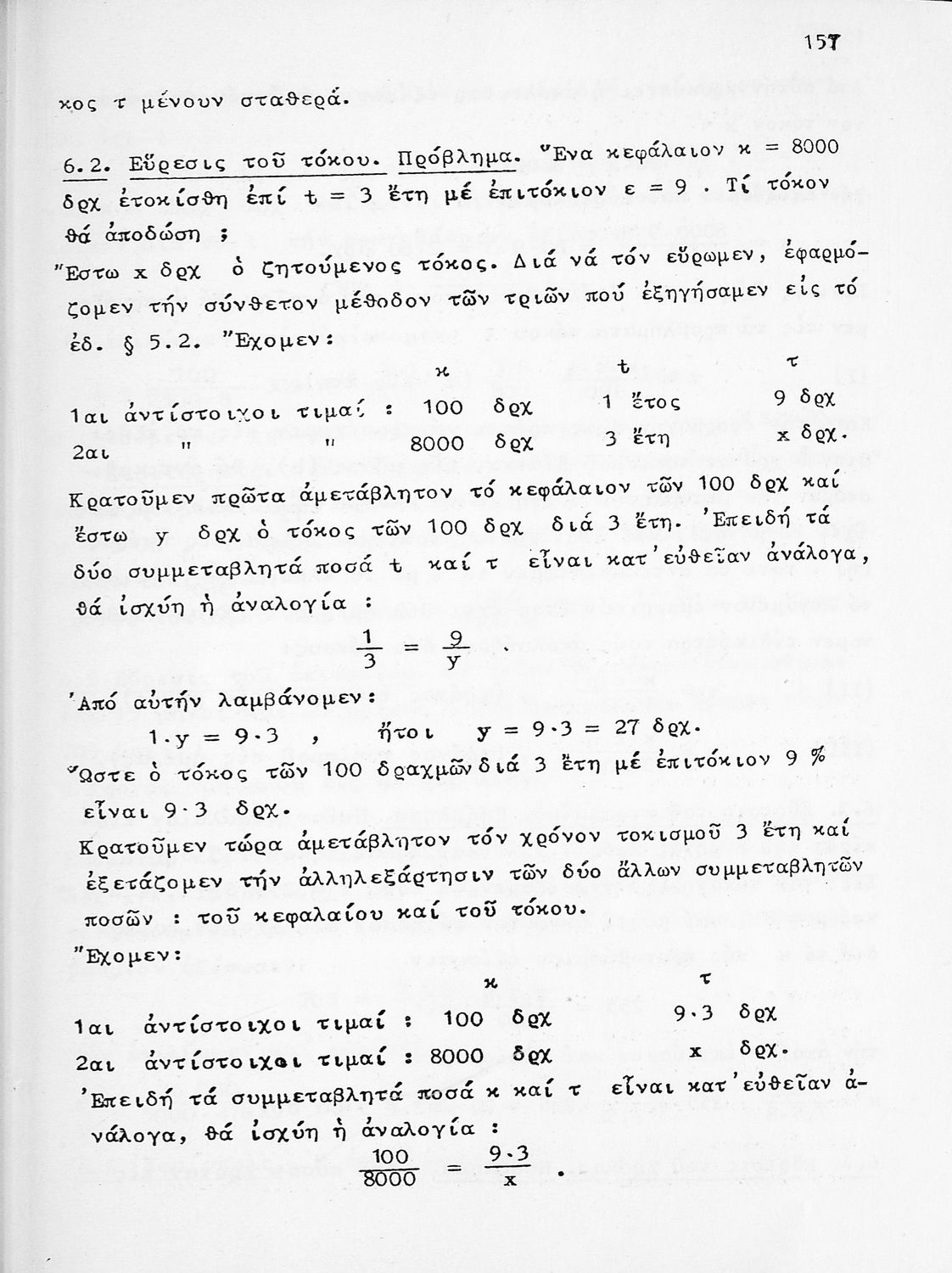 Σχολικό εγχειρίδιο Μαθηματικών Β΄ Γυμνασίου χωρισμένο σε θεωρία και ασκήσεις. Φέρει το σύμβολο της δικτατορίας.