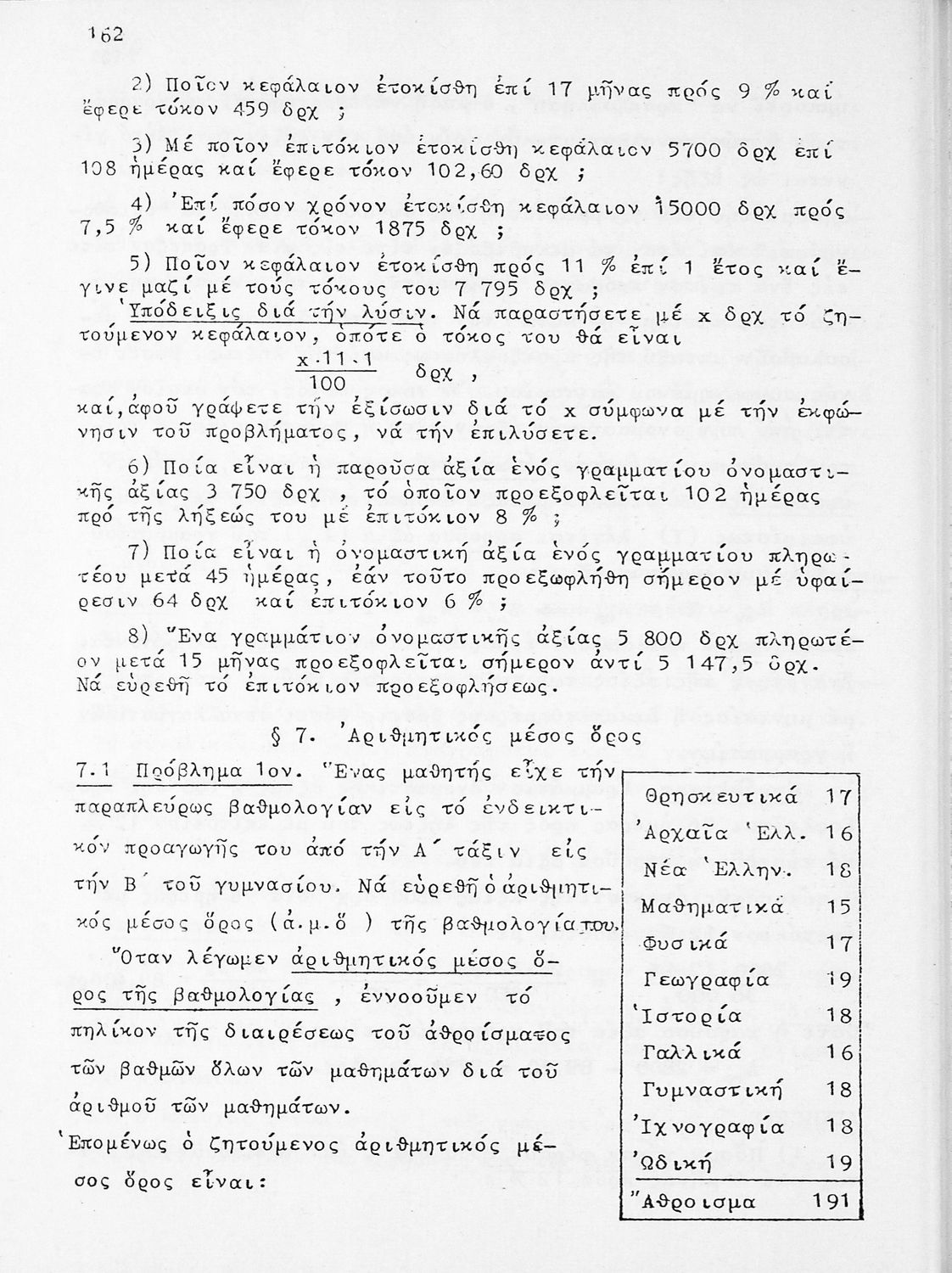 Τάξη:  Α' Ελληνικού Σχολείου / Β' Ελληνικού Σχολείου / Γ' Ελληνικού Σχολείου / Παρθεναγωγείο / Εμπορικές και Πρακτικές Σχολές
