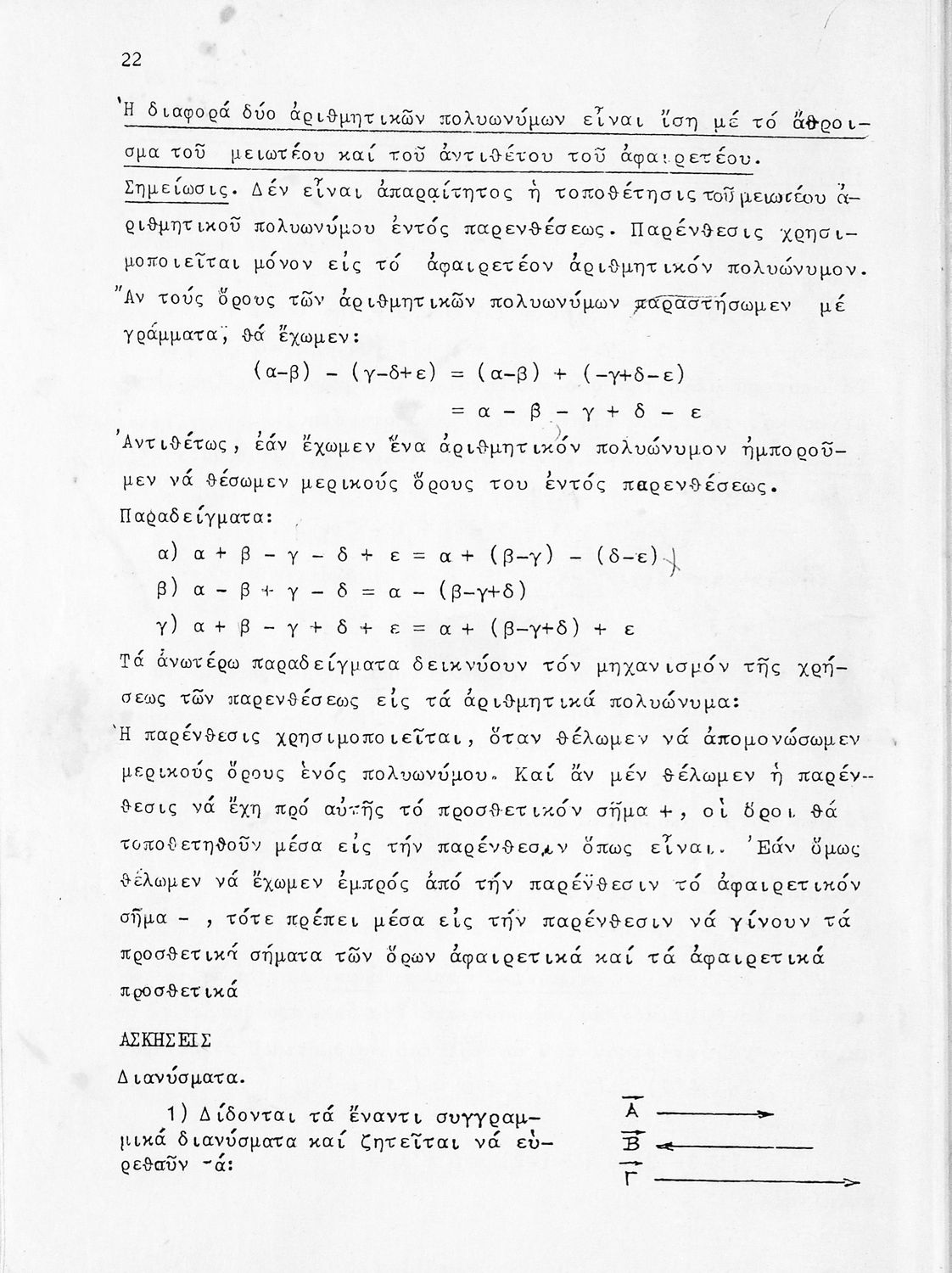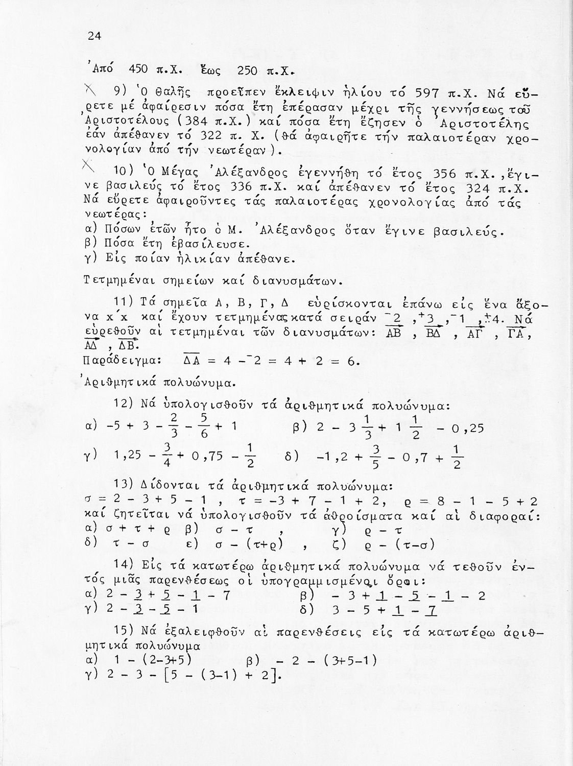 Τάξη:  Α' Γυμνασίου / Β' Γυμνασίου / Γ' Γυμνασίου / Ανωτέρα Παρθεναγωγεία