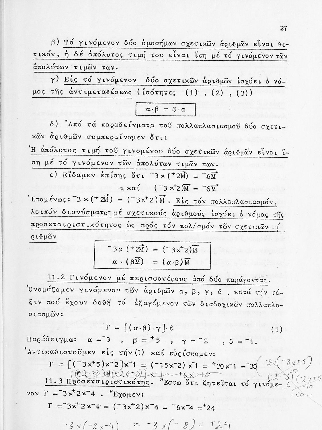 Παρουσίαση περιεχομένου: Σχολικό εγχειρίδιο Μαθηματικών Β΄ Γυμνασίου χωρισμένο σε θεωρία και ασκήσεις. Φέρει το σύμβολο της δικτατορίας.