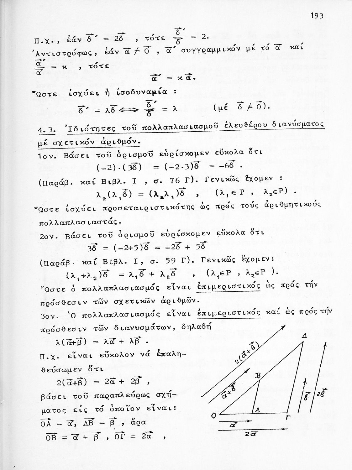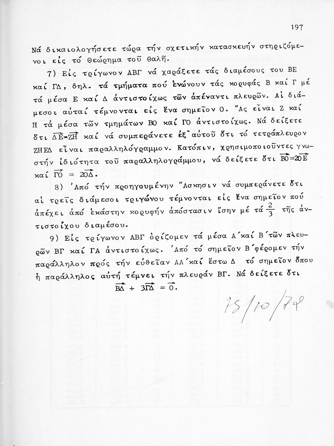 Σχολικό εγχειρίδιο Μαθηματικών Β΄ Γυμνασίου χωρισμένο σε θεωρία και ασκήσεις. Φέρει το σύμβολο της δικτατορίας.