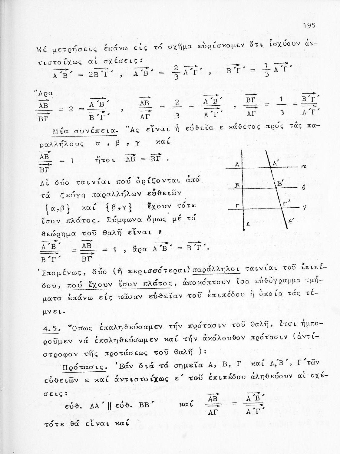 Σχολικό εγχειρίδιο Γεωμετρίας για την Α΄ και Β΄ Γυμνασίου χωρισμένο σε Επιπεδομετρία και Στερεομετρία που περιέχει θεωρία και ασκήσεις.