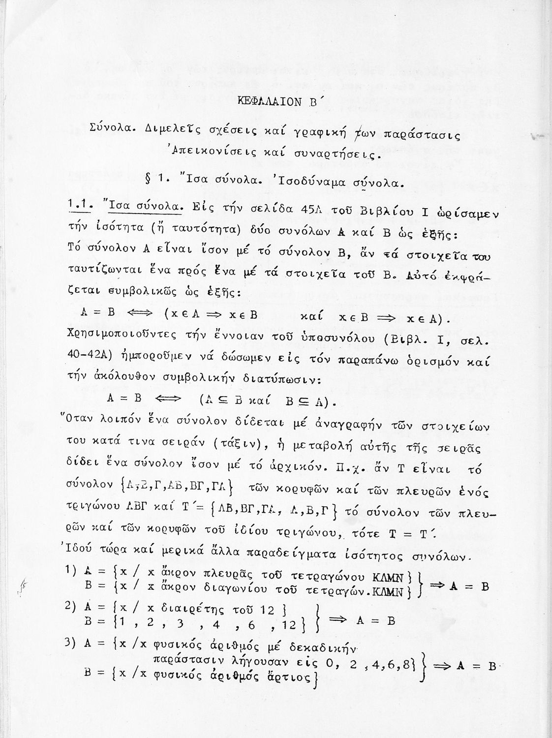 Παρουσίαση περιεχομένου: Σχολικό εγχειρίδιο Μαθηματικών Β΄ Γυμνασίου χωρισμένο σε θεωρία και ασκήσεις. Φέρει το σύμβολο της δικτατορίας.