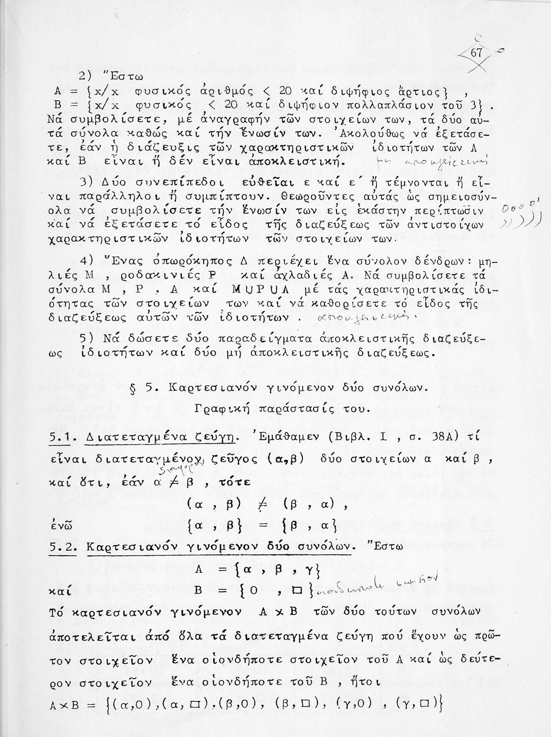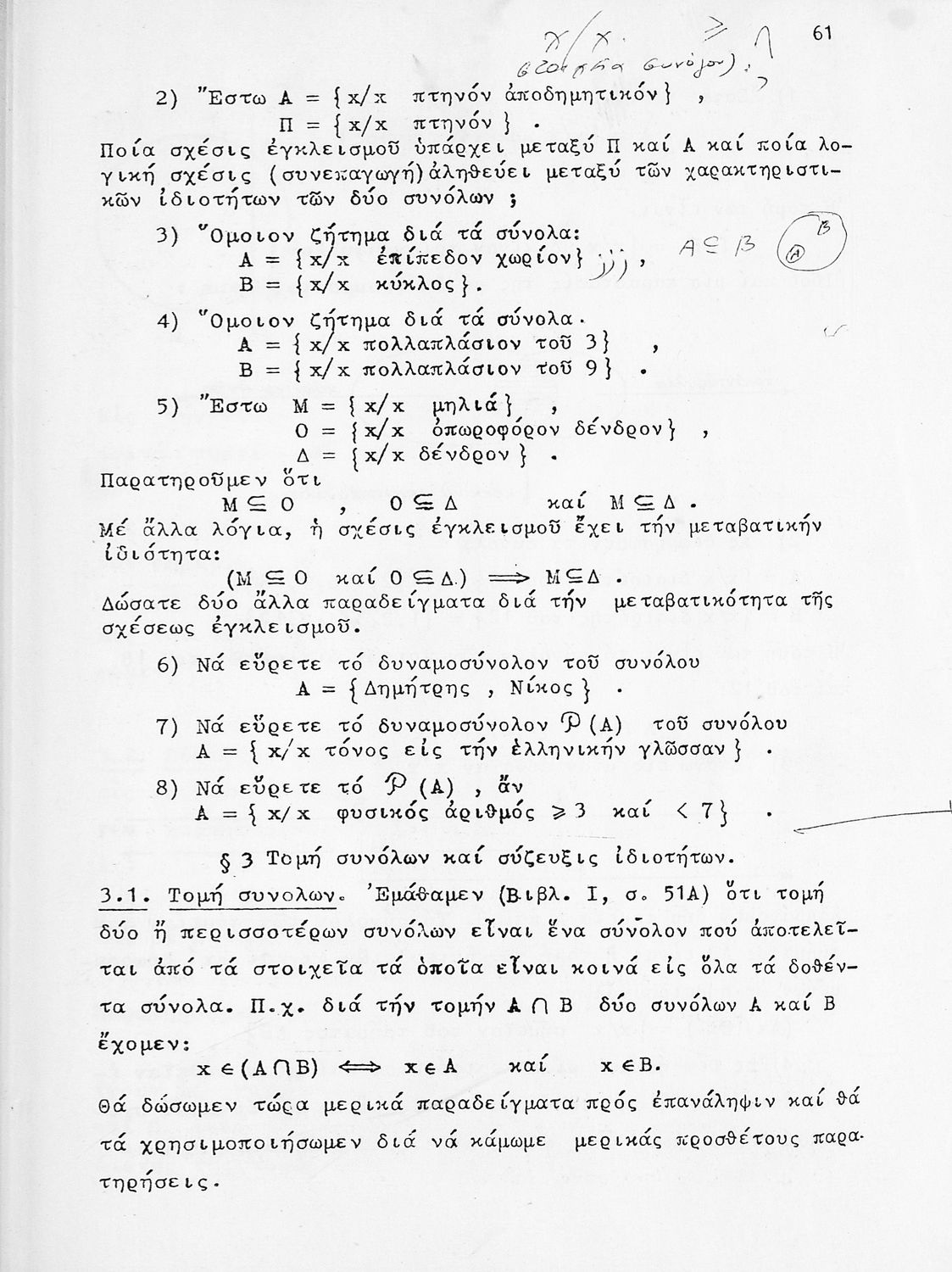 Τάξη:  Α' Γυμνασίου / Β' Γυμνασίου / Γ' Γυμνασίου / Ανωτέρα Παρθεναγωγεία