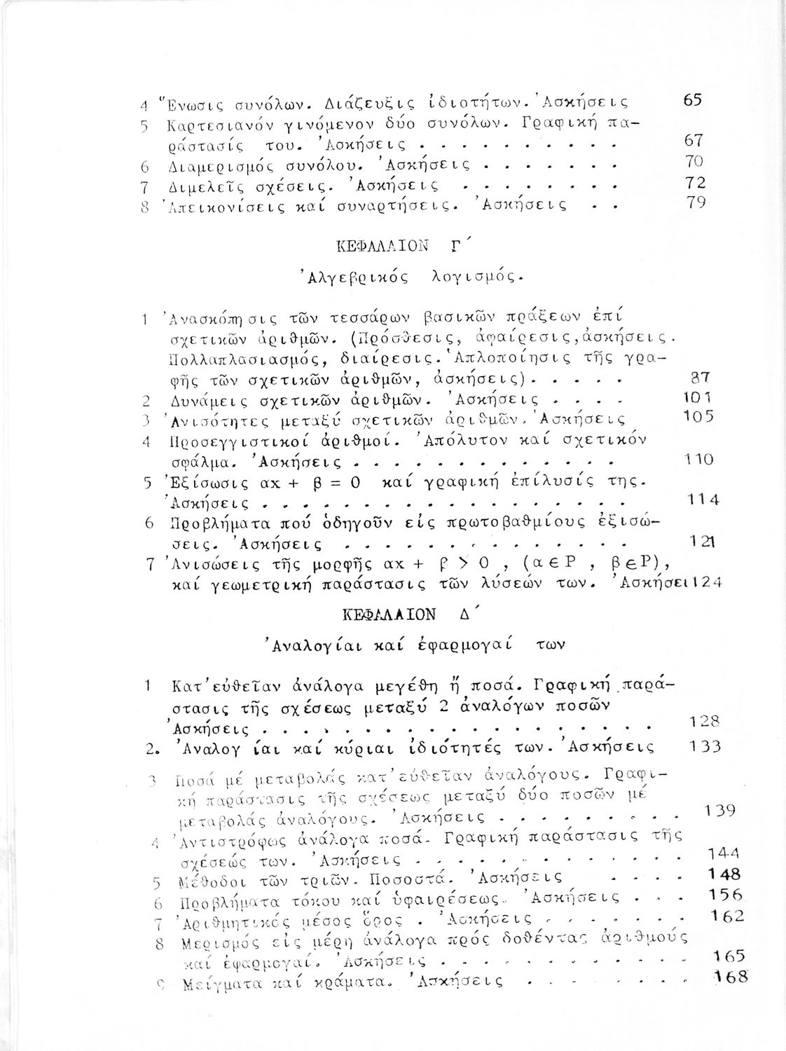 Σχολικό εγχειρίδιο Άλγεβρας για τις Δ΄ και Ε΄ Εξαταξίου Γυμνασίου χωρισμένο σε θεωρία και ασκήσεις που εστιάζει στις αλγεβρικές πράξεις και παραστάσεις, στις εξισώσεις και στις ρίζες.