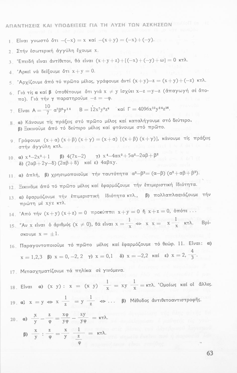 Σχολικό εγχειρίδιο Άλγεβρας Α΄ Λυκείου που είναι χωρισμένο σε αξιώματα, πορίσματα, παραδείγματα και ασκήσεις και εστιάζει στις συναρτήσεις, τις εξισώσεις και τις αριθμητικές πράξεις. Περιλαμβάνει στοιχεία Μαθηματικής Λογικής και αποδείξεων και παράρτημα με τις λύσεις των ασκήσεων.