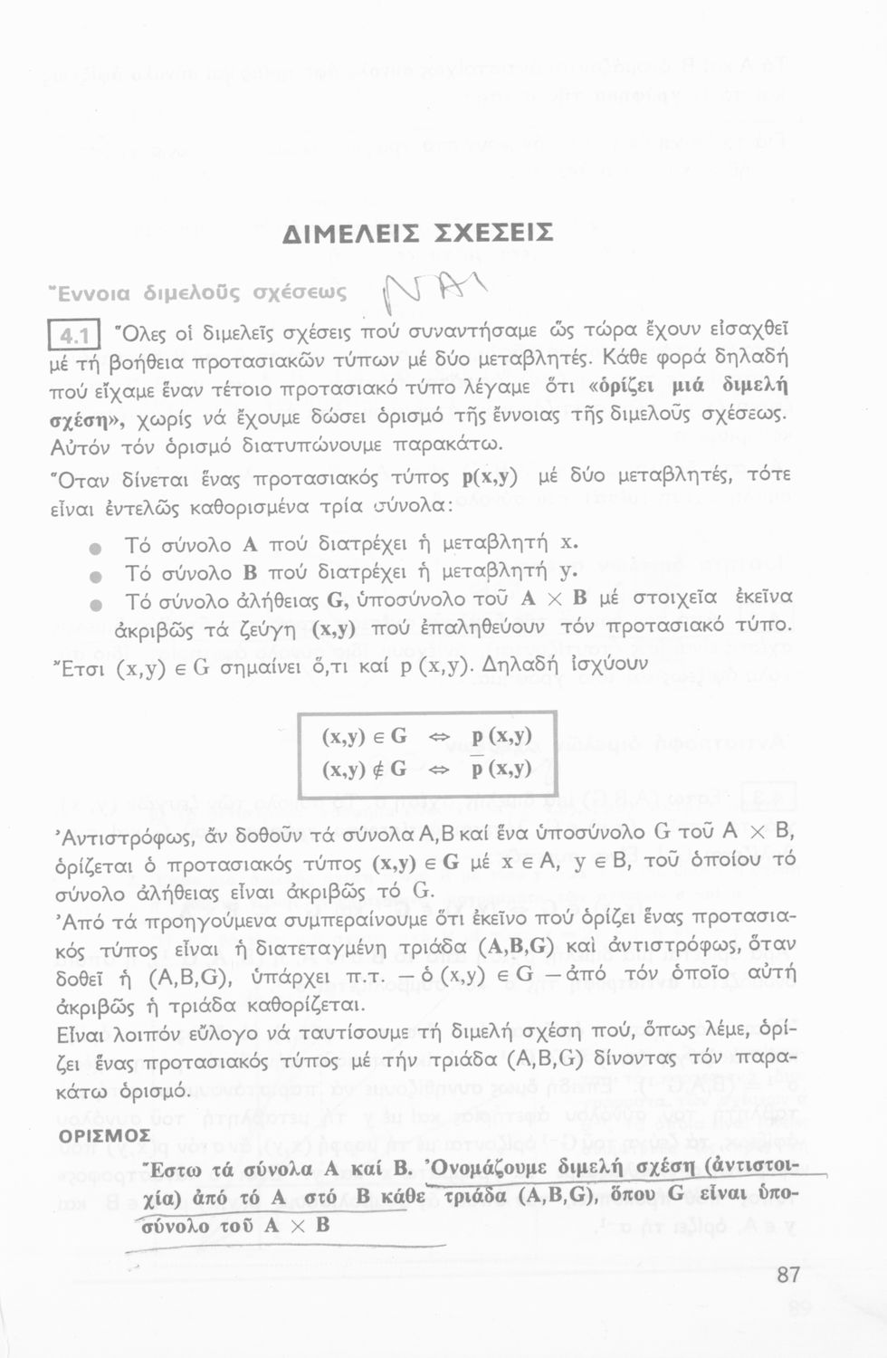 LDR 01458 2200217 4500 035 ## _a01-40671 040 ## _aΙνστιτούτο Εκπαιδευτικής Πολιτικής 041 ## _ael 100 ## _aΝ. Βαρουχάκης _aΛ. Αδαμόπουλος _aΝ. Αλεξανδρής _aΔ. Α. Παπακωνσταντίνου _aΑ. Παπαμικρούλης 110 ## _a40671 245 0# _aΜαθηματικά Α΄ Λυκείου άλγεβρα, τεύχος Α΄ 250 ## _a1η Έκδοση 260 ## _aΑθήνα _bΟργανισμός Εκδόσεως Διδακτικών Βιβλίων _c1979 300 ## _a143 _c23 520 ## _aΣχολικό εγχειρίδιο Άλγεβρας Α΄ Λυκείου που είναι χωρισμένο σε αξιώματα, πορίσματα, παραδείγματα και ασκήσεις και εστιάζει στις συναρτήσεις, τις εξισώσεις και τις αριθμητικές πράξεις. Περιλαμβάνει στοιχεία Μαθηματικής Λογικής και αποδείξεων και παράρτημα με τις λύσεις των ασκήσεων. 521 ## _aΑ' Λυκείου 522 ## _aΕλλάδα 546 ## _aΔημοτική 563 ## _aΜαλακό Εξώφυλλο 583 ## _a3278/19-9-1979 _c1979 650 #4 _aΕξισώσεις _aΜαθηματική λογική _aΠραγματικοί αριθμοί _aΣυναρτήσεις