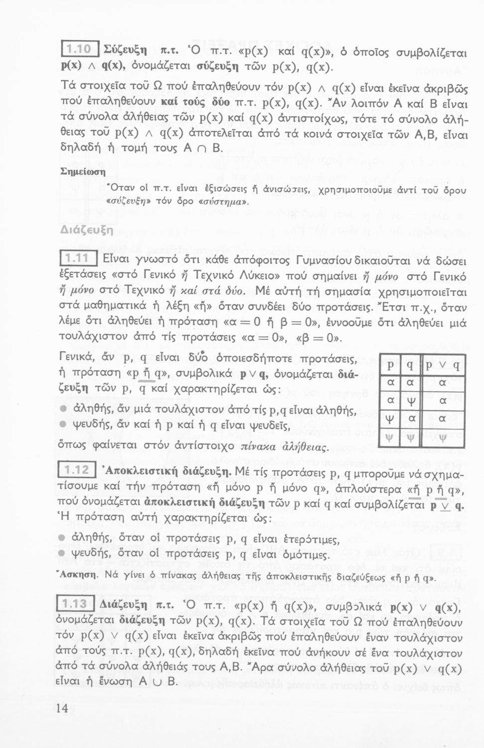 Μαθηματικά Α΄ Λυκείου άλγεβρα, τεύχος Α΄