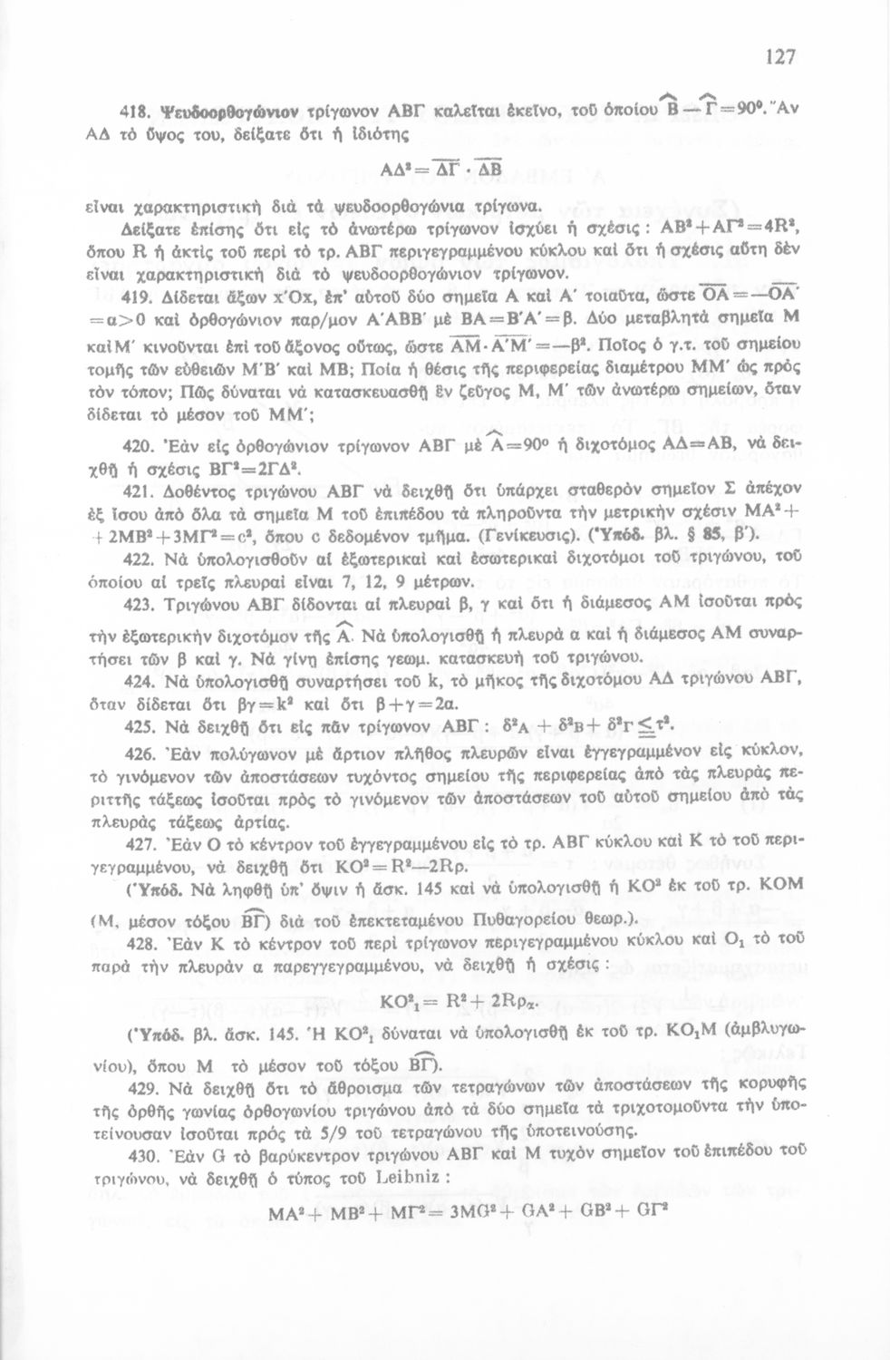 Ευκλείδειος γεωμετρία Α΄ Λυκείου θετικής κατευθύνσεως