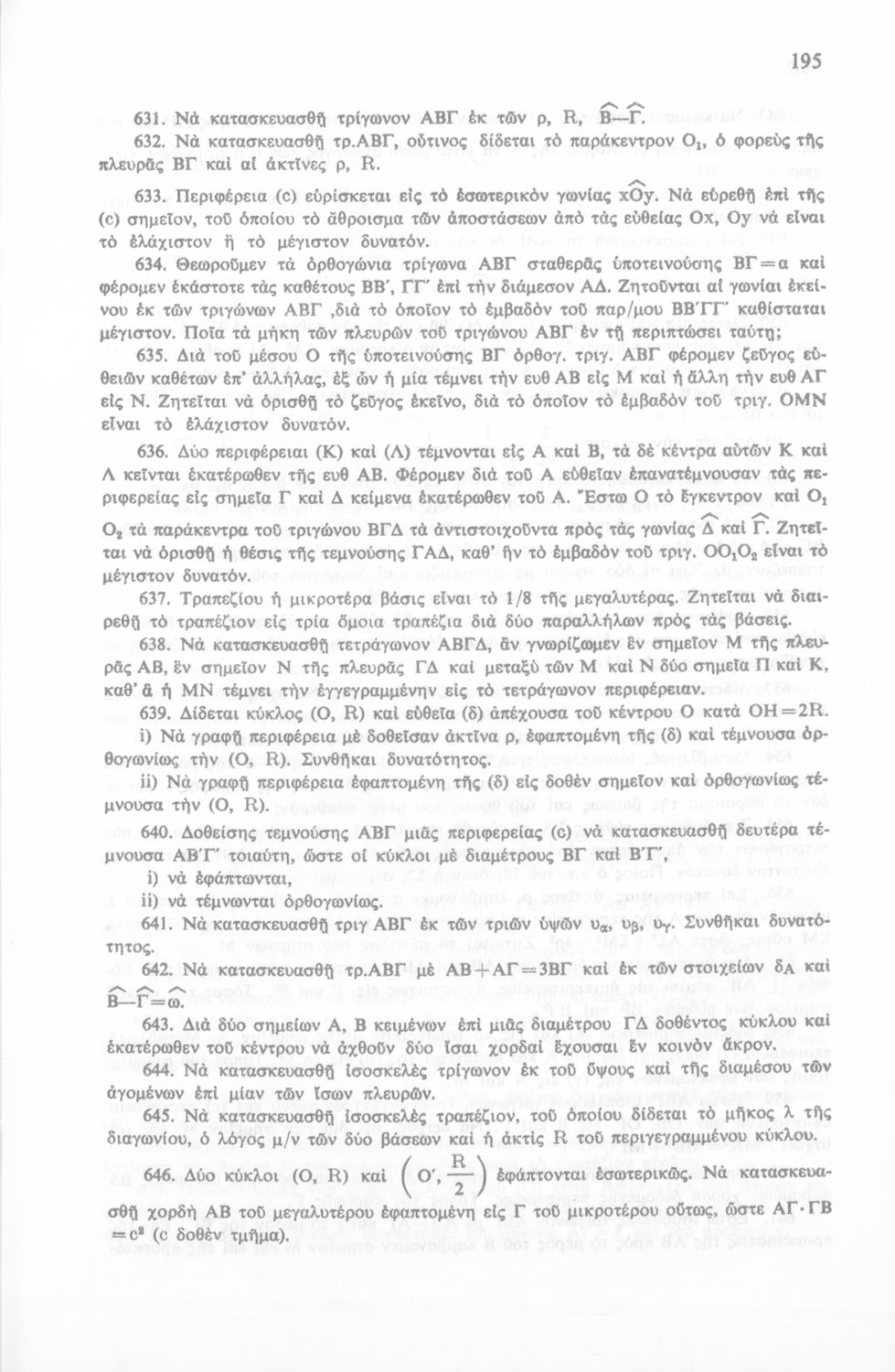 LDR 01115 2200217 4500 035 ## _a01-40672 040 ## _aΙνστιτούτο Εκπαιδευτικής Πολιτικής 041 ## _ael 100 ## _aΣπ. Γ. Κανέλλος 110 ## _a40672 245 0# _aΕυκλείδειος γεωμετρία Α΄ Λυκείου θετικής κατευθύνσεως 250 ## _a1η Έκδοση 260 ## _aΑθήνα _bΟργανισμός Εκδόσεως Διδακτικών Βιβλίων _c1976 300 ## _a199 _bΣκίτσα (ασπρόμαυρα) _c23 520 ## _aΣχολικό εγχειρίδιο Γεωμετρίας για την Α΄ Λυκείου που περιλαμβάνει αξιώματα, θεωρήματα και κατασκευές και εστιάζει στην Γεωμετρία Επιπέδου. 521 ## _aΑ' Λυκείου 522 ## _aΕλλάδα 546 ## _aΑπλή καθαρεύουσα 563 ## _aΜαλακό Εξώφυλλο 583 ## _a2655/30-3-1976 _c1976 650 #4 _aΑξίωμα Αρχιμήδη _aΘεώρημα Euler _aΘεώρημα Ευκλείδη