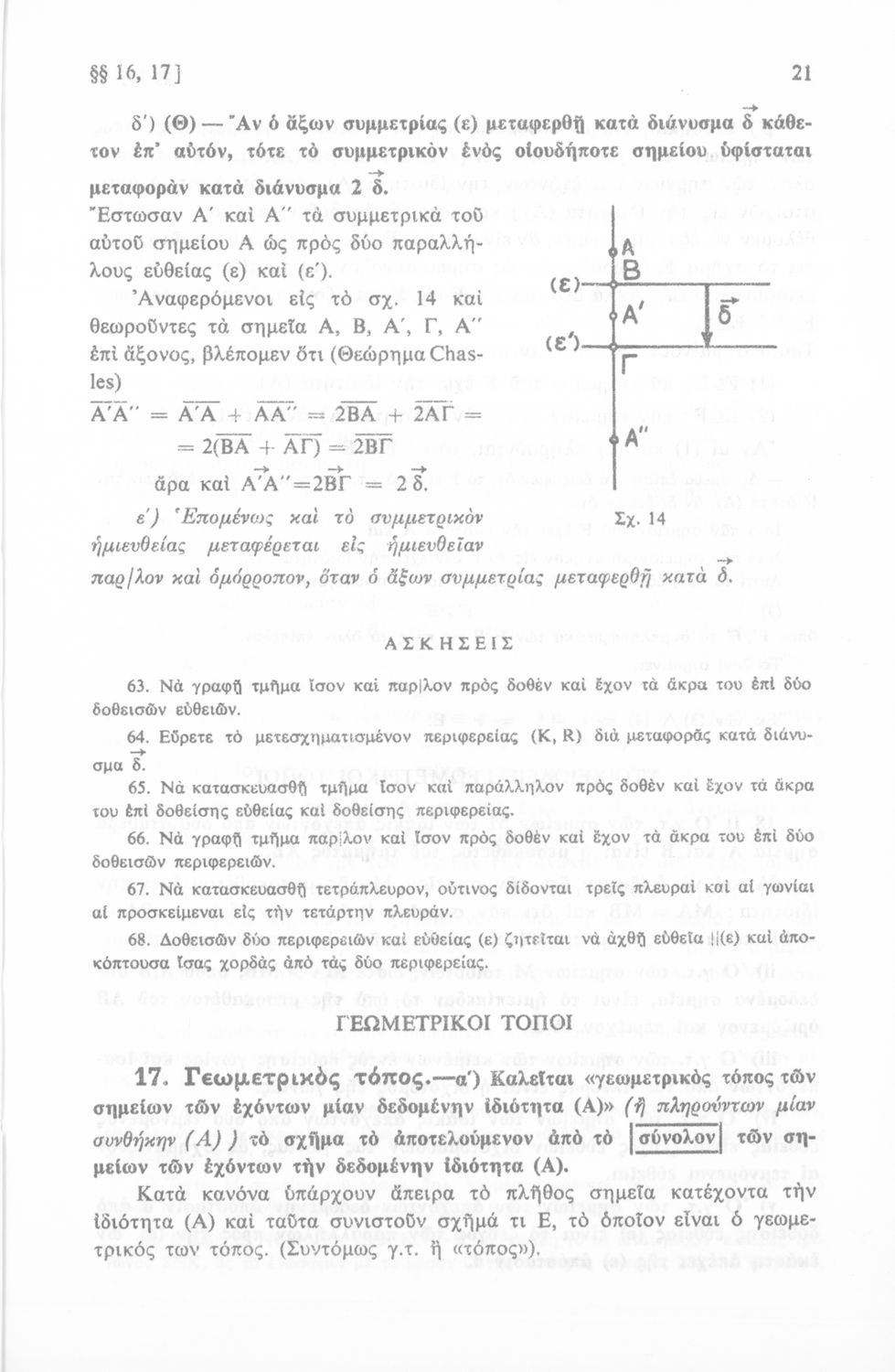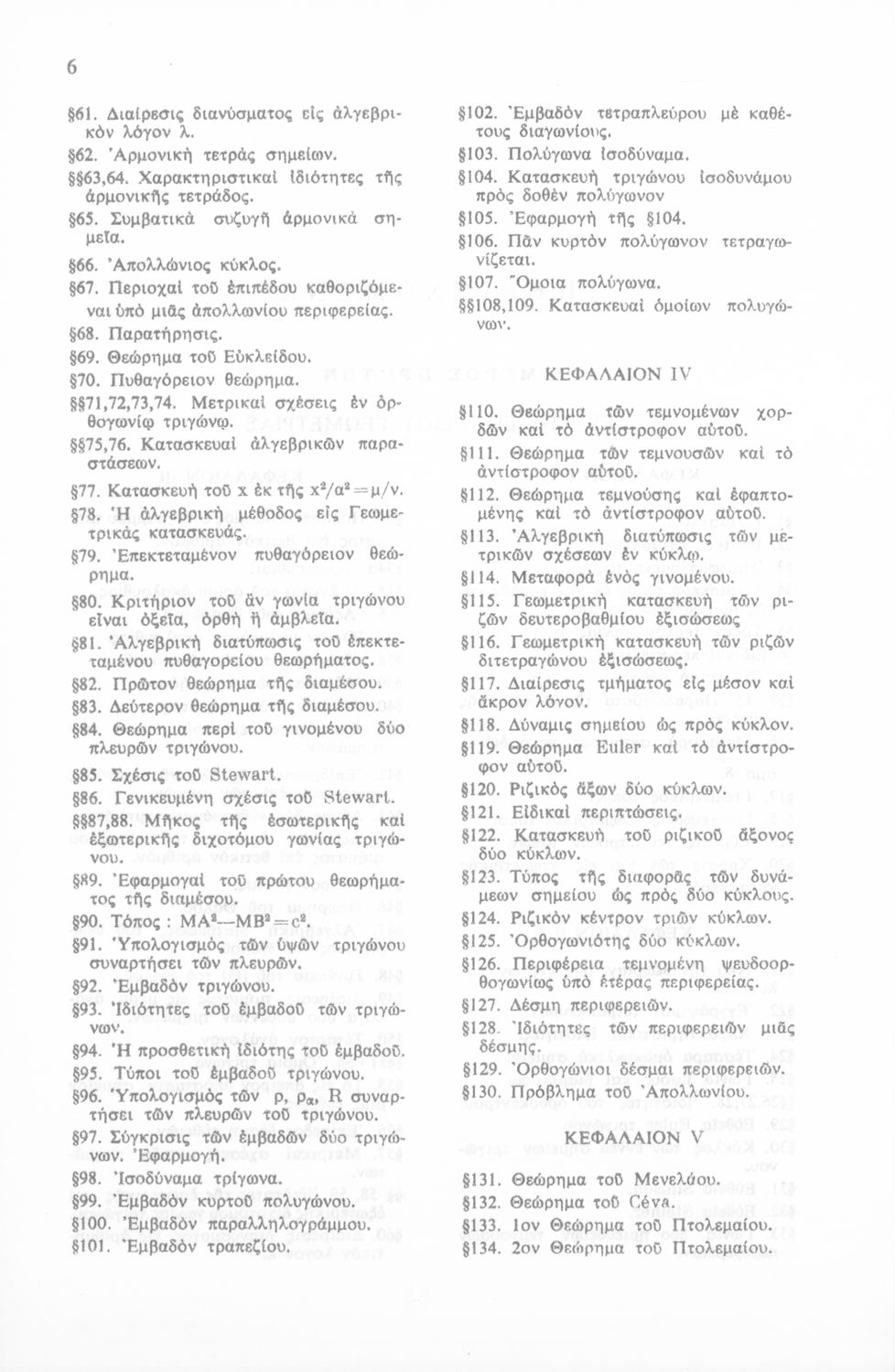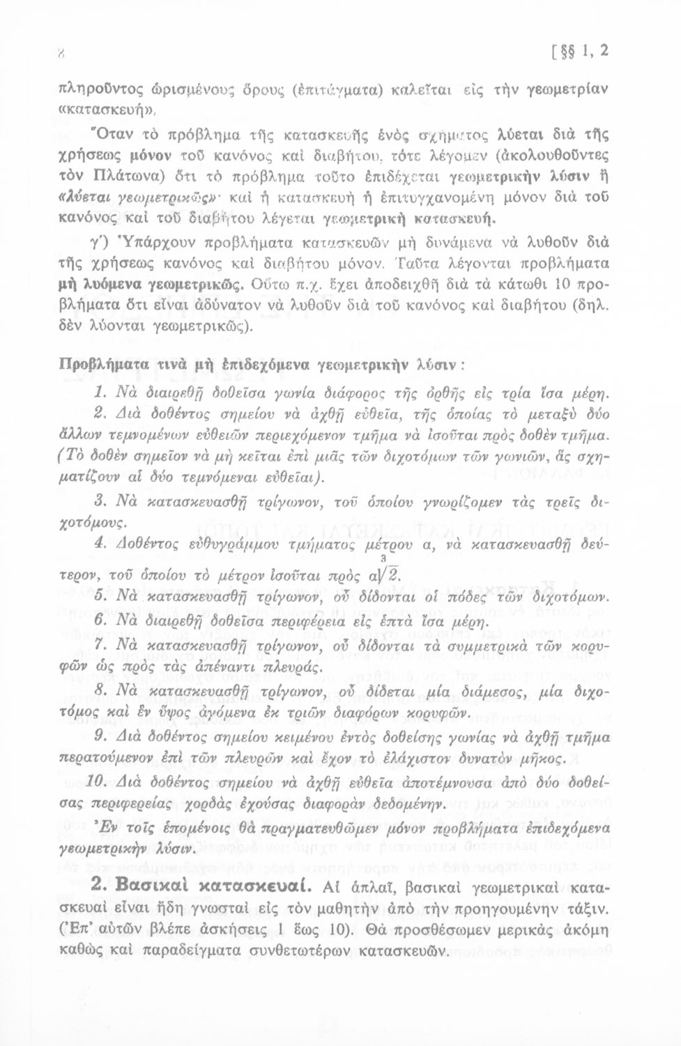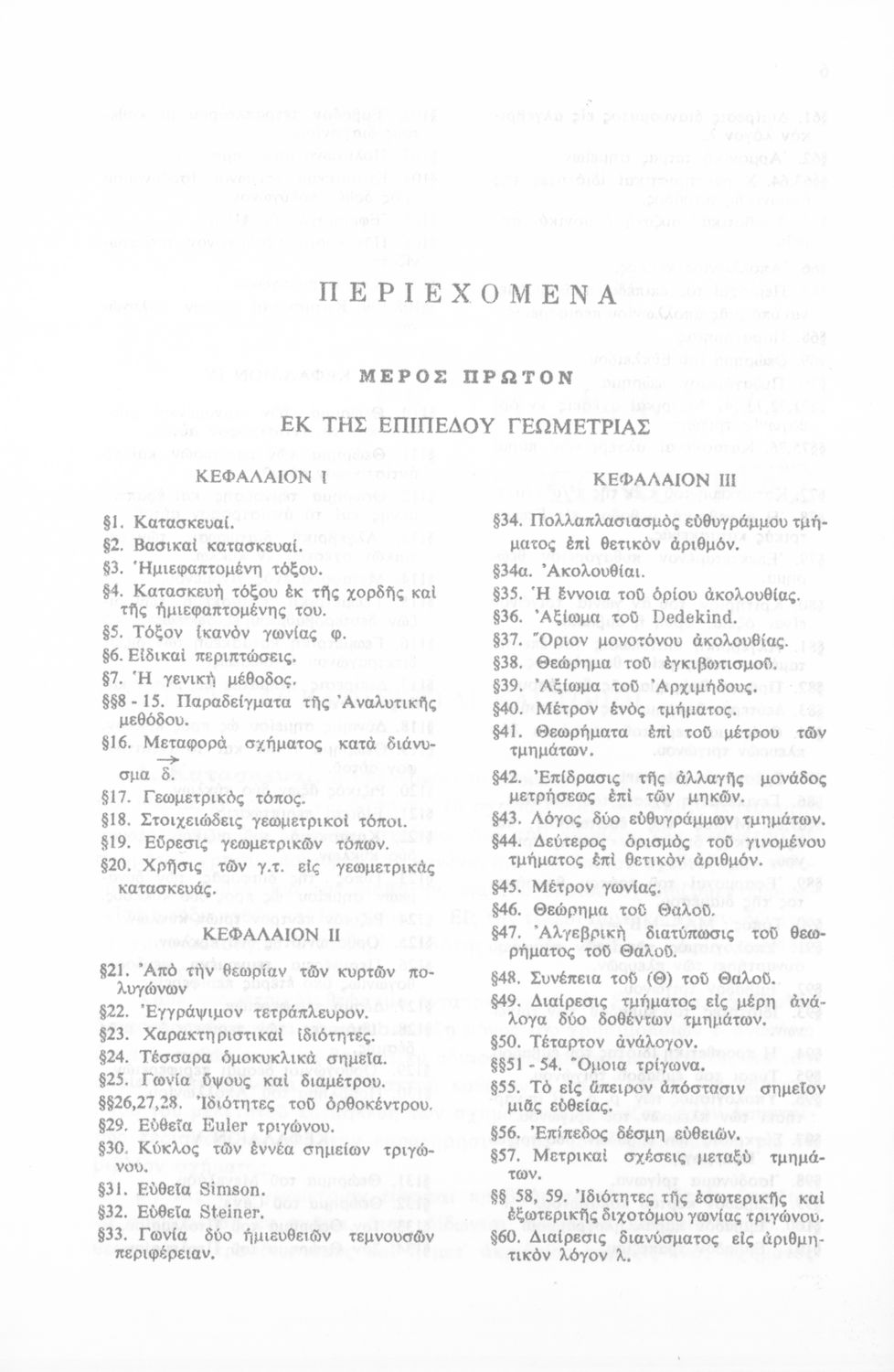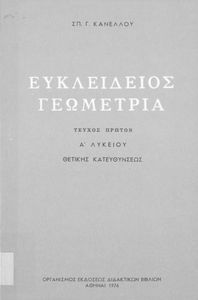 Βαθμίδα εκπαίδευσης: Δευτεροβάθμια Τάξη: Α' Λυκείου Μάθημα: Μαθηματικά Γλώσσα: Απλή καθαρεύουσα Παρουσίαση περιεχομένου: Σχολικό εγχειρίδιο Γεωμετρίας για την Α΄ Λυκείου που περιλαμβάνει αξιώματα, θεωρήματα και κατασκευές και εστιάζει στην Γεωμετρία Επιπέδου. |