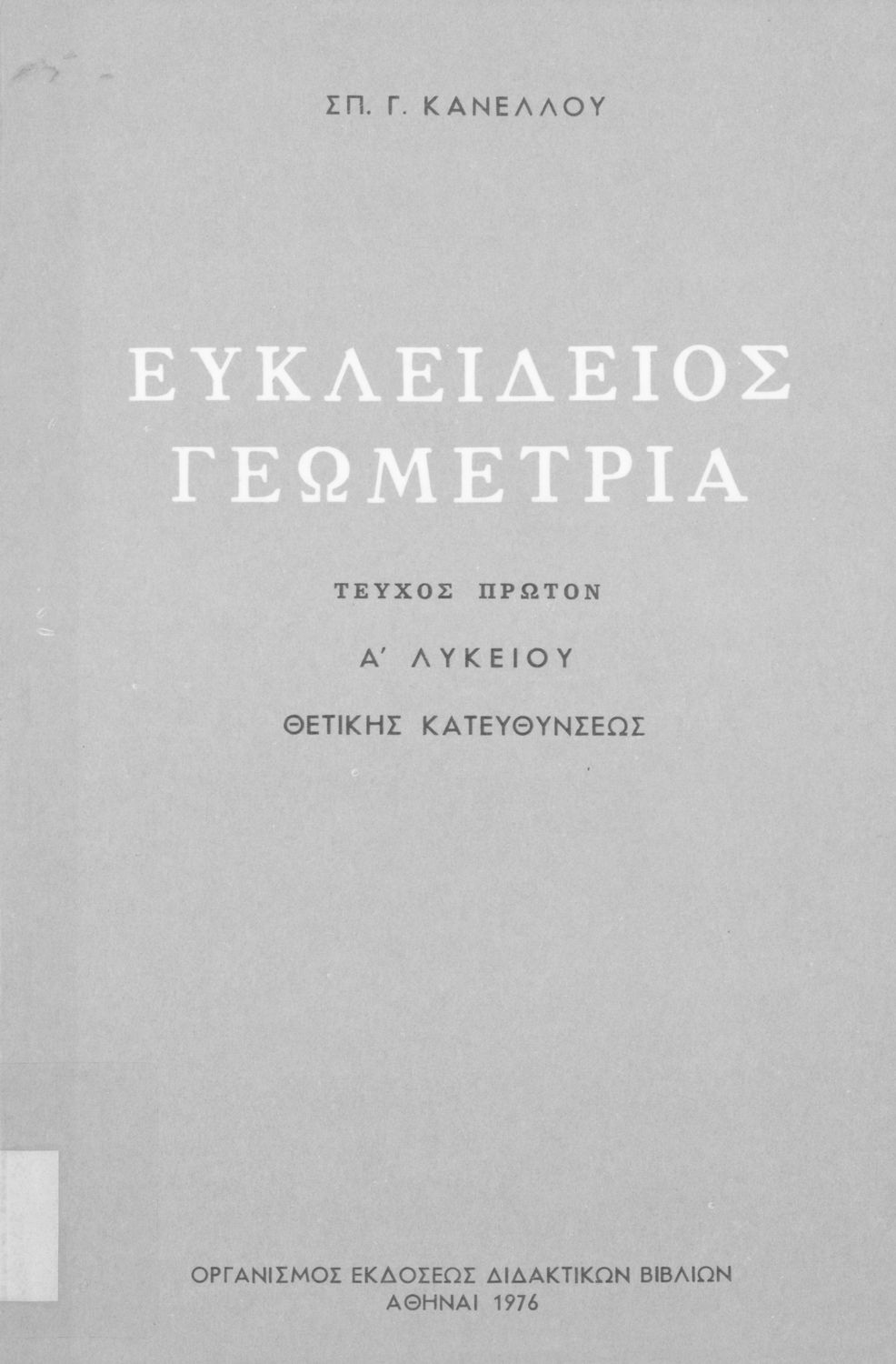 Σχολικό εγχειρίδιο Γεωμετρίας για την Α΄ Λυκείου που περιλαμβάνει αξιώματα, θεωρήματα και κατασκευές και εστιάζει στην Γεωμετρία Επιπέδου.