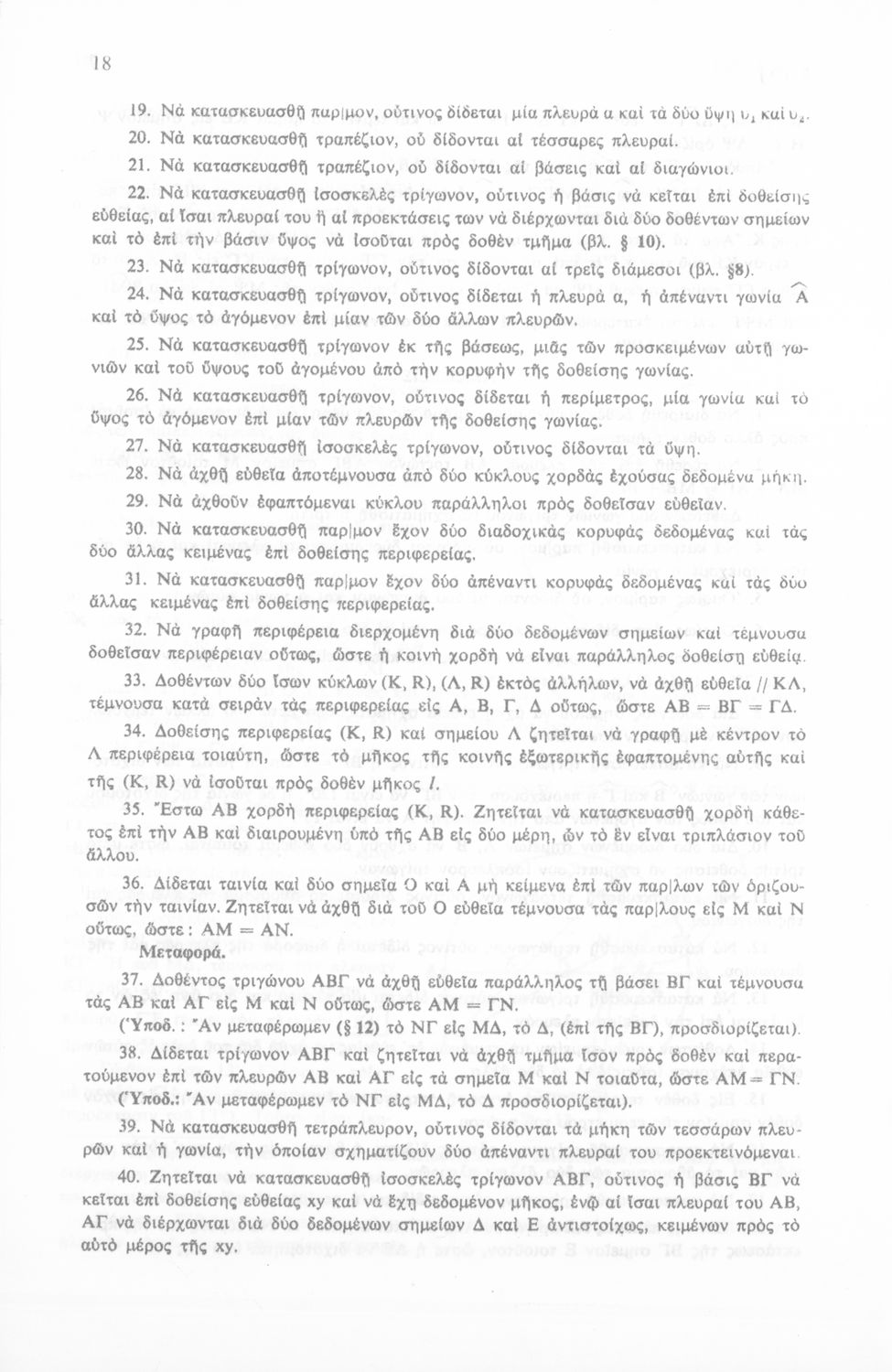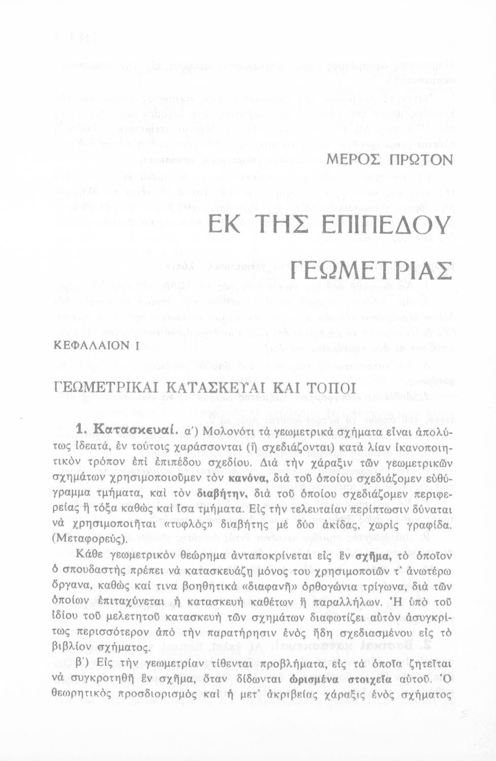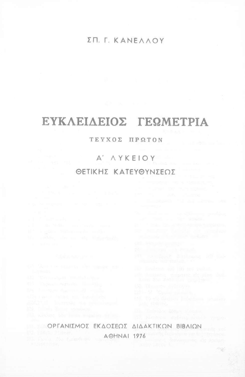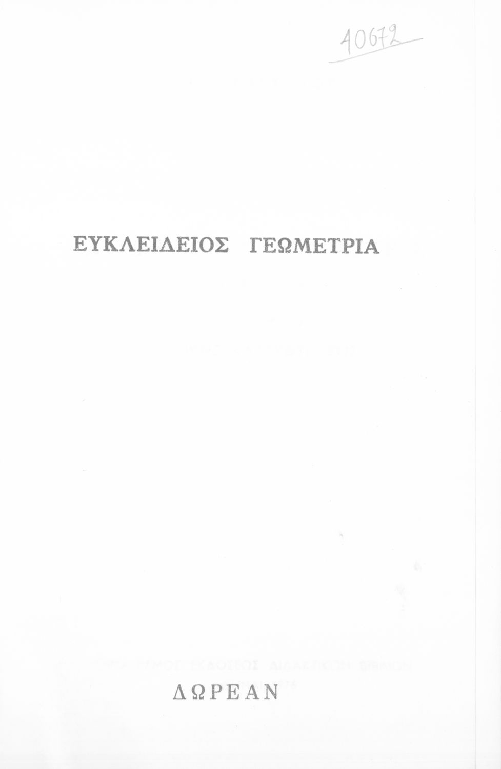 LDR 01115 2200217 4500 035 ## _a01-40672 040 ## _aΙνστιτούτο Εκπαιδευτικής Πολιτικής 041 ## _ael 100 ## _aΣπ. Γ. Κανέλλος 110 ## _a40672 245 0# _aΕυκλείδειος γεωμετρία Α΄ Λυκείου θετικής κατευθύνσεως 250 ## _a1η Έκδοση 260 ## _aΑθήνα _bΟργανισμός Εκδόσεως Διδακτικών Βιβλίων _c1976 300 ## _a199 _bΣκίτσα (ασπρόμαυρα) _c23 520 ## _aΣχολικό εγχειρίδιο Γεωμετρίας για την Α΄ Λυκείου που περιλαμβάνει αξιώματα, θεωρήματα και κατασκευές και εστιάζει στην Γεωμετρία Επιπέδου. 521 ## _aΑ' Λυκείου 522 ## _aΕλλάδα 546 ## _aΑπλή καθαρεύουσα 563 ## _aΜαλακό Εξώφυλλο 583 ## _a2655/30-3-1976 _c1976 650 #4 _aΑξίωμα Αρχιμήδη _aΘεώρημα Euler _aΘεώρημα Ευκλείδη