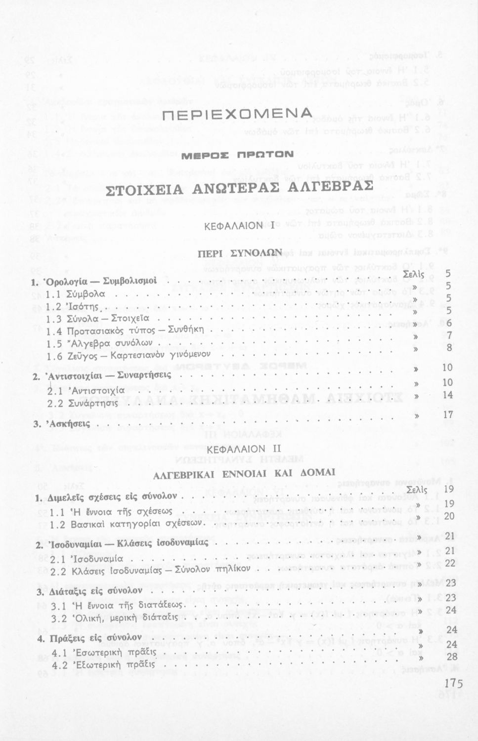 Σχολικό εγχειρίδιο Μαθηματικών ΣΤ΄ Γυμνασίου που είναι χωρισμένο σε θεωρήματα, παραδείγματα και ασκήσεις και περιλαμβάνει στοιχεία Ανώτερης Άλγεβρας και Μαθηματικής Ανάλυσης.