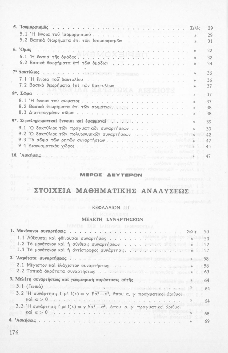 Σχολικό εγχειρίδιο Μαθηματικών Γυμνασίου που είναι χωρισμένο σε θεωρήματα, παραδείγματα και ασκήσεις και περιλαμβάνει στοιχεία Ανώτερης Άλγεβρας και Μαθηματικής Ανάλυσης.