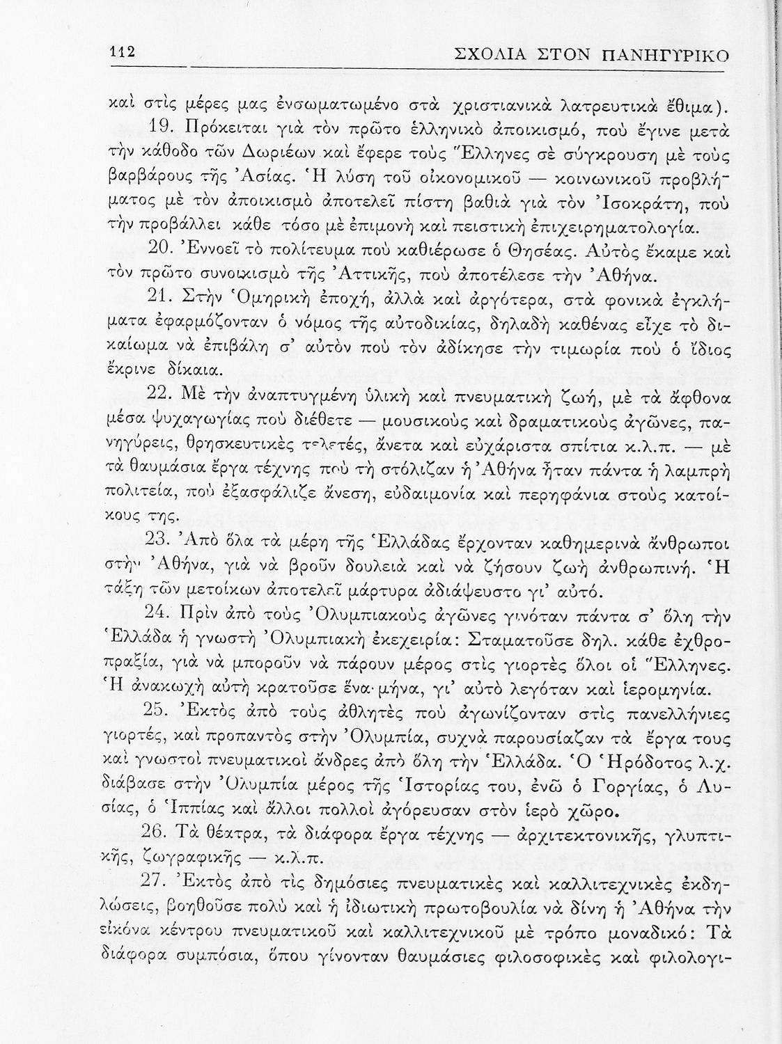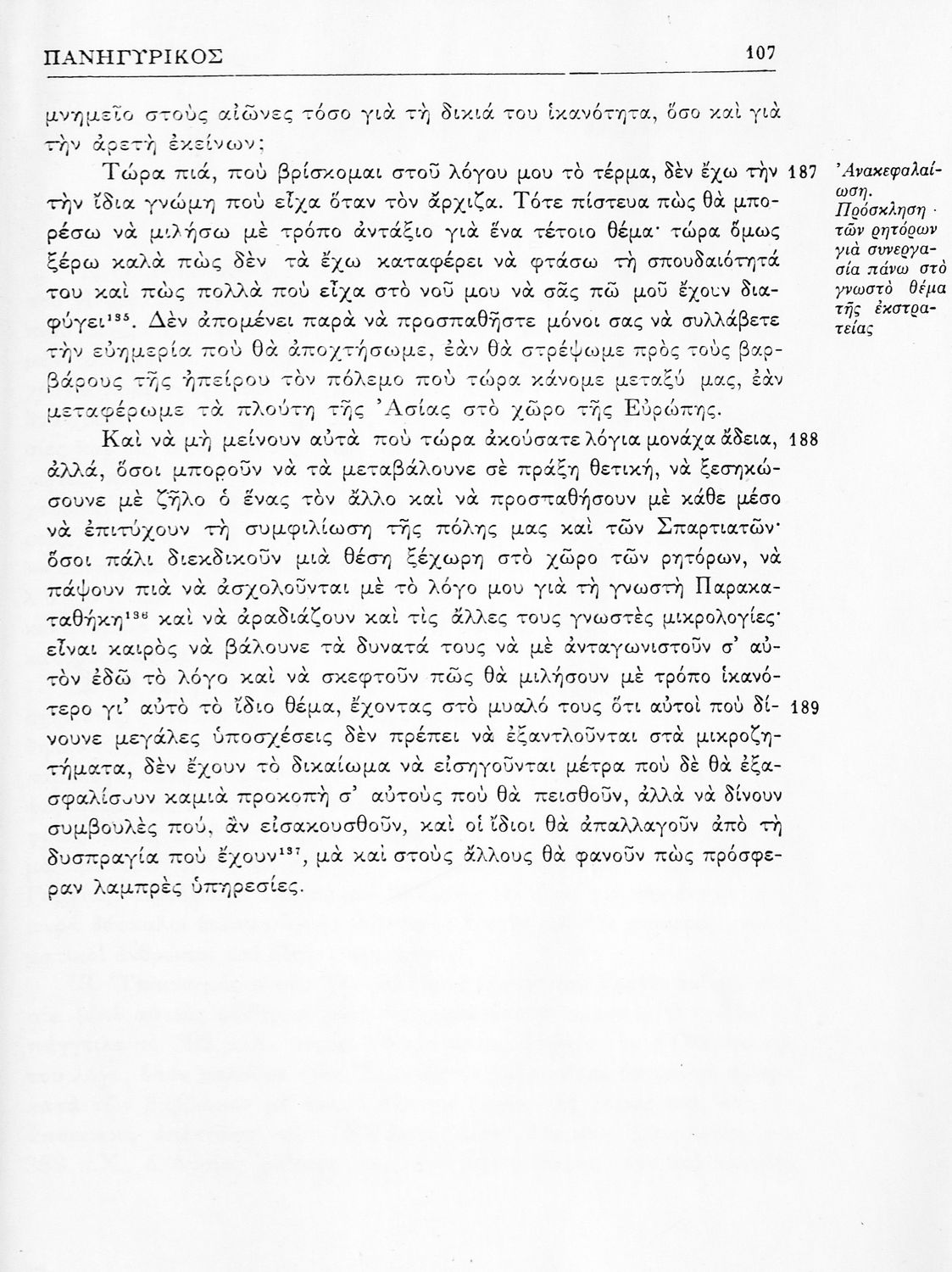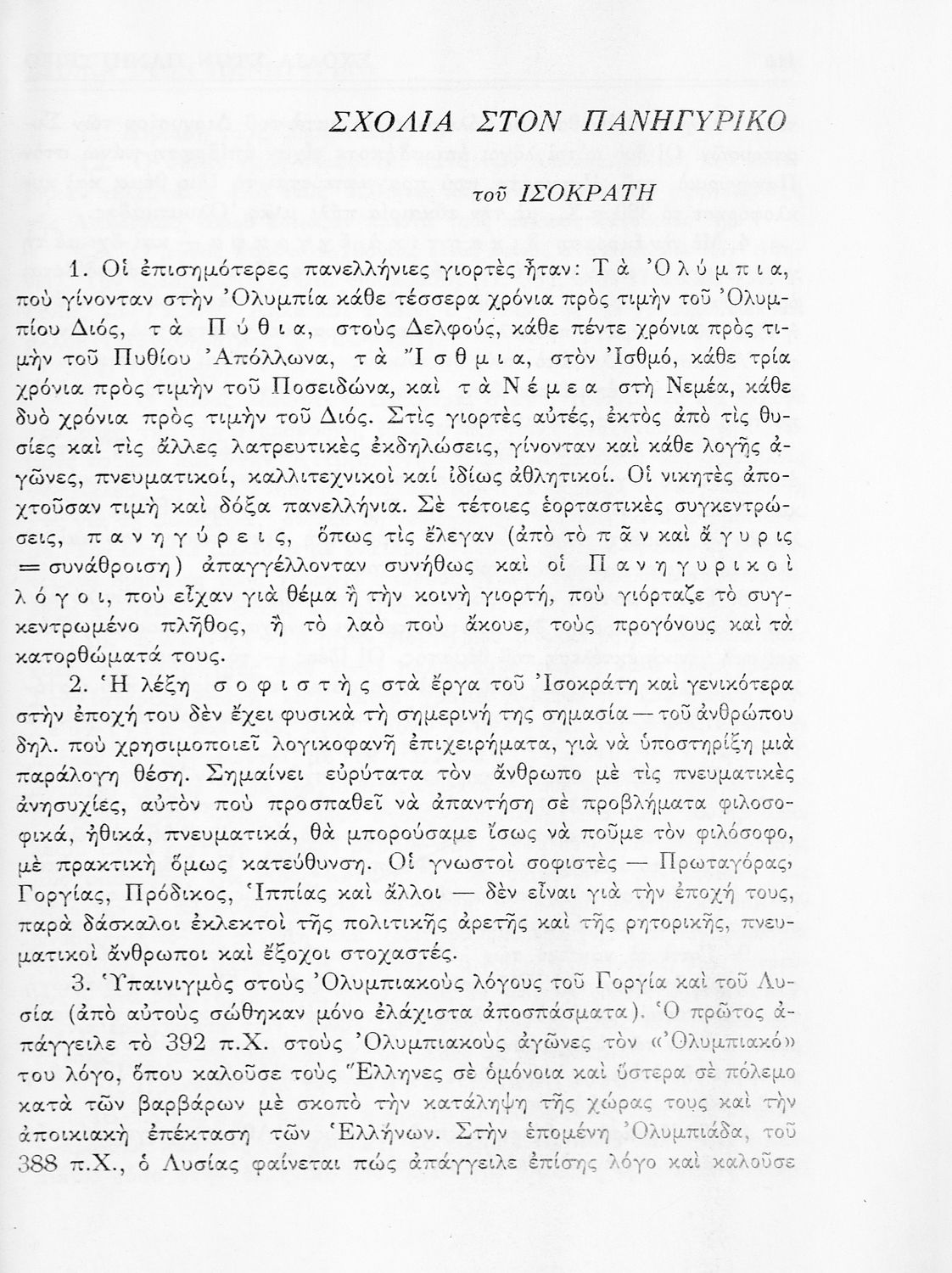 Σχολικό εγχειρίδιο Αρχαίων Ελληνικών Β΄ Γυμνασίου που περιλαμβάνει εισαγωγή στη ζωή και το έργο του Ισοκράτη, τον Πανηγυρικό, μετάφραση και ερμηνευτικές σημειώσεις.