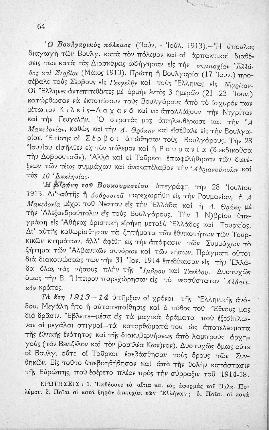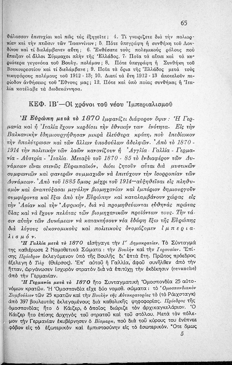 Μαθητικό βοήθημα της ΣΤ΄ Γυμνασίου για το μάθημα της Ιστορίας. Επίσης, απευθυνόταν σε όσους ήθελαν να προετοιμαστούν για ανώτερες σπουδές. Καλύπτει την Ελληνική και Ευρωπαϊκή Ιστορία. Παράλληλα περιέχει κείμενα, τα οποία αναφέρονται στην πολιτική αγωγή.