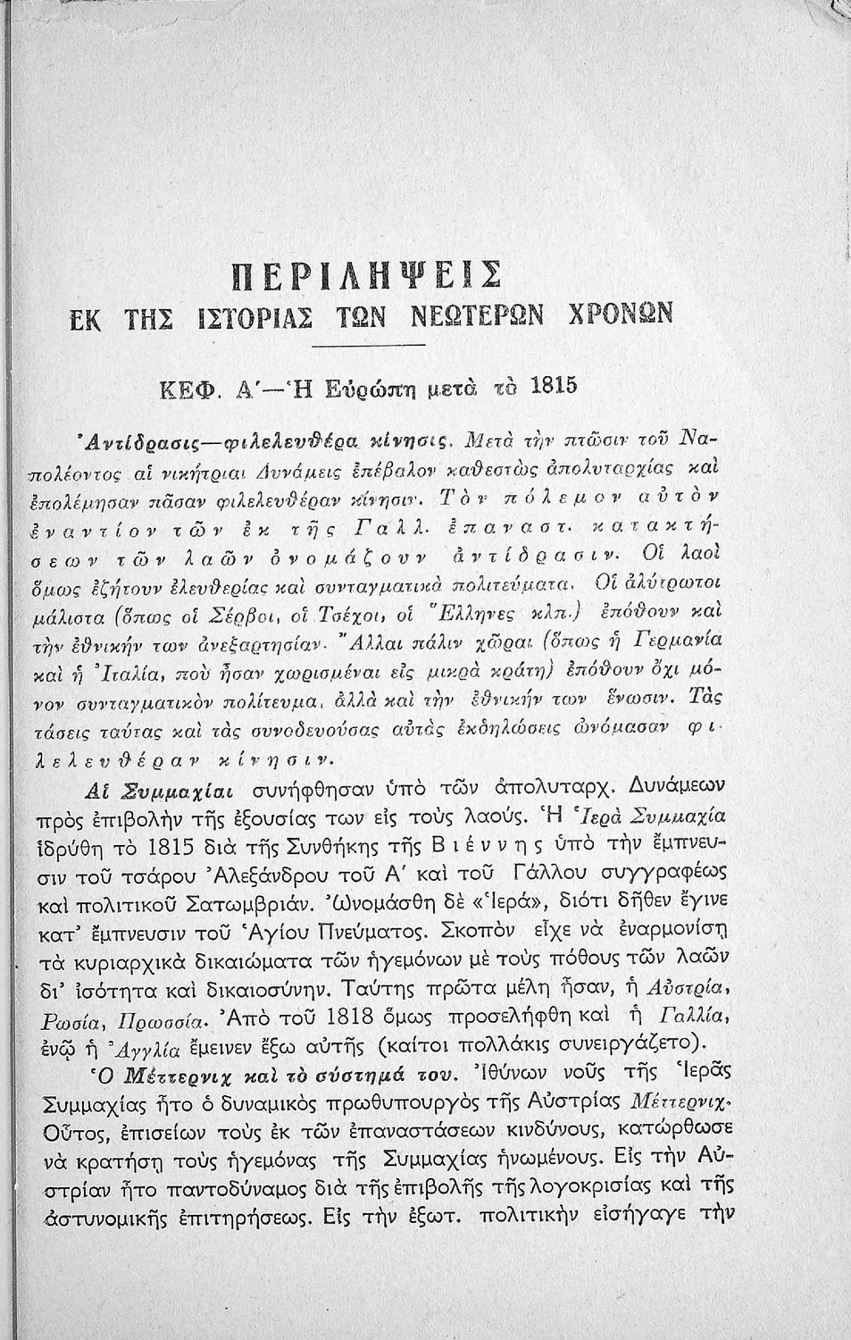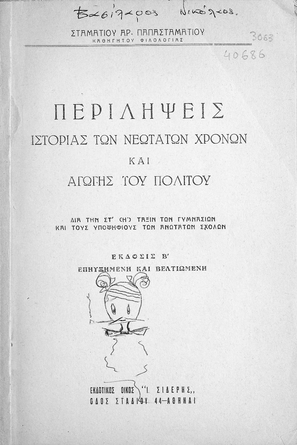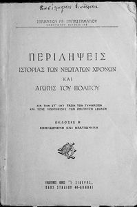 Περιλήψεις της Ιστορίας. Ιστορία των Νεωτάτων Χρόνων και Αγωγής του Πολίτου. Δια την ΣΤ΄ Τάξιν των Γυμνασίων και τους Υποψήφιους των Ανωτάτων Σχολών.
