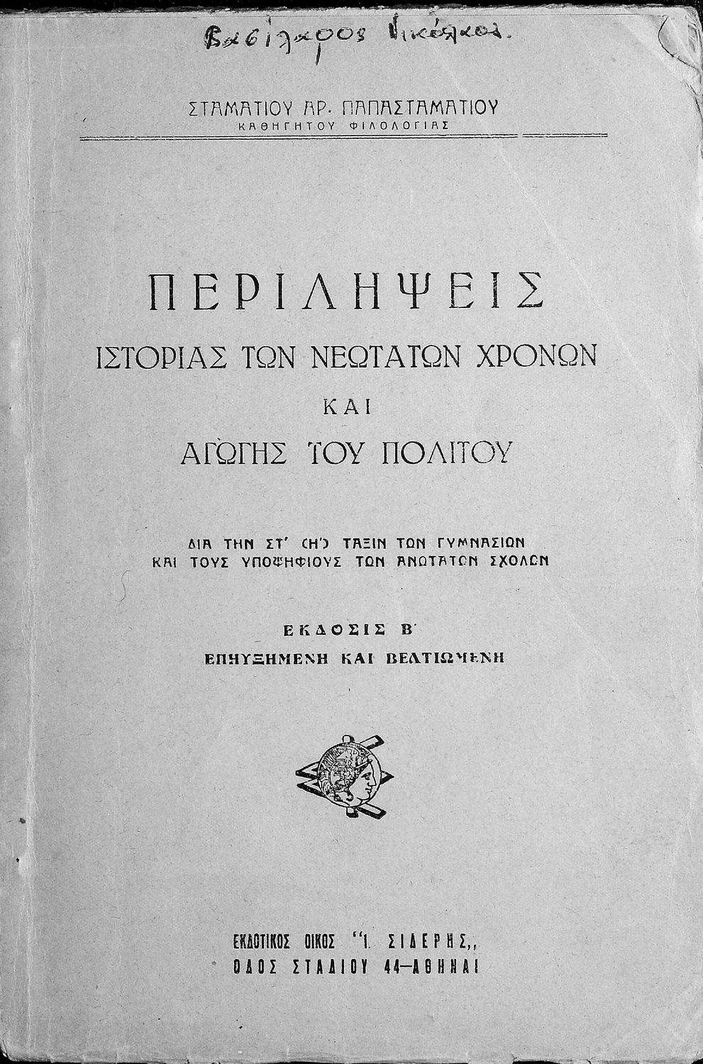 Μαθητικό βοήθημα της ΣΤ΄ Γυμνασίου για το μάθημα της Ιστορίας. Επίσης, απευθυνόταν σε όσους ήθελαν να προετοιμαστούν για ανώτερες σπουδές. Καλύπτει την Ελληνική και Ευρωπαϊκή Ιστορία. Παράλληλα περιέχει κείμενα, τα οποία αναφέρονται στην πολιτική αγωγή.