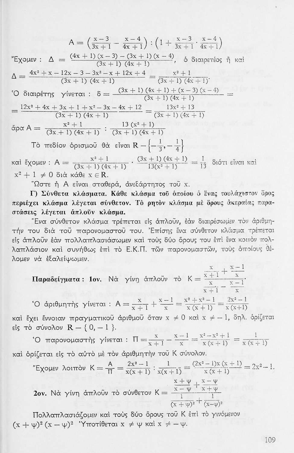 Σχολικό εγχειρίδιο μαθηματικών Γ΄ Γυμνασίου που περιλαμβάνει θεωρία, παραδείγματα και ασκήσεις. Φέρει το σύμβολο της δικτατορίας.