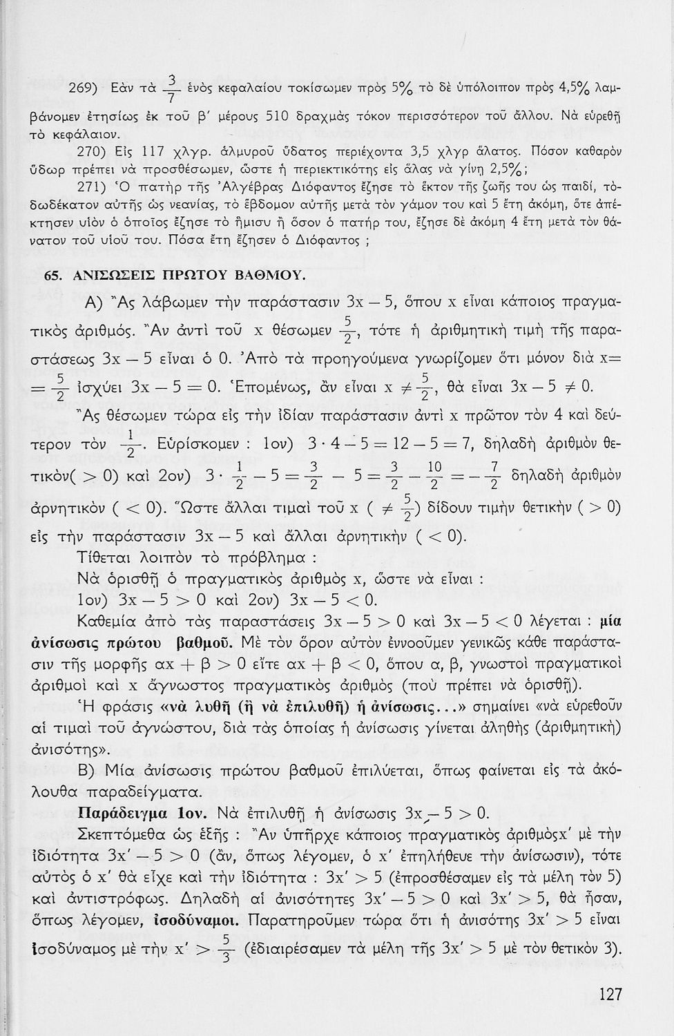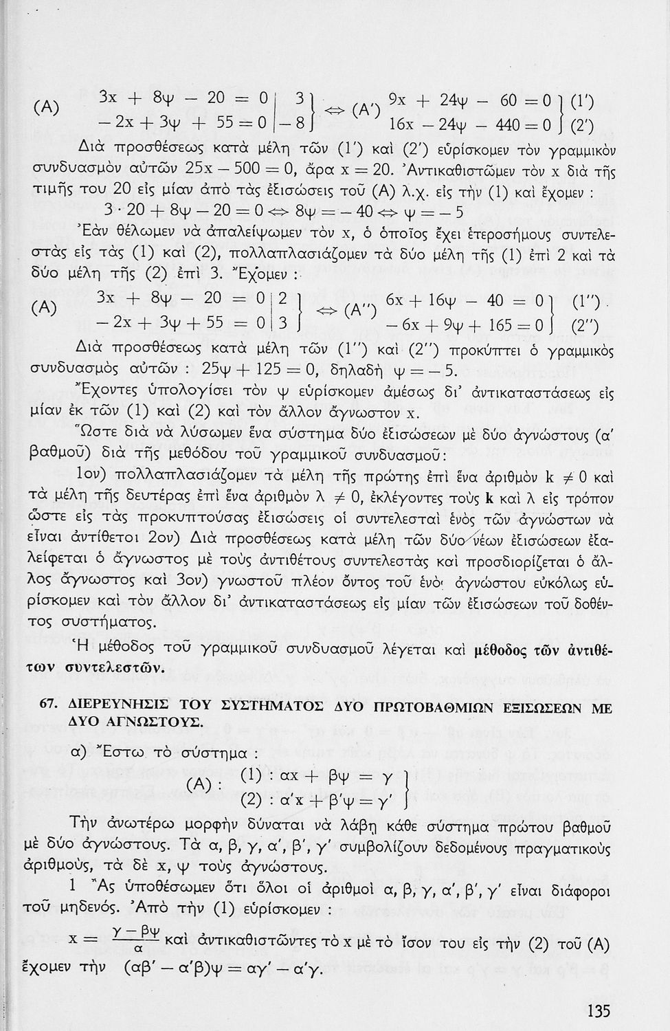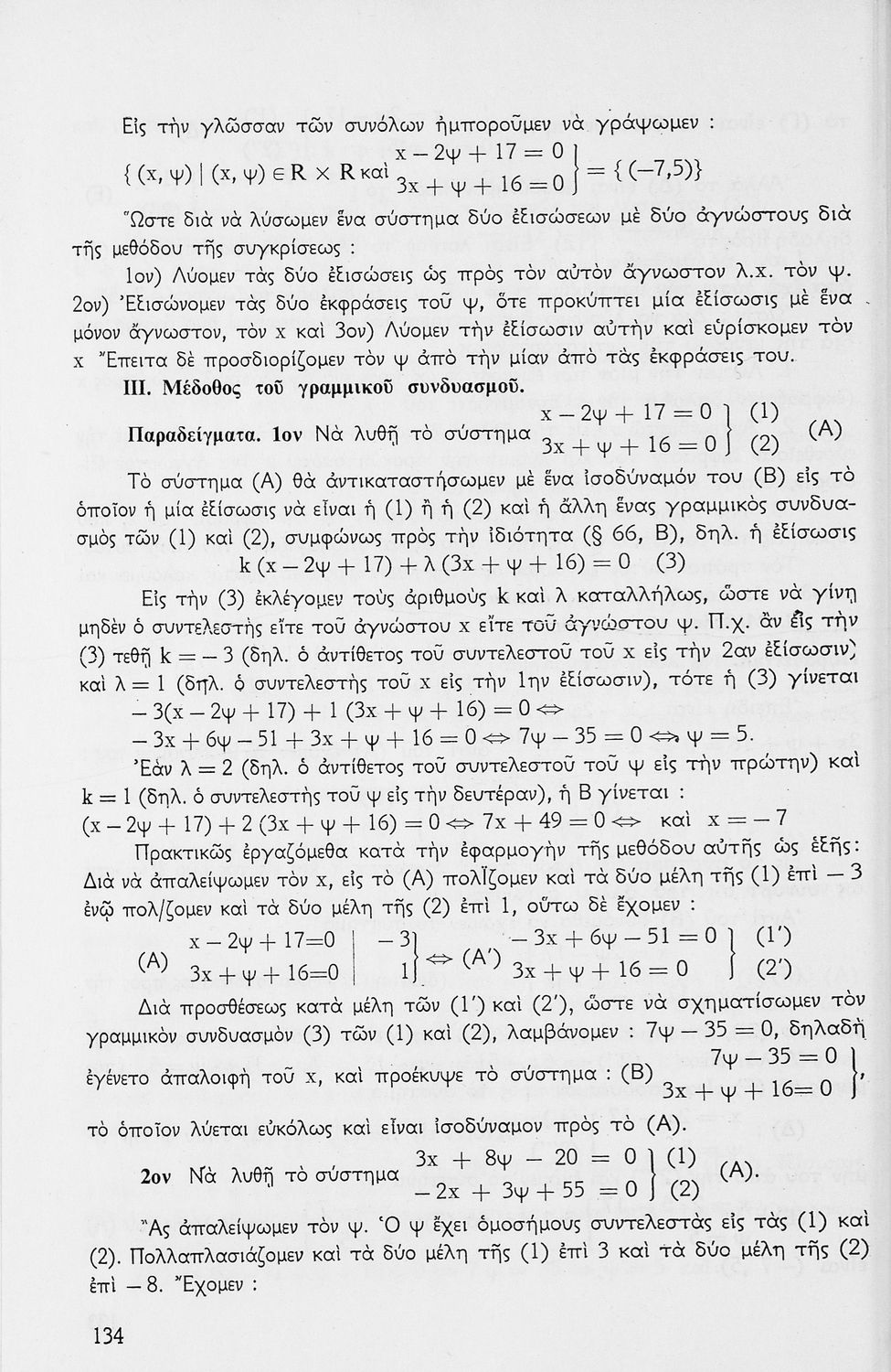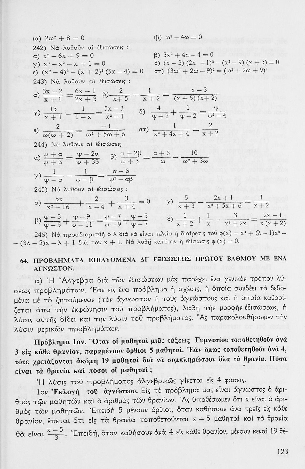 Σχολικό εγχειρίδιο μαθηματικών Γ΄ Γυμνασίου που περιλαμβάνει θεωρία, παραδείγματα και ασκήσεις. Φέρει το σύμβολο της δικτατορίας.